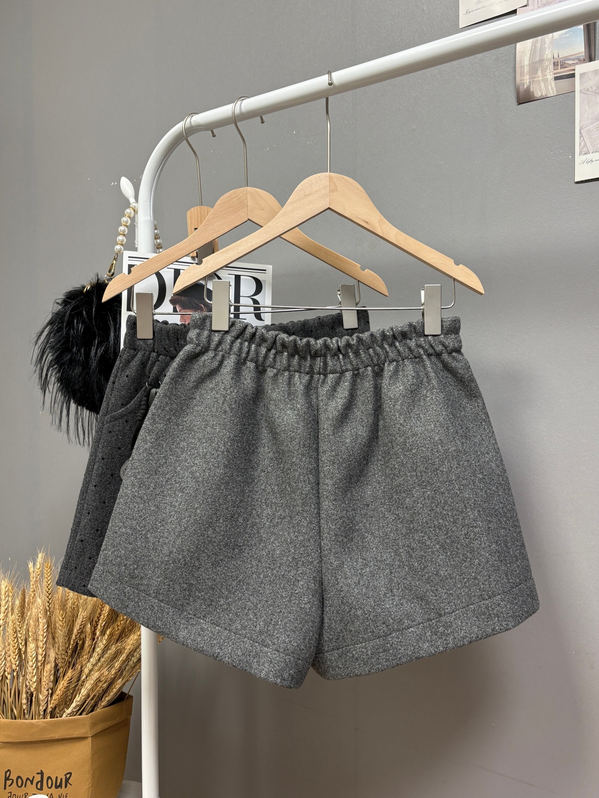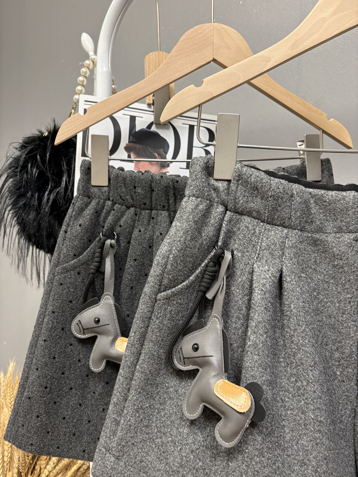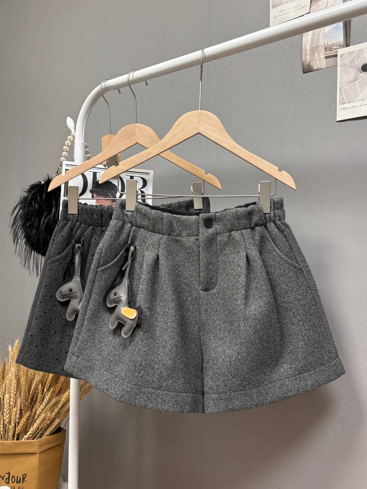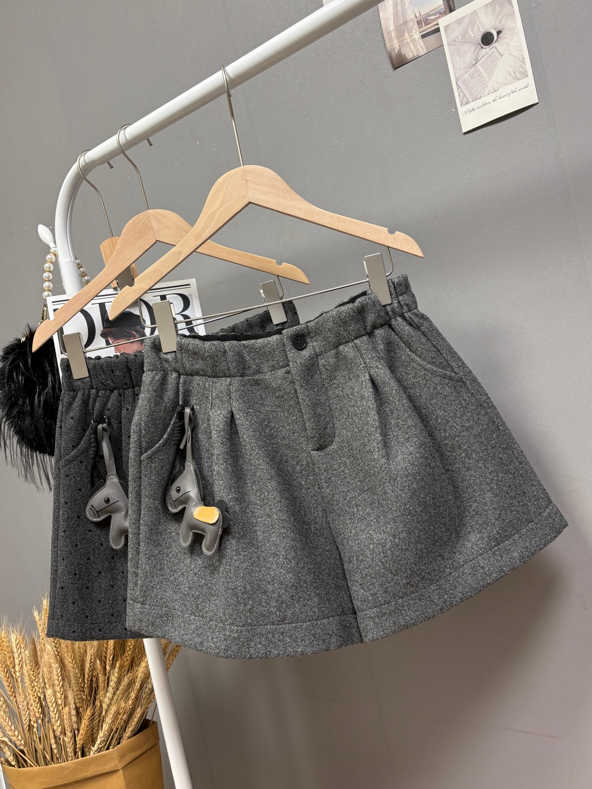MY16054# 毛呢短裤韩版百搭小马挂饰休闲直筒阔腿裤子女女裝貨源服裝批發