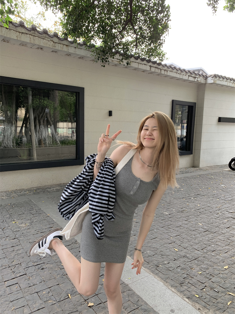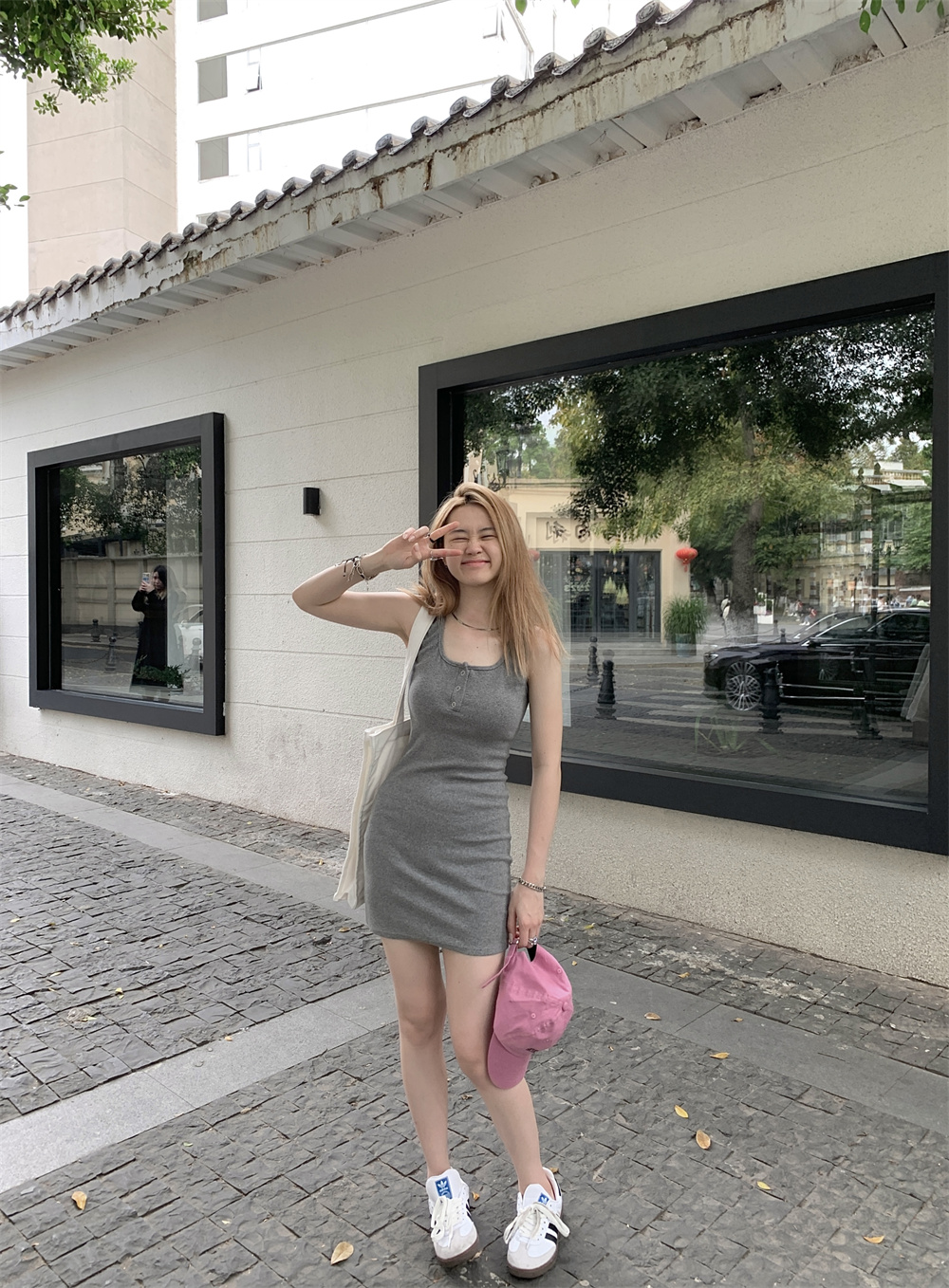 MY16118#夏季韩版简约针织短款连衣裙女百搭显瘦背心短裙性感辣妹包臀裙女裝貨源服裝批發