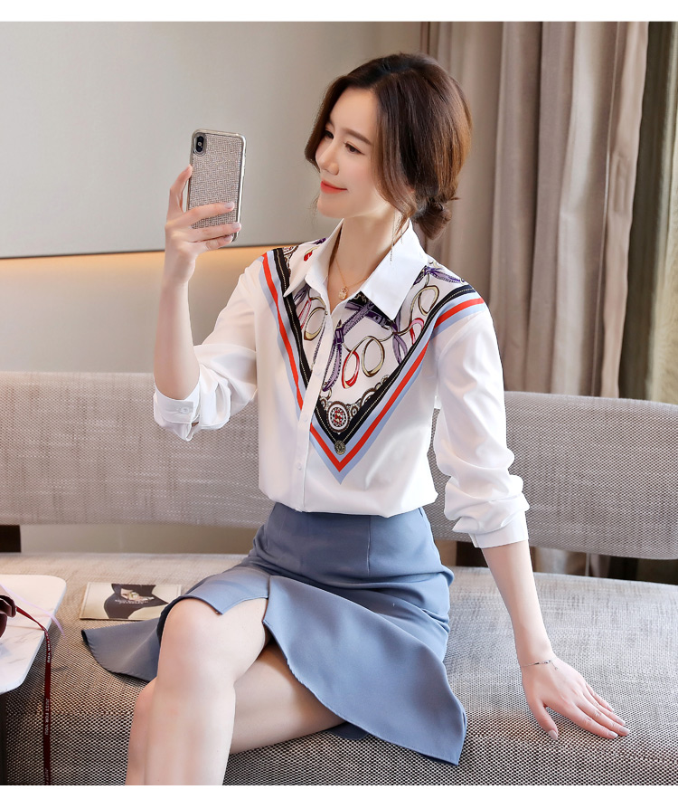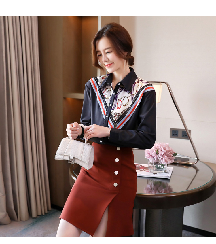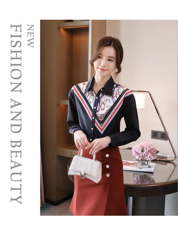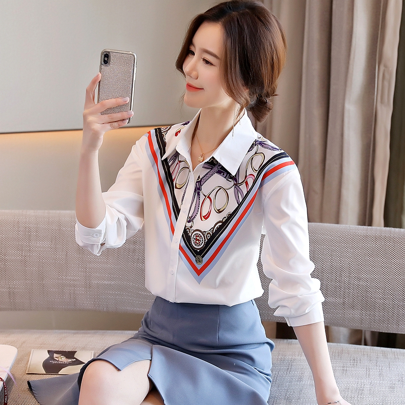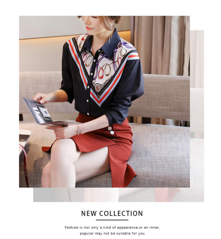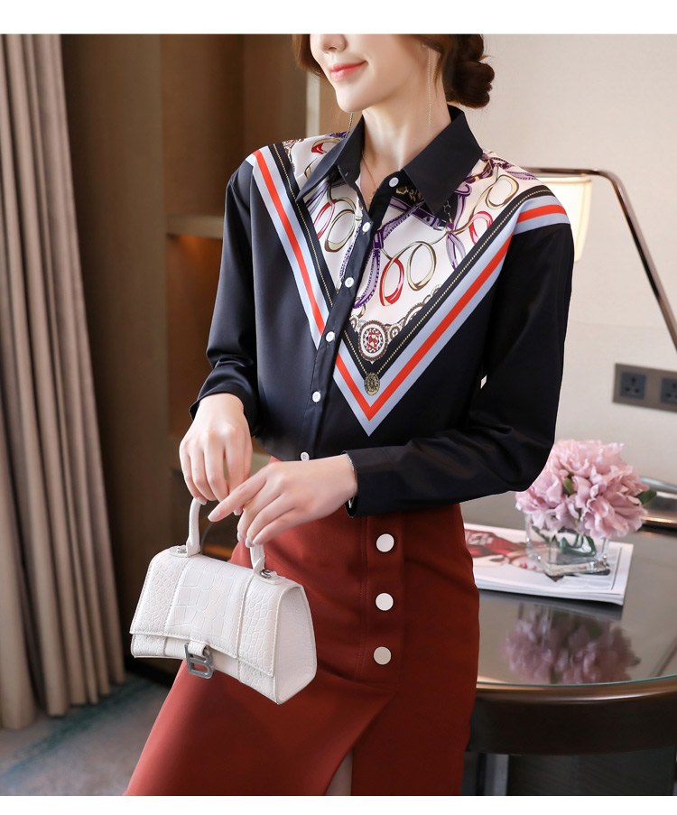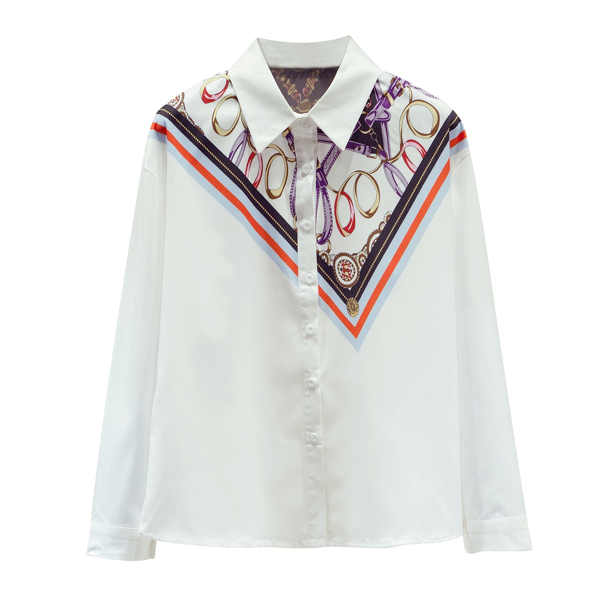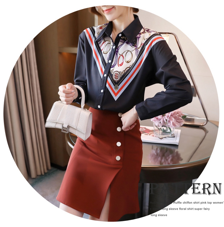 MY16172# 印花衬衫女设计感小众新款百搭雪纺长袖衬衣女女裝貨源服裝批發