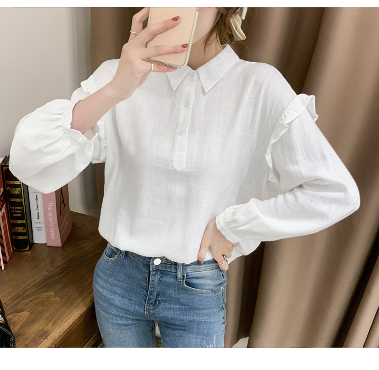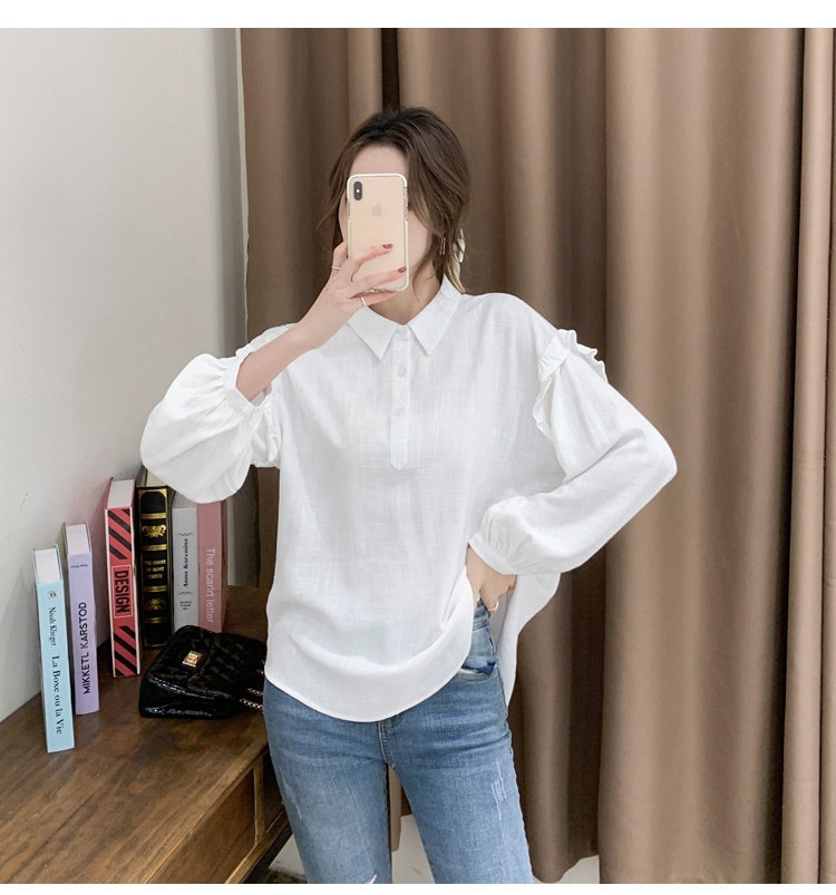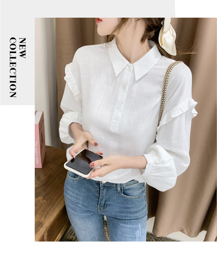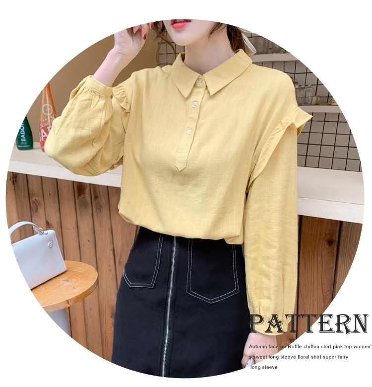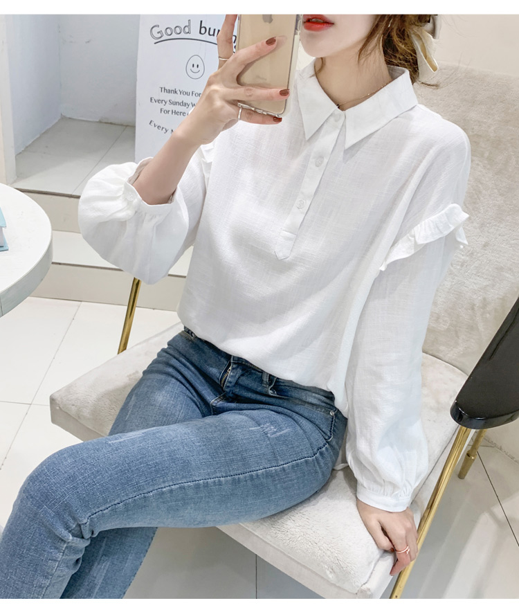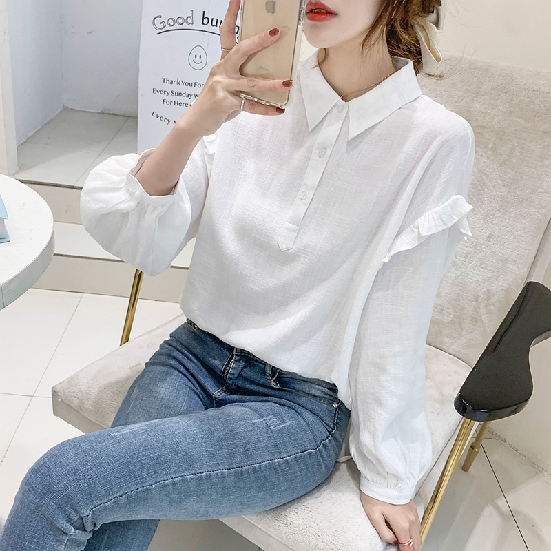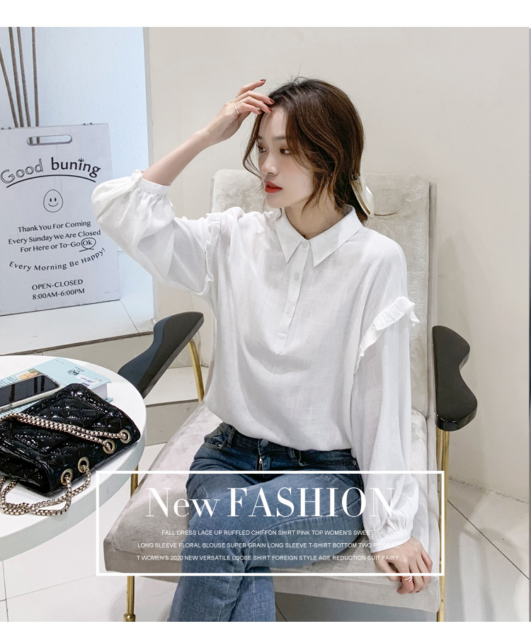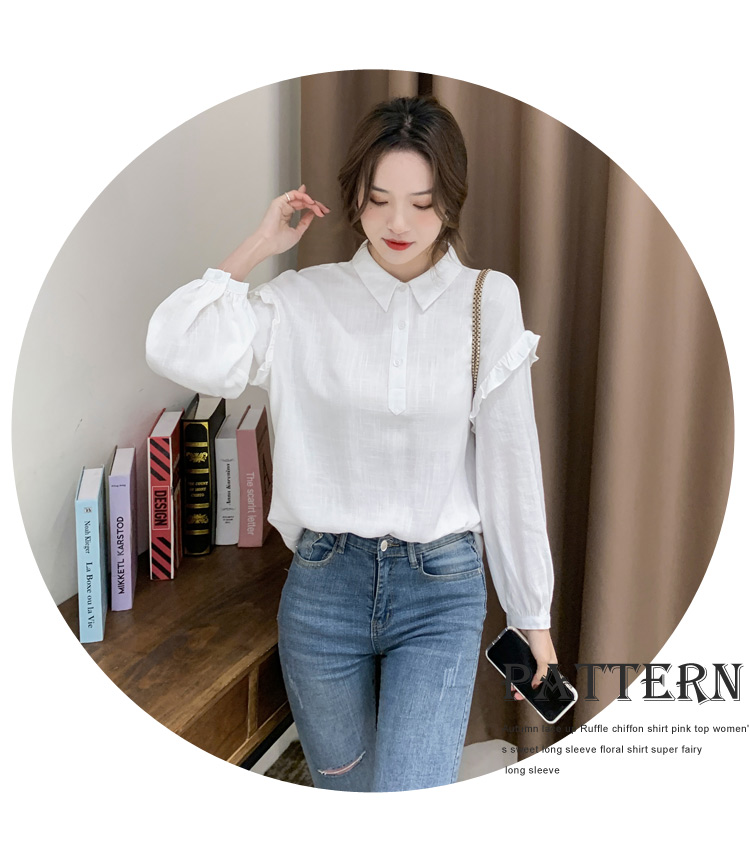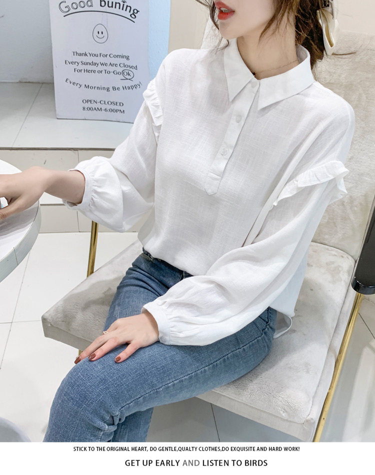 MY16173# 新款长袖雪纺衬衫女翻领娃娃衫白色洋气衬衣荷叶边上衣女裝貨源服裝批發