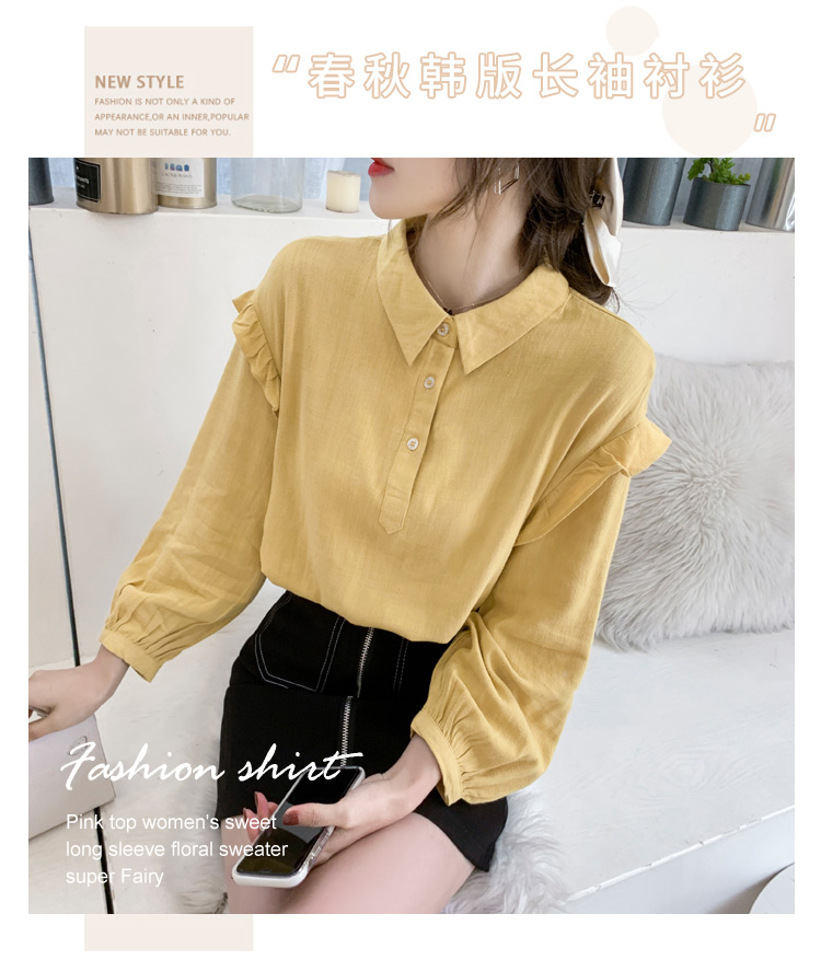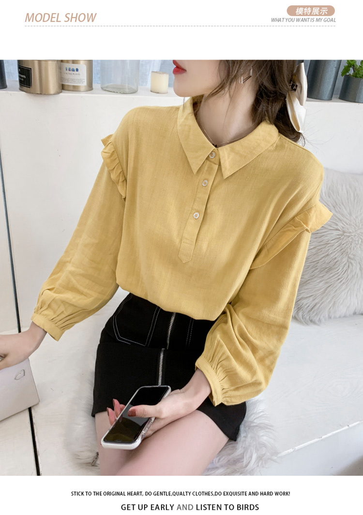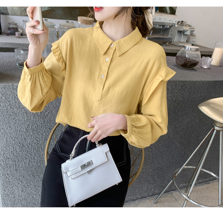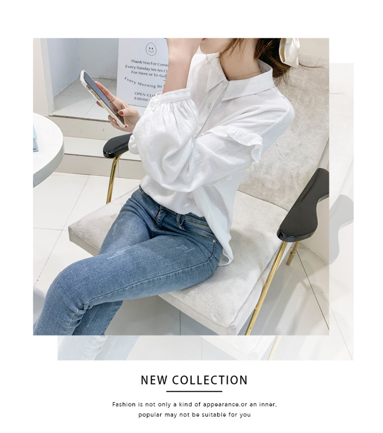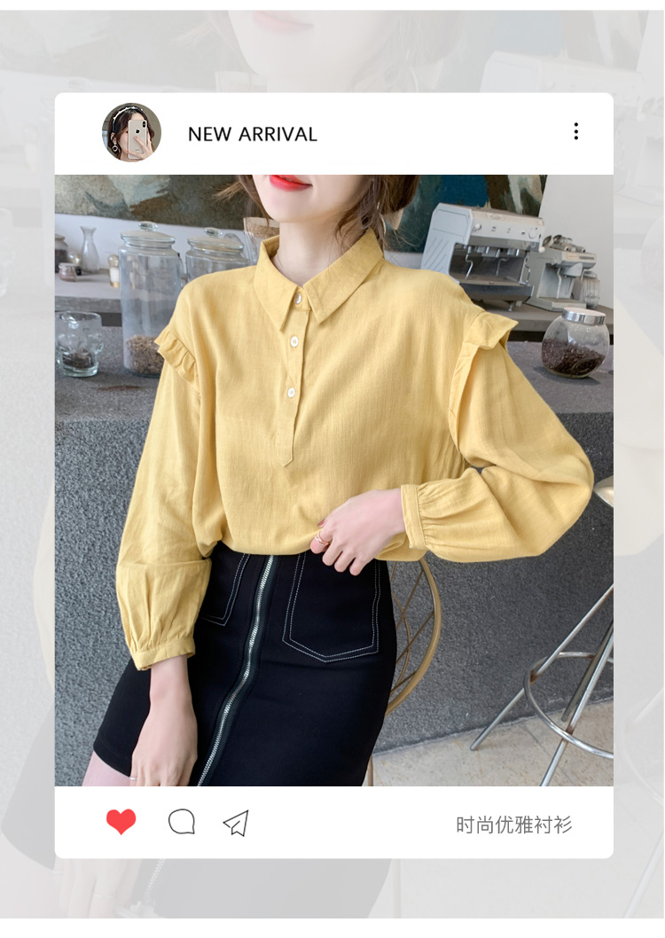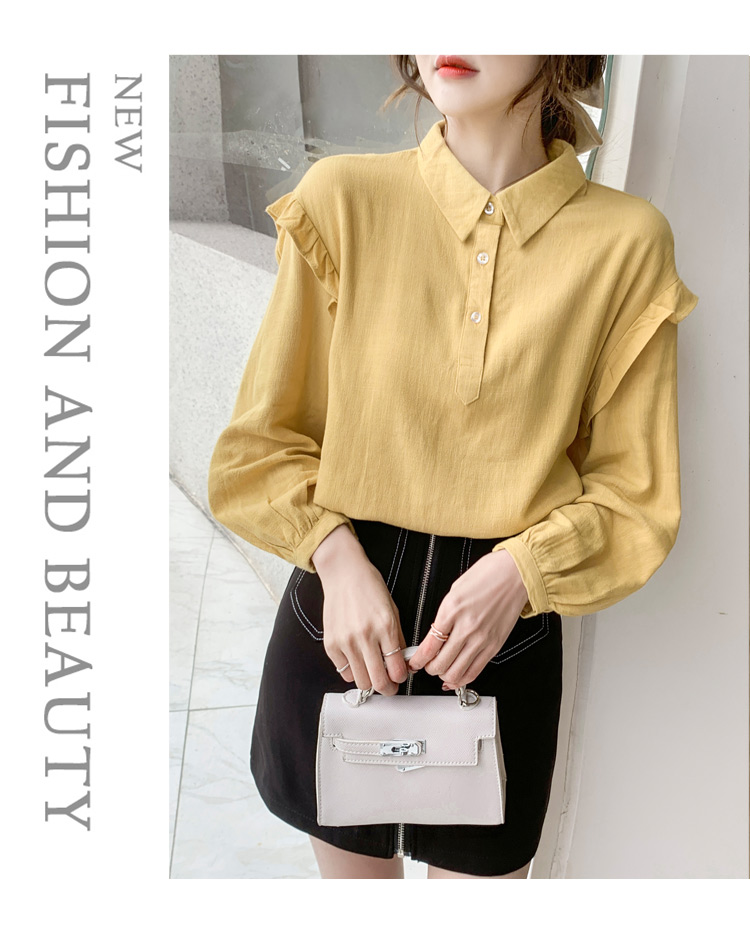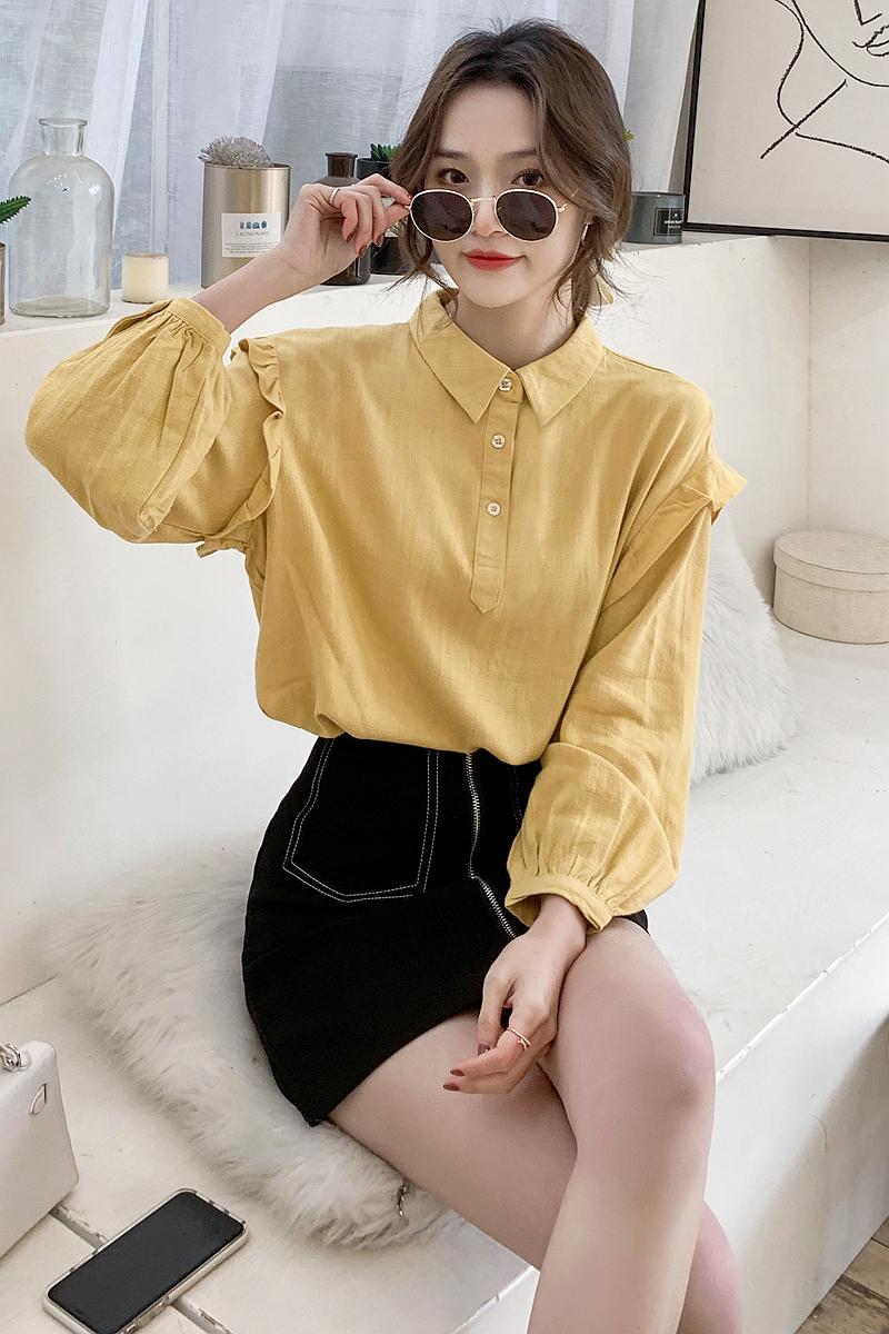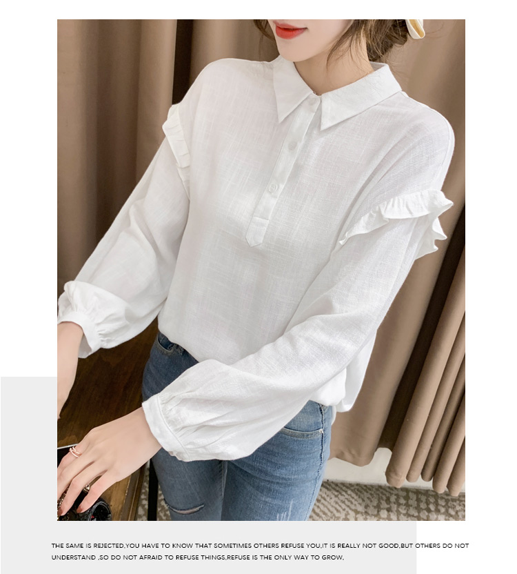 MY16173# 新款长袖雪纺衬衫女翻领娃娃衫白色洋气衬衣荷叶边上衣女裝貨源服裝批發