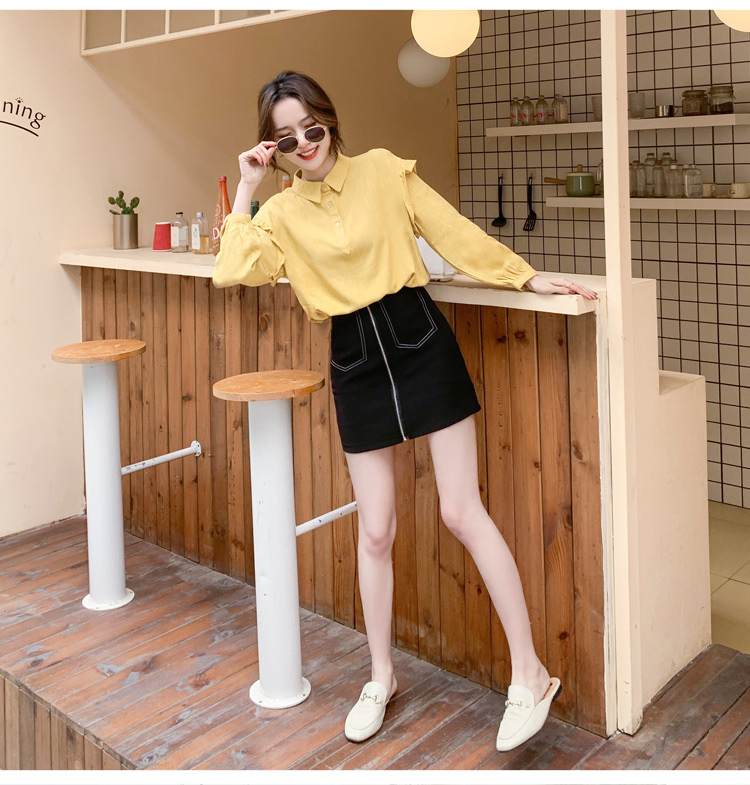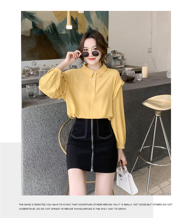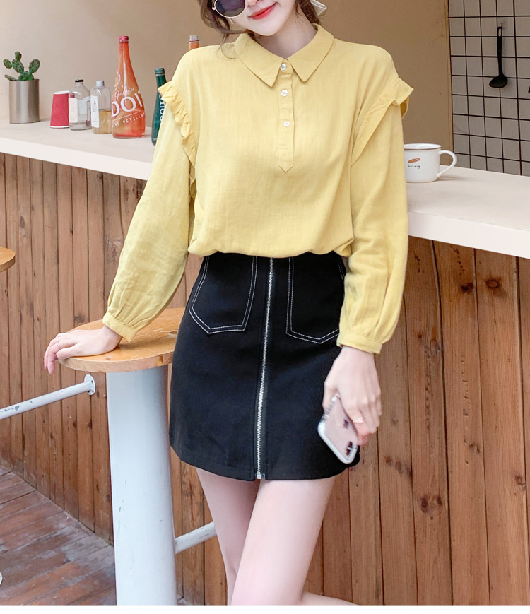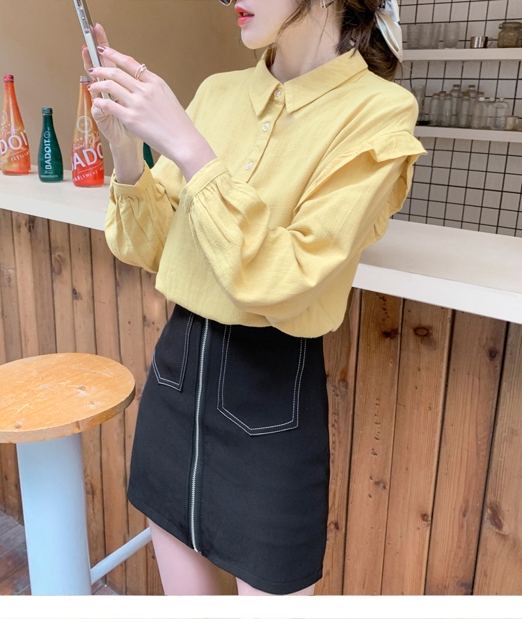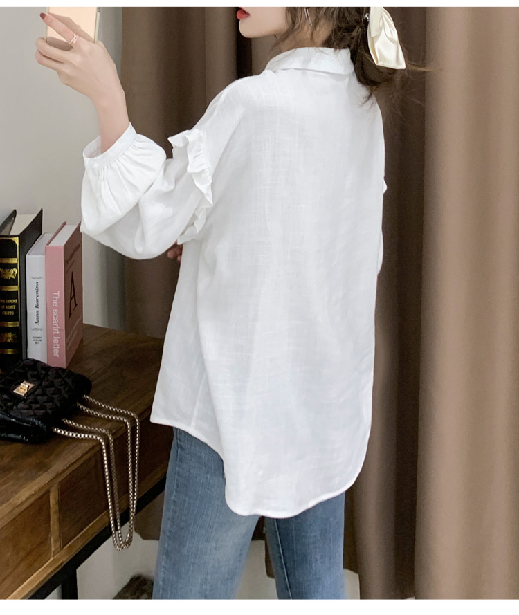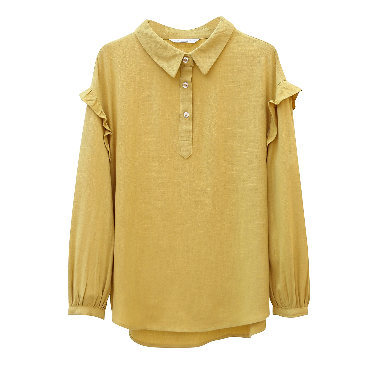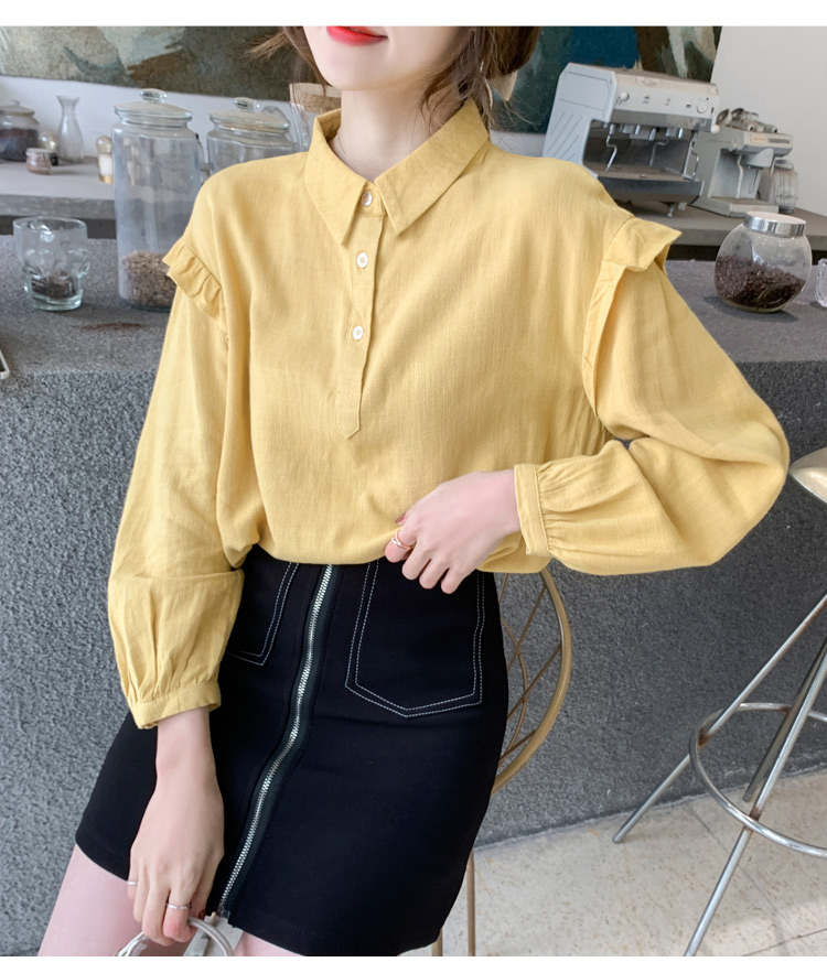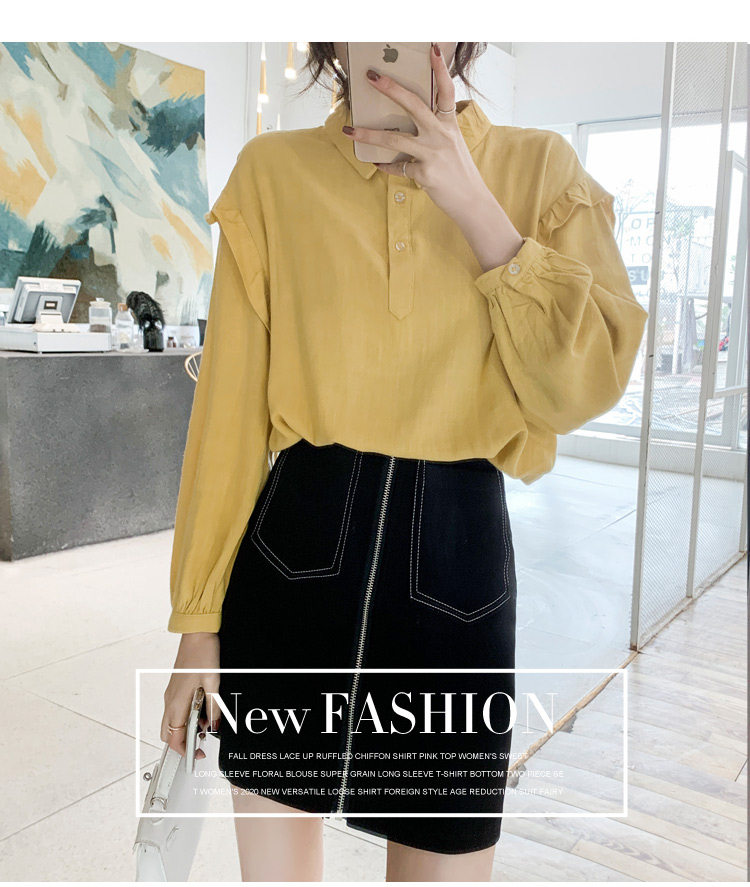 MY16173# 新款长袖雪纺衬衫女翻领娃娃衫白色洋气衬衣荷叶边上衣女裝貨源服裝批發