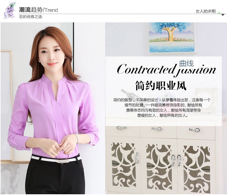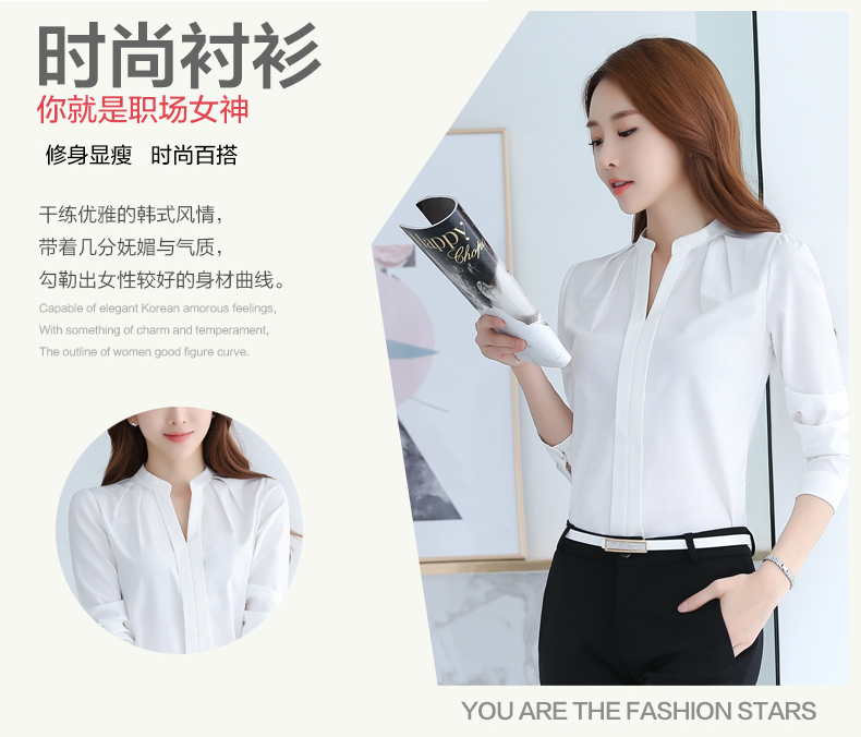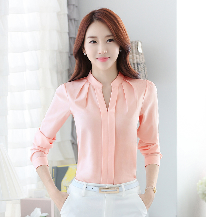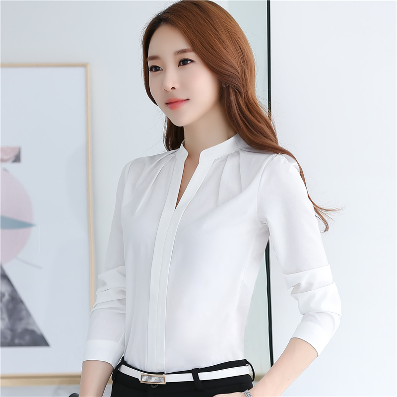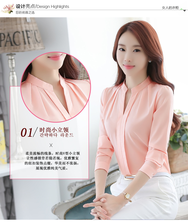 MY16176# 雪纺衬衫女韩范上衣小清新立领宽松中长款长袖白衬衣女裝貨源服裝批發