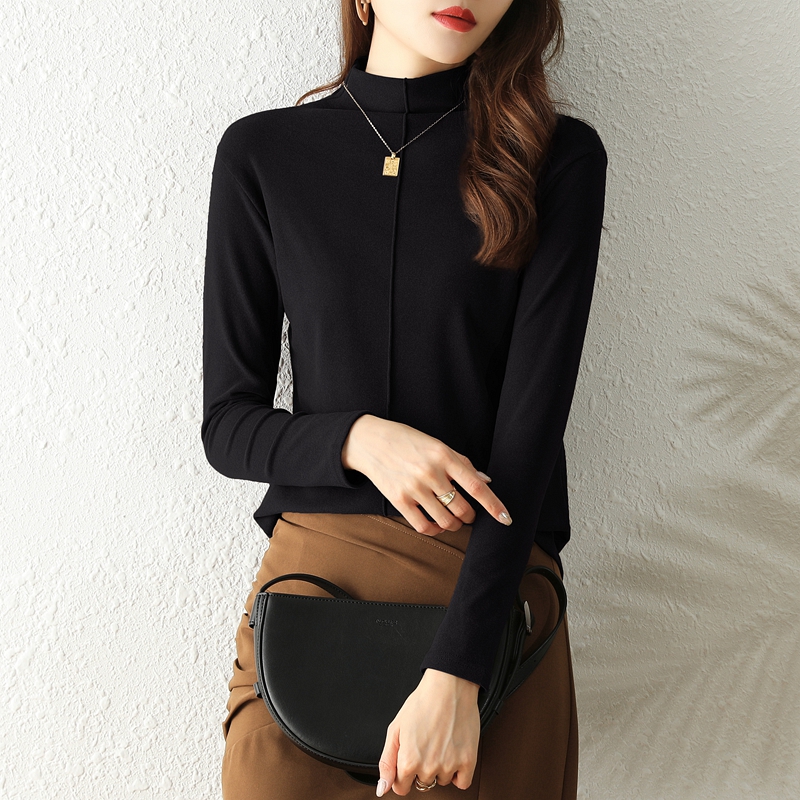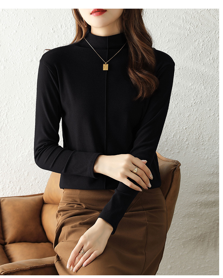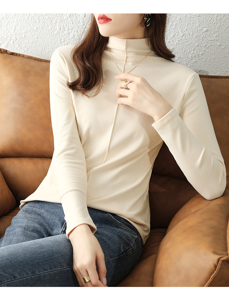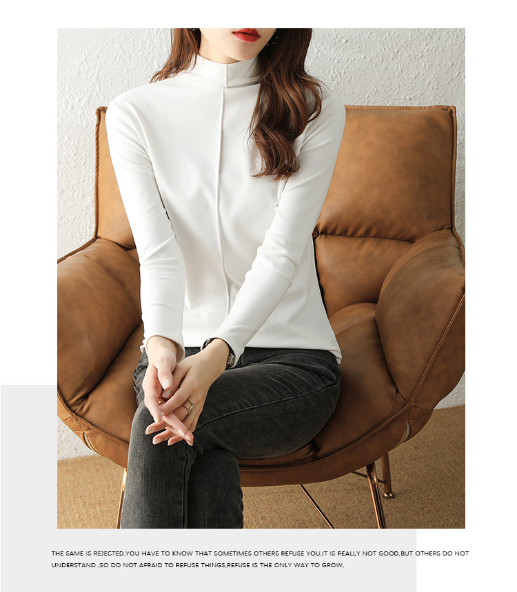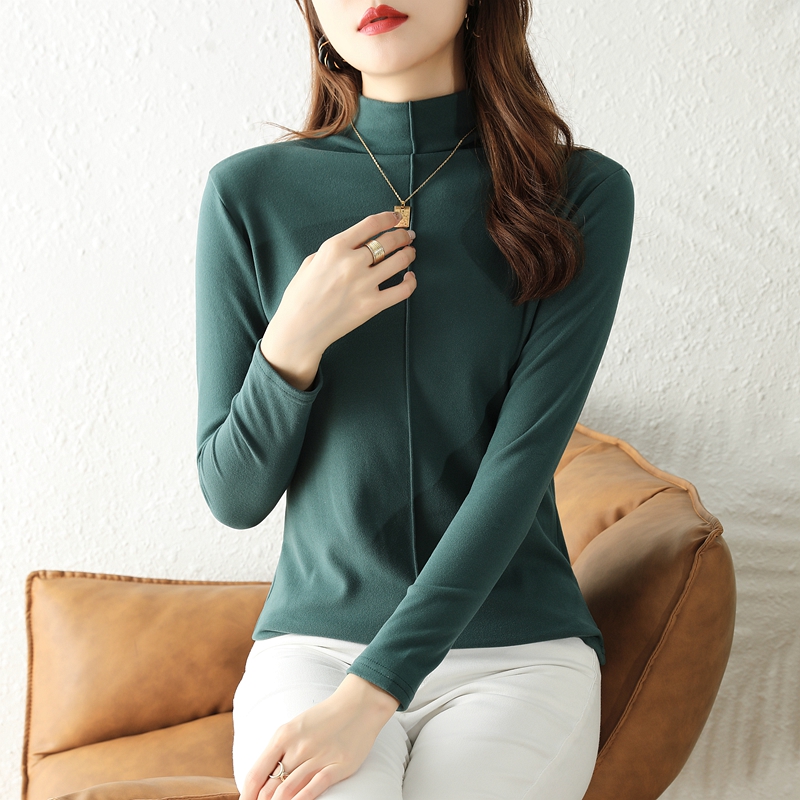 MY16179# 大码女装内搭堆堆领德绒打底衫宽松胖妹妹加绒上衣潮女裝貨源服裝批發