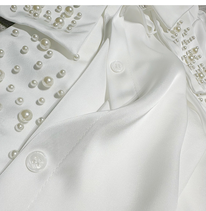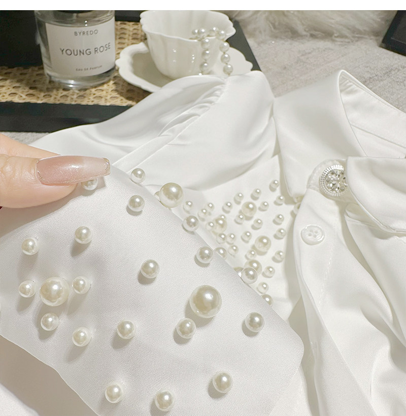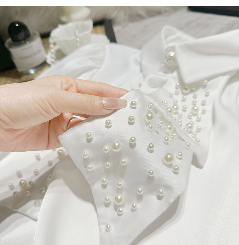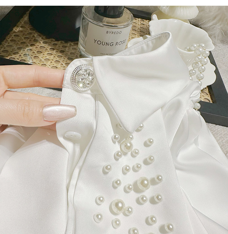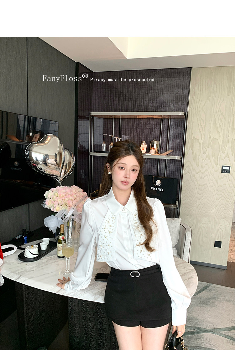 MY16182# FanyFloss法式气质钉珠蝴蝶结白色衬衫女重工收腰钉钻ol长袖衬衣女裝貨源服裝批發