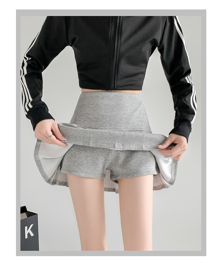 MY15977# 灰色呢料短裤新款阔腿高腰显瘦百搭A字外穿毛呢靴裤女裝貨源...