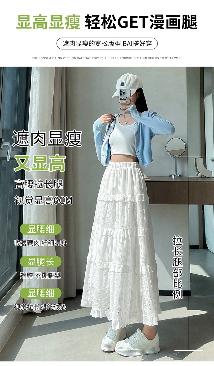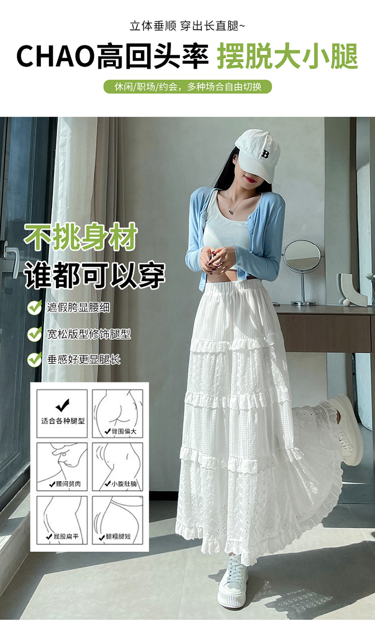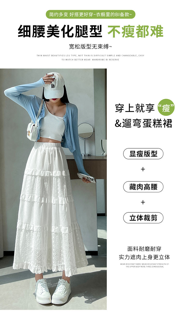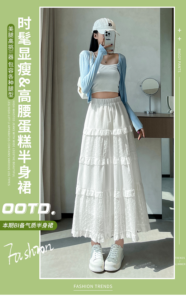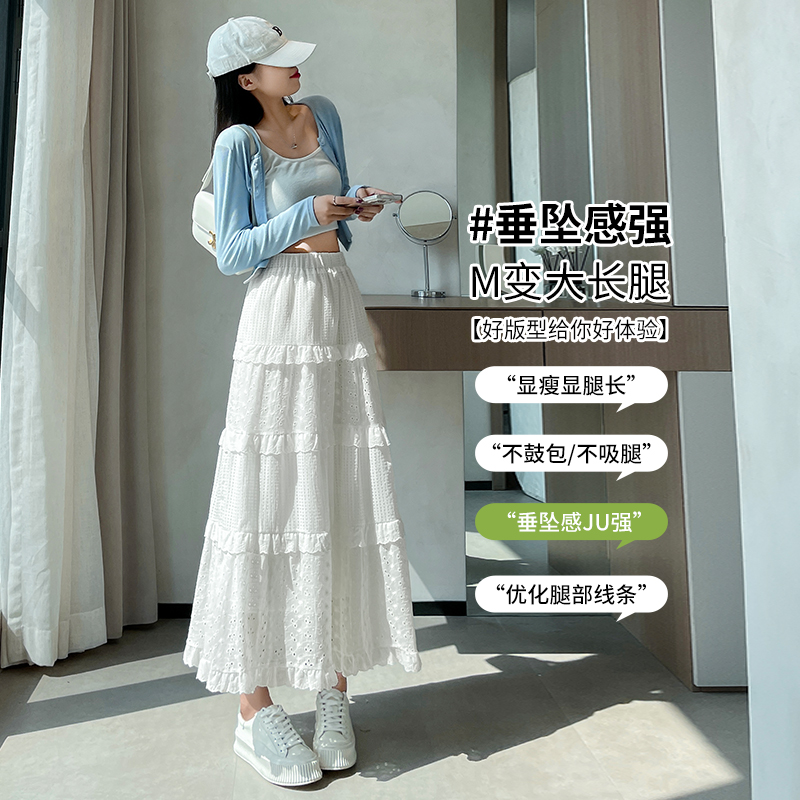 MY16195# 白色半身裙女长款蛋糕裙高腰显瘦百搭气质A字长裙子女裝貨源服裝批發