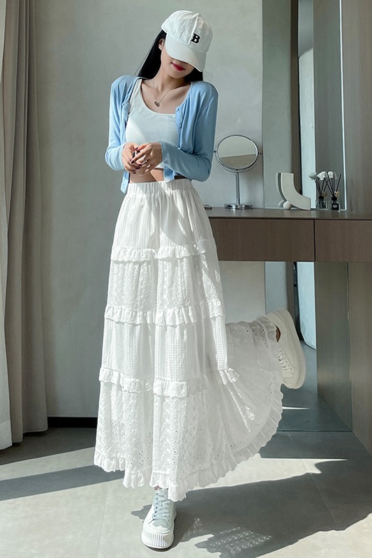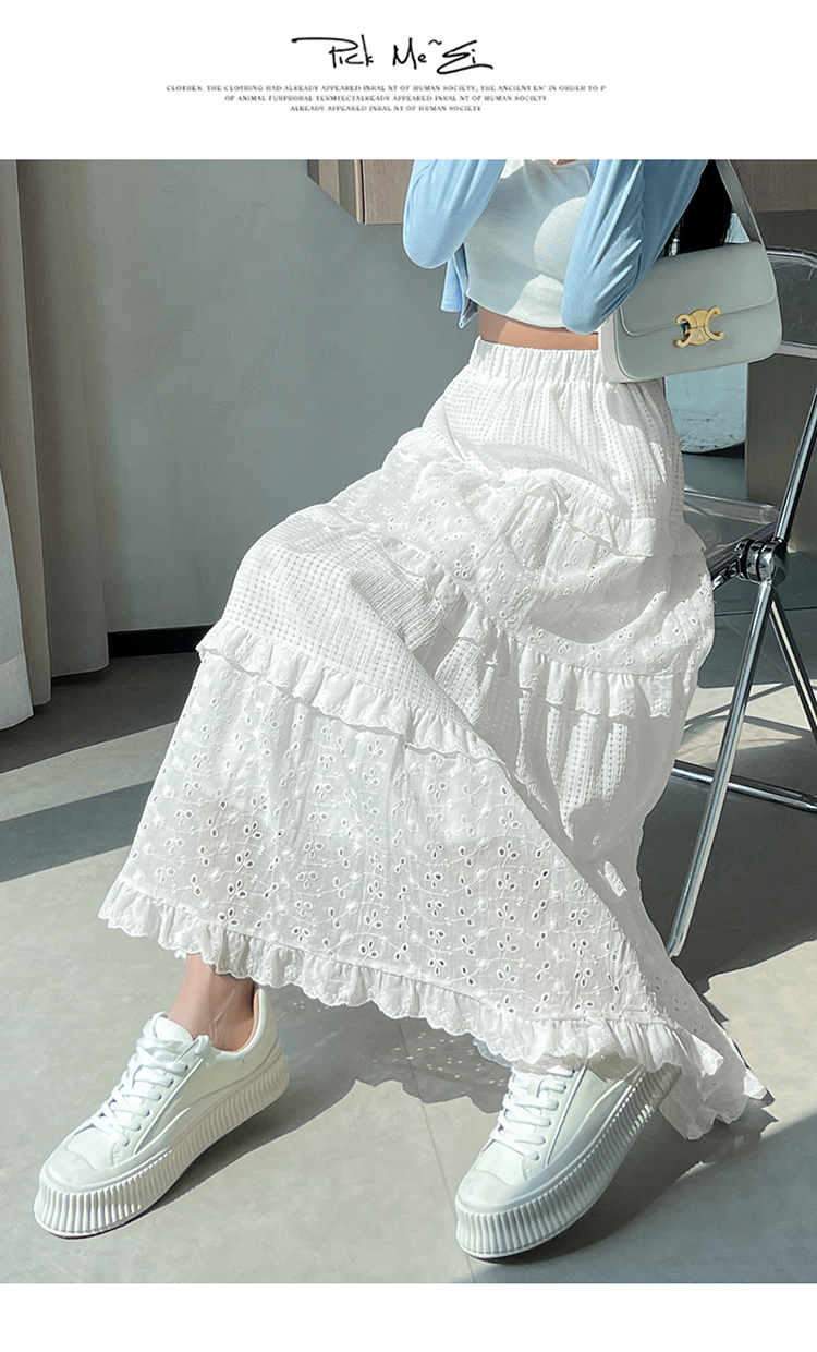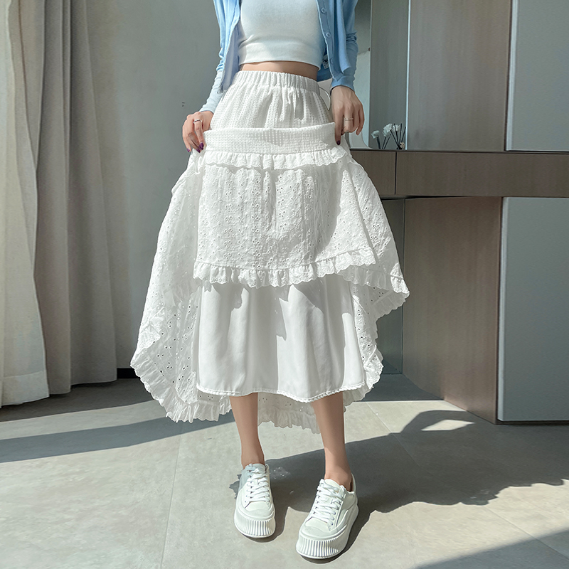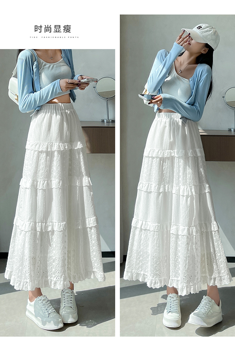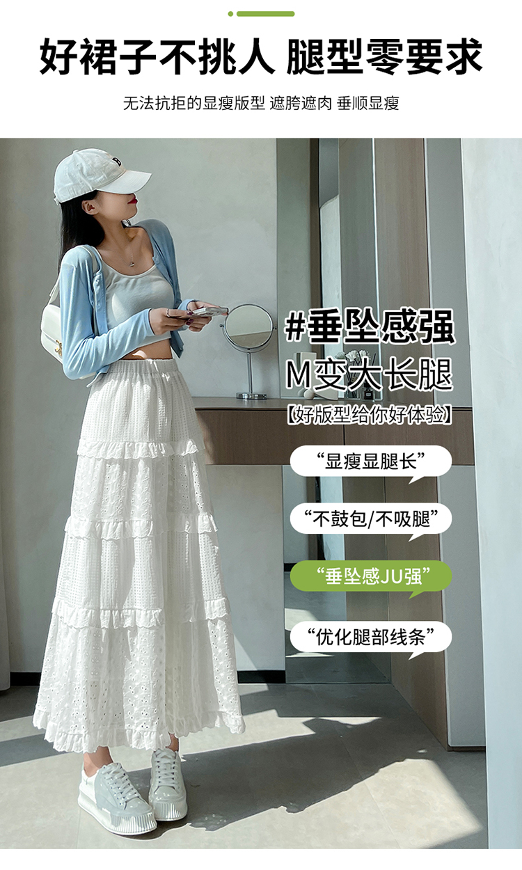 MY16195# 白色半身裙女长款蛋糕裙高腰显瘦百搭气质A字长裙子女裝貨源服裝批發