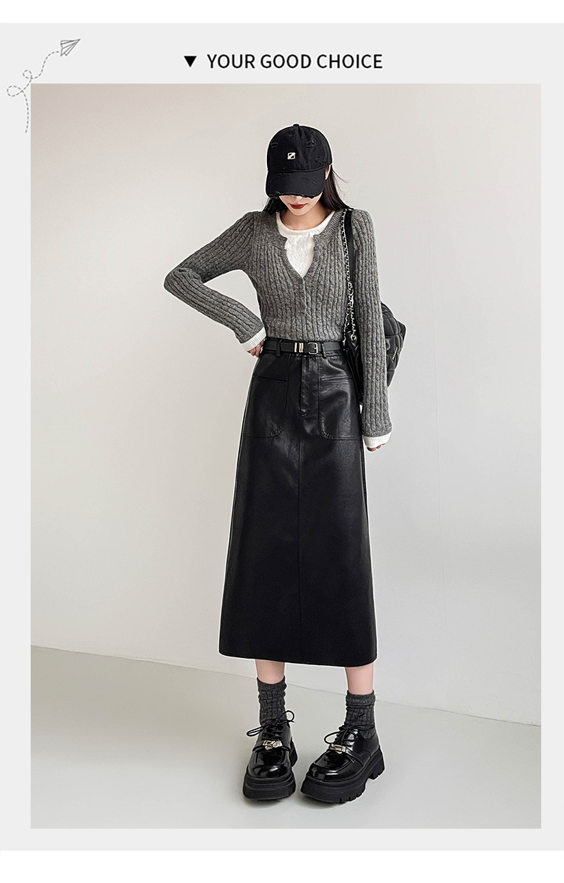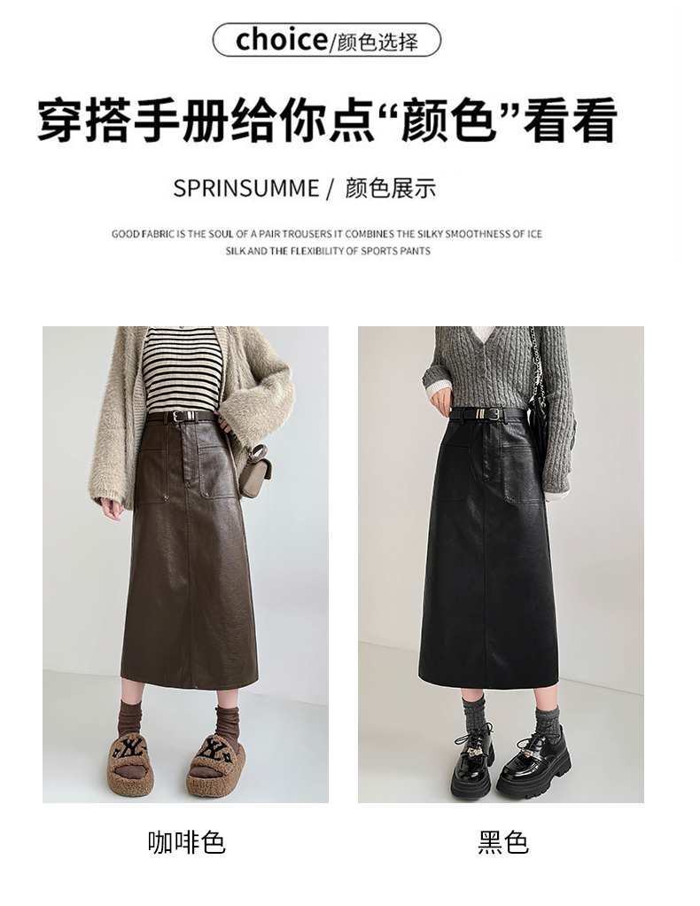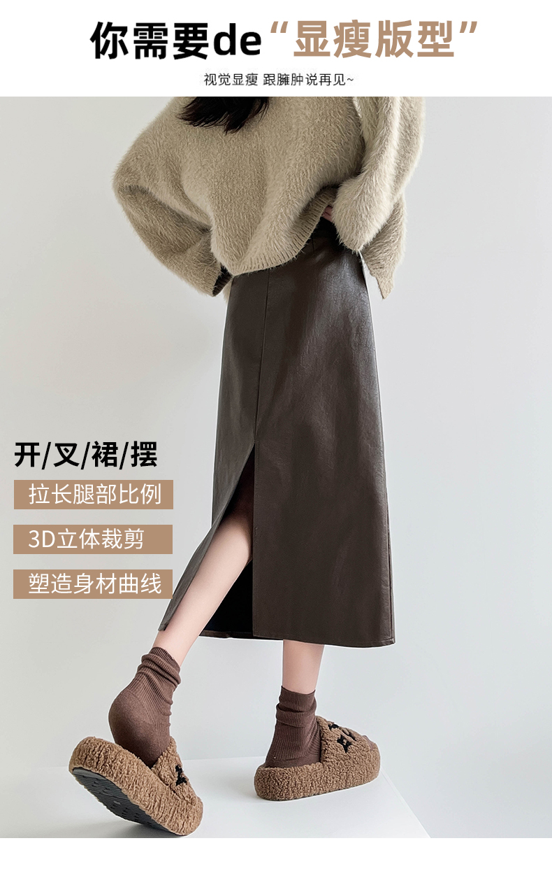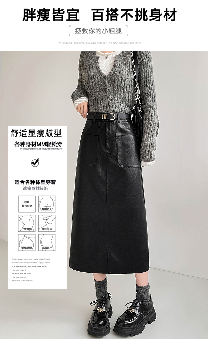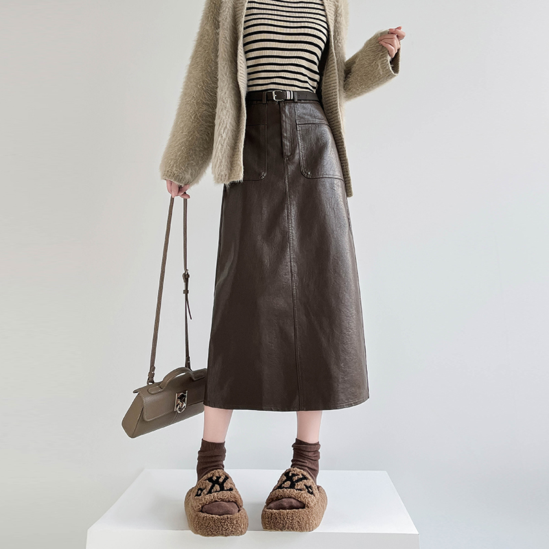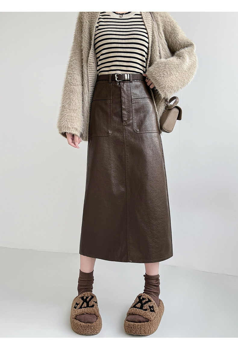 MY16196# 高腰显瘦中长款包臀开叉洗水皮半身一步长裙 送腰带女裝貨源服裝批發