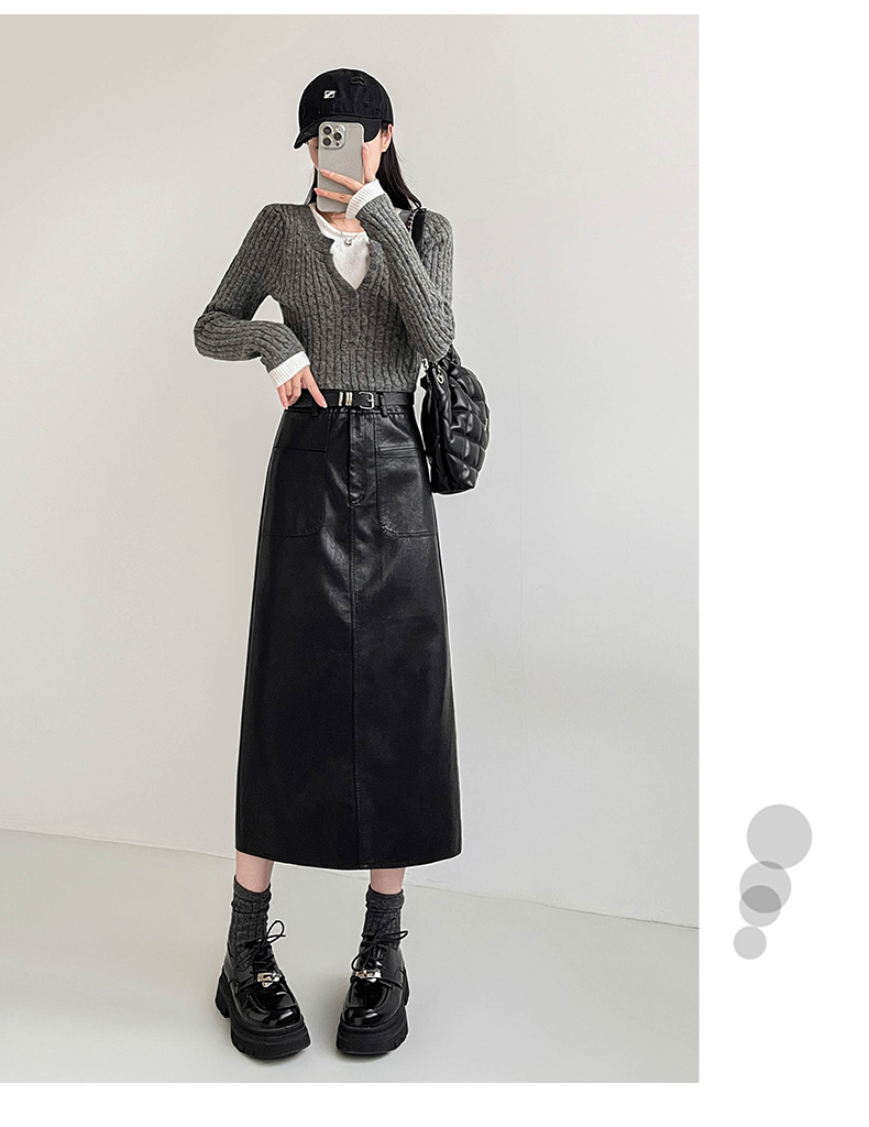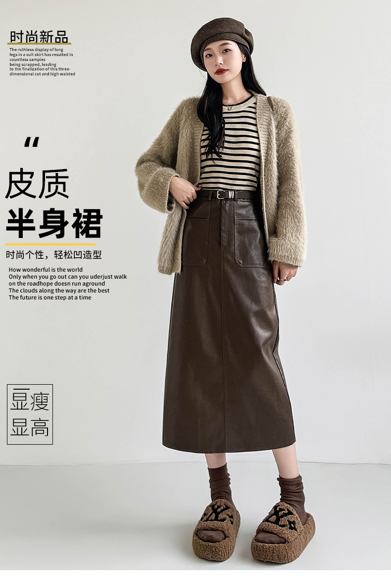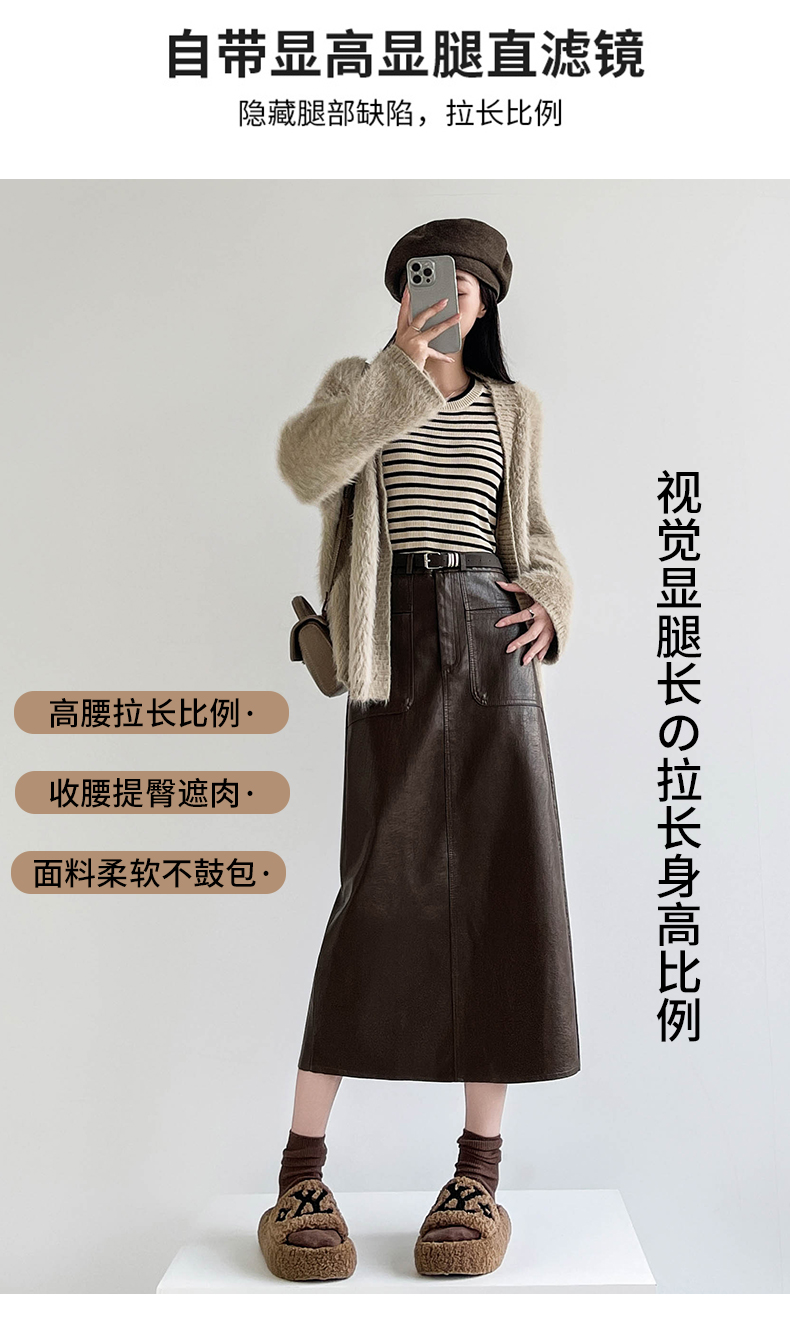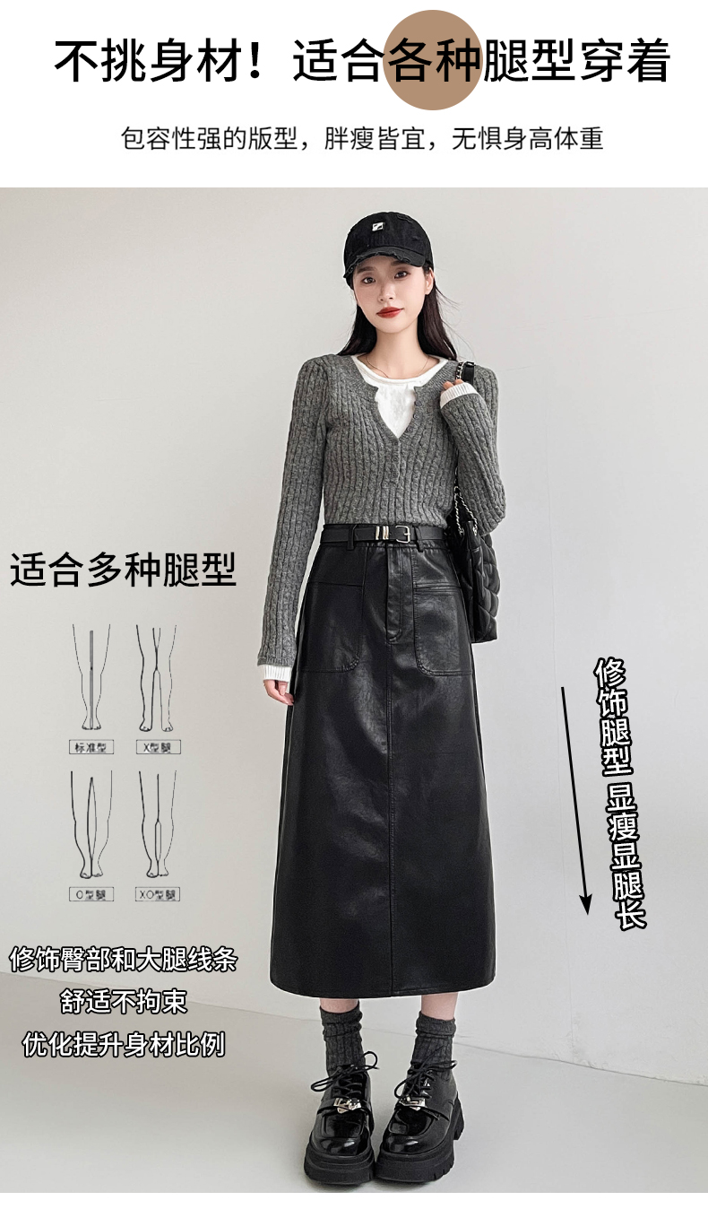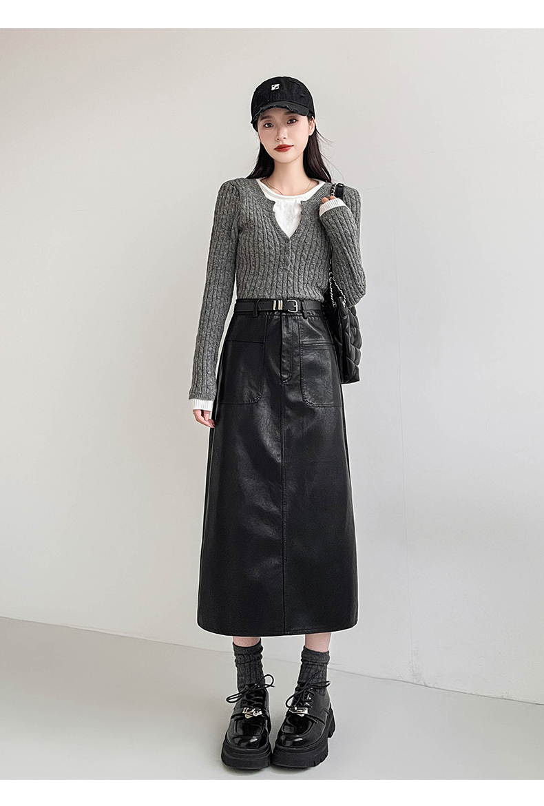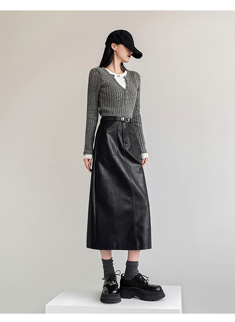 MY16196# 高腰显瘦中长款包臀开叉洗水皮半身一步长裙 送腰带女裝貨源服裝批發