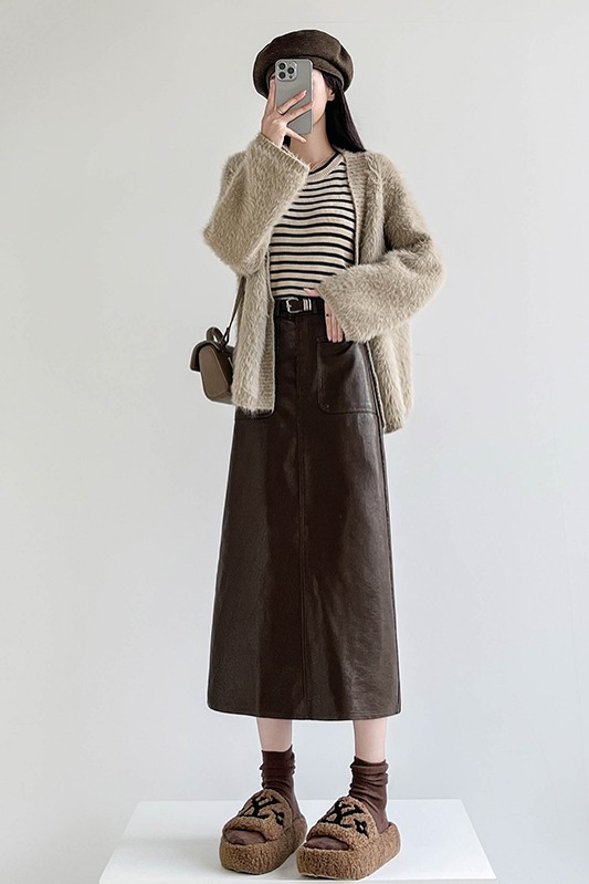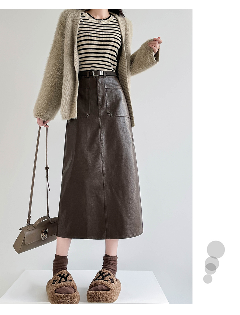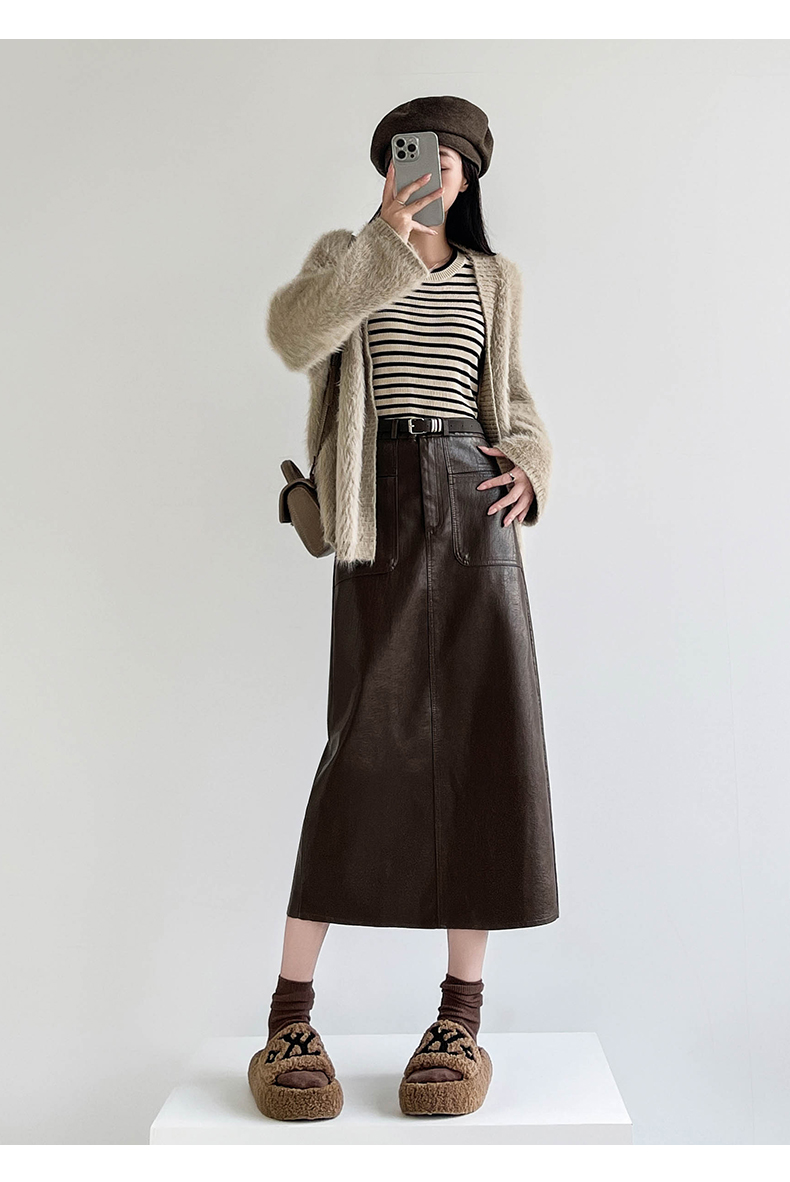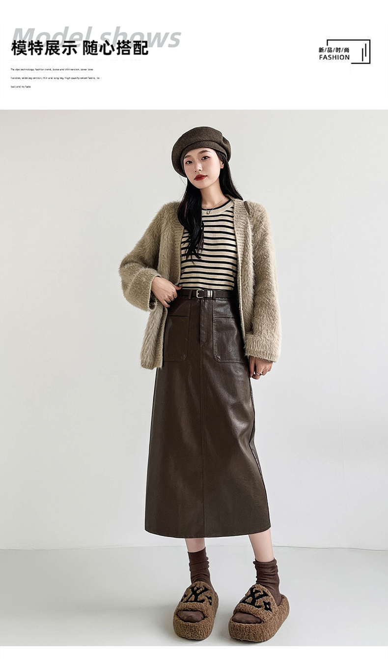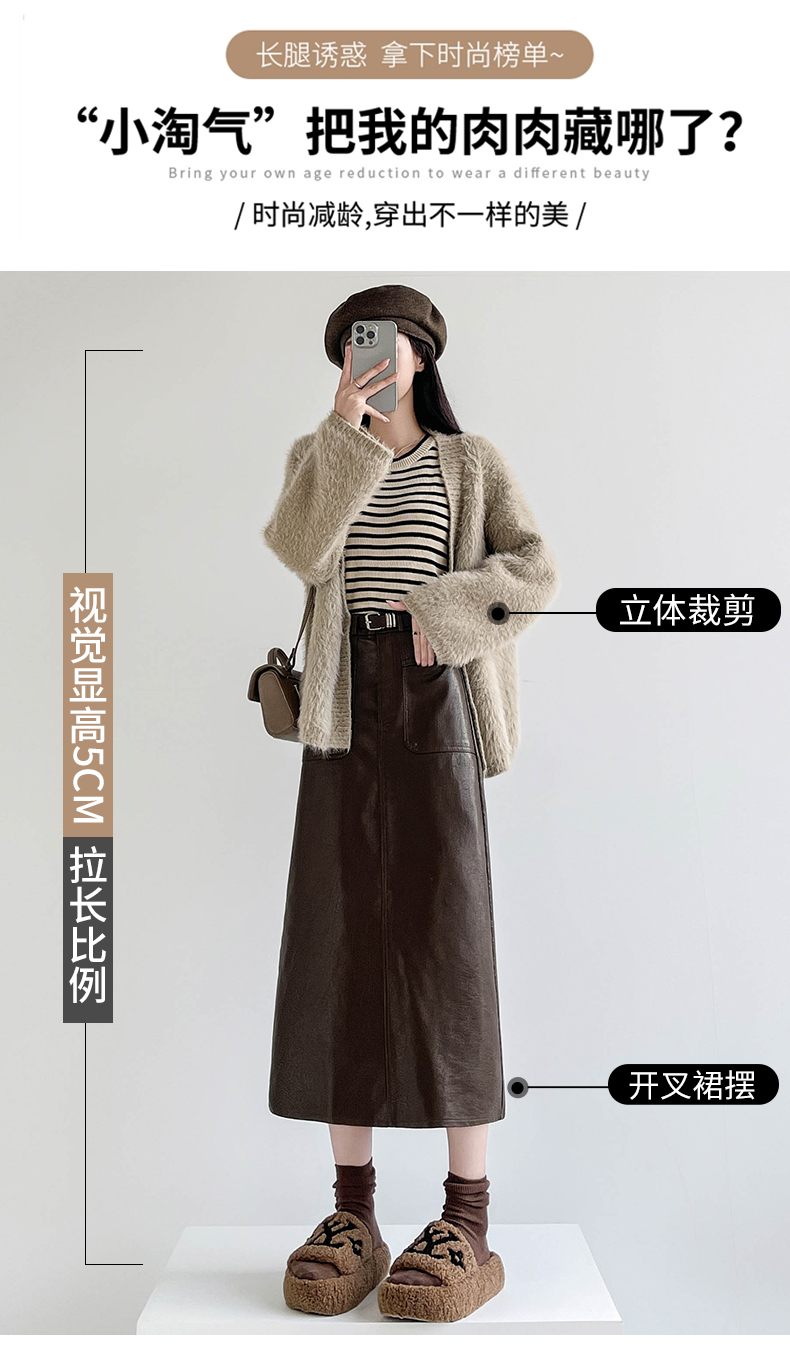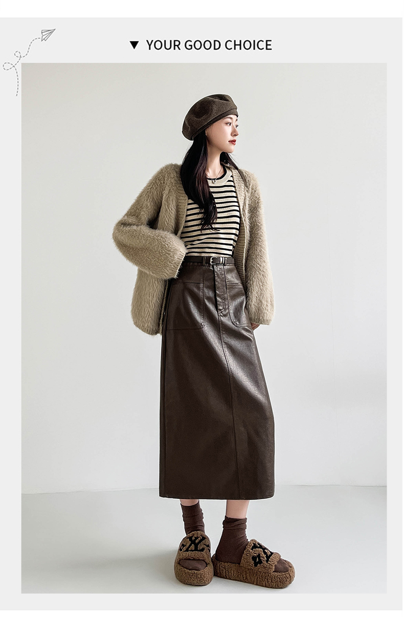 MY16196# 高腰显瘦中长款包臀开叉洗水皮半身一步长裙 送腰带女裝貨源服裝批發