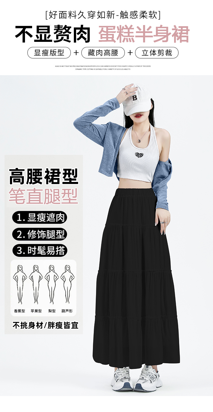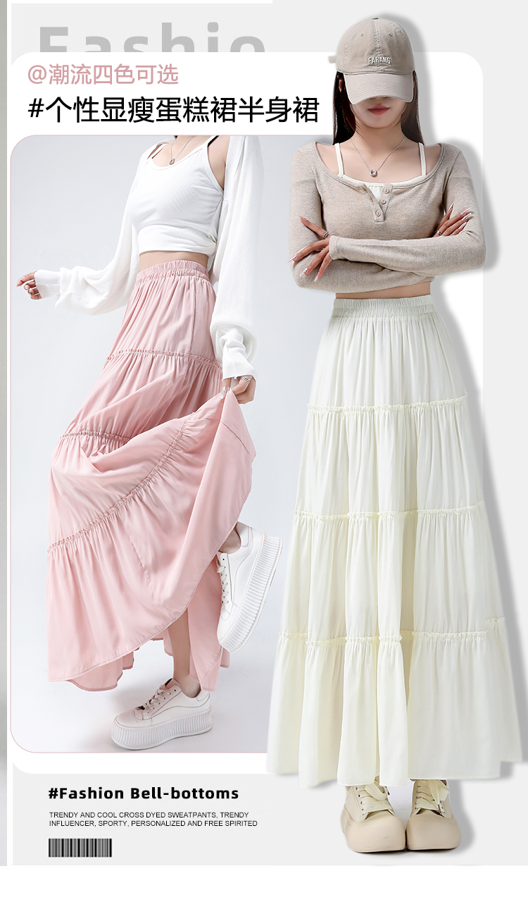 MY16200# 温柔气质蛋糕半身裙高腰显瘦百搭大摆伞裙A字长裙女裝貨源服裝批發