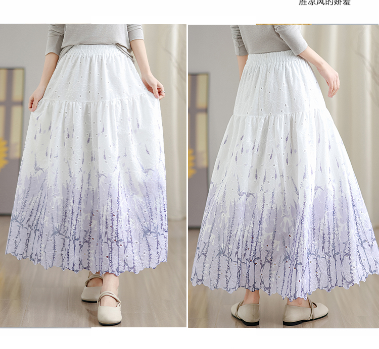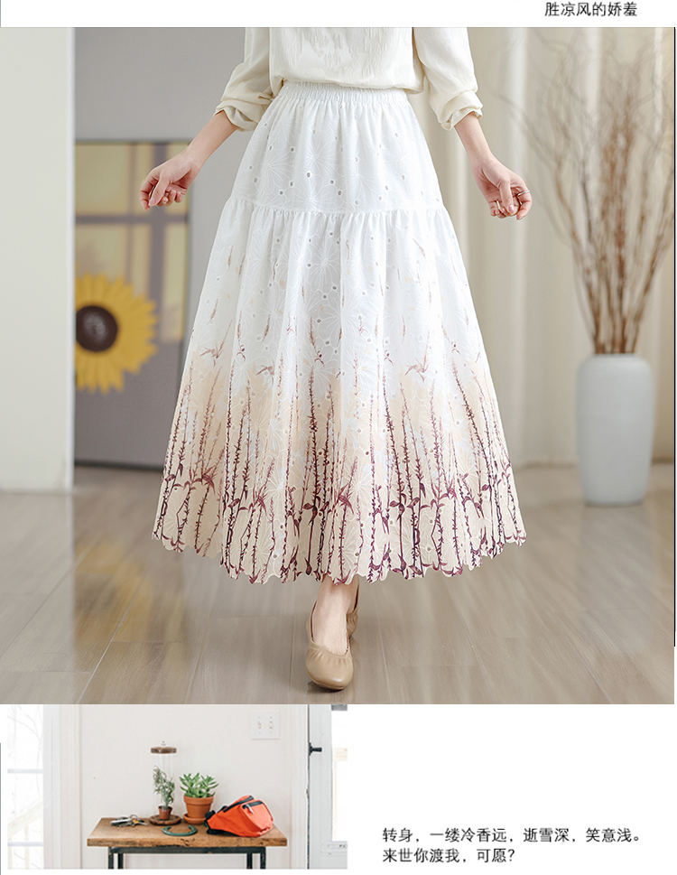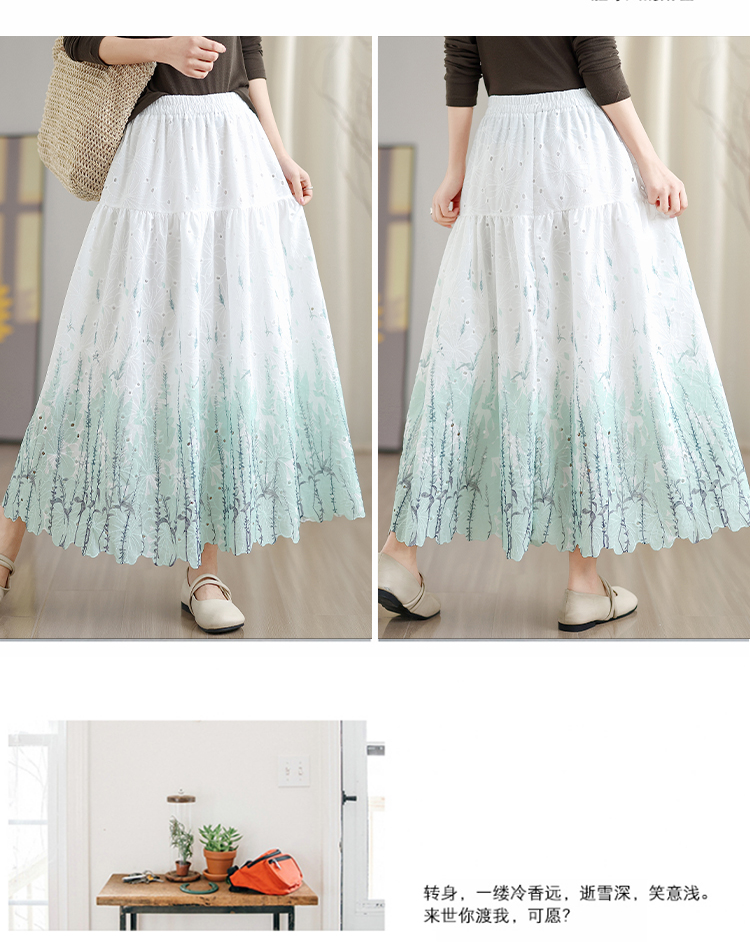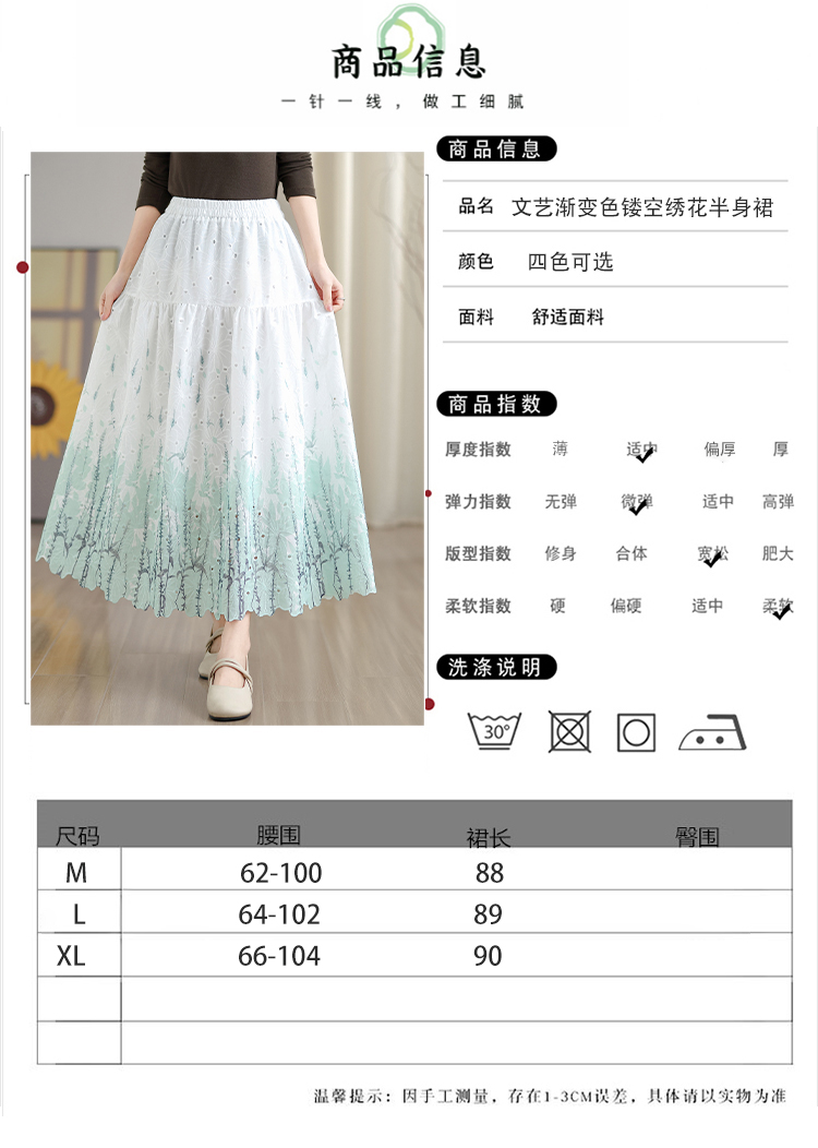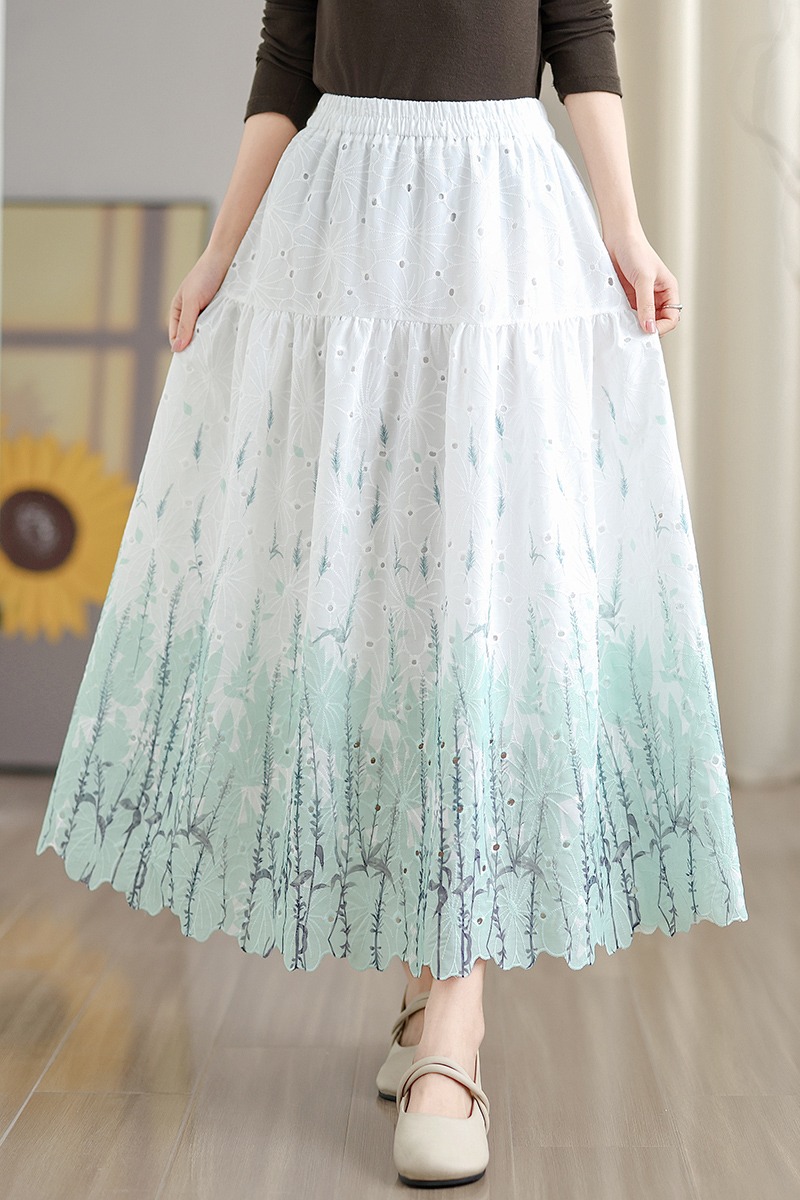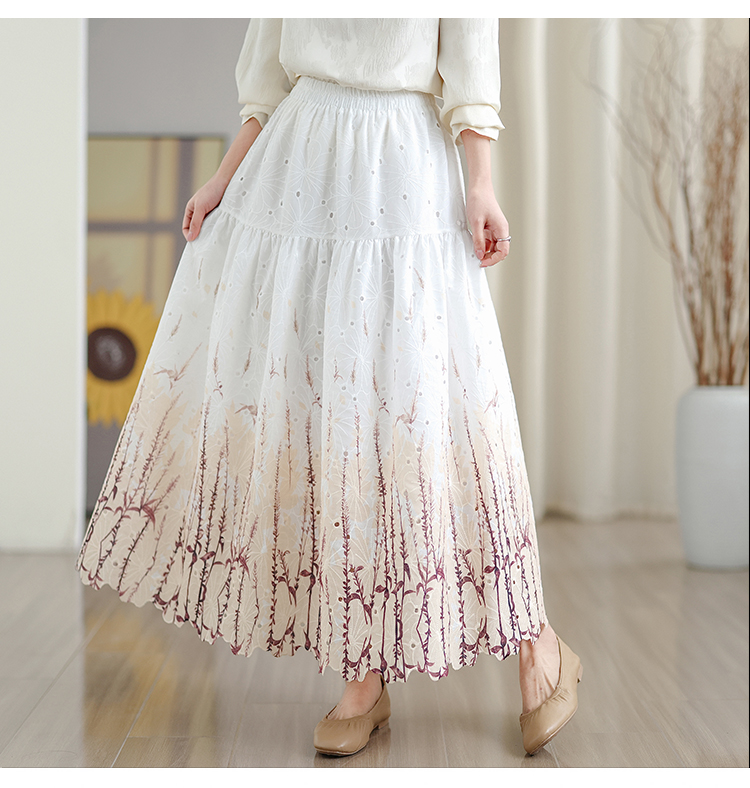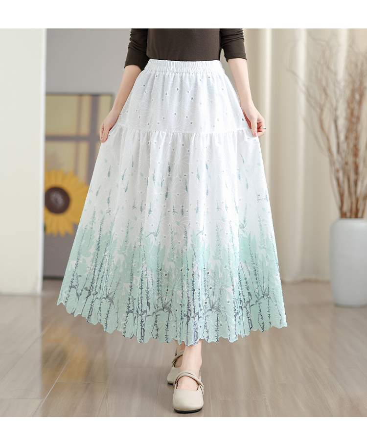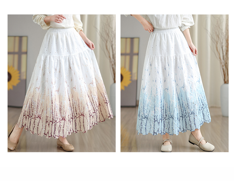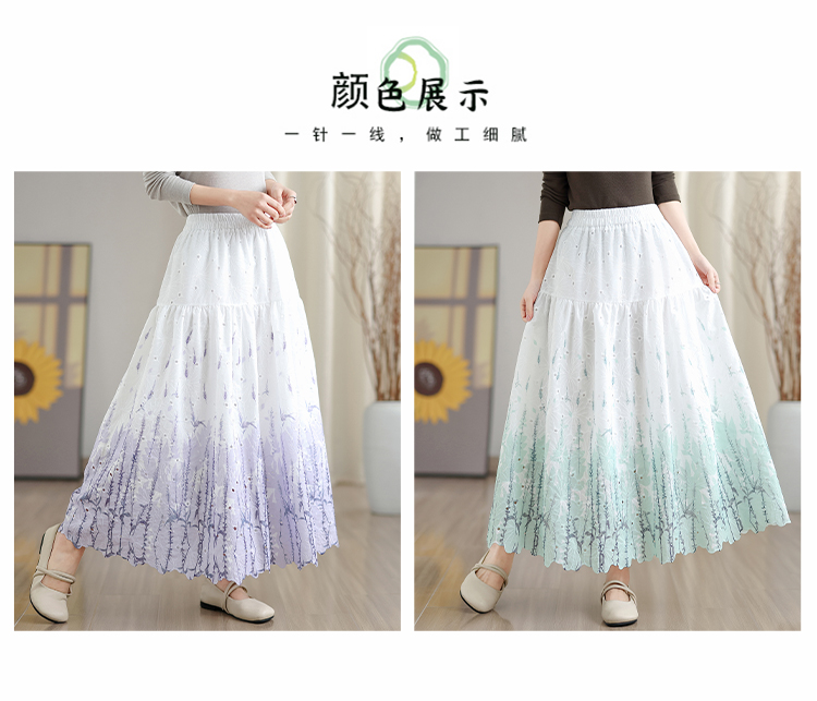 MY16240# 植物晕染刺绣半身裙女春季新款温柔风高腰显瘦蛋糕裙A字长裙女裝貨源服裝批發