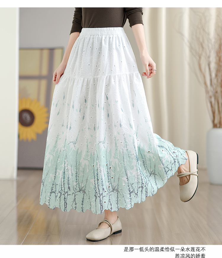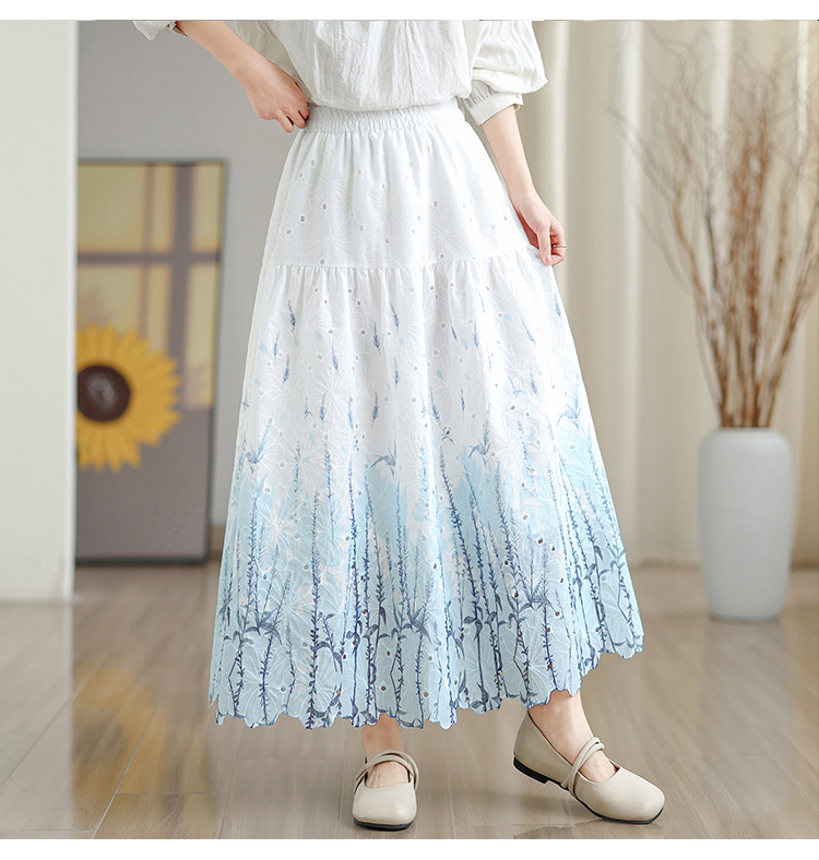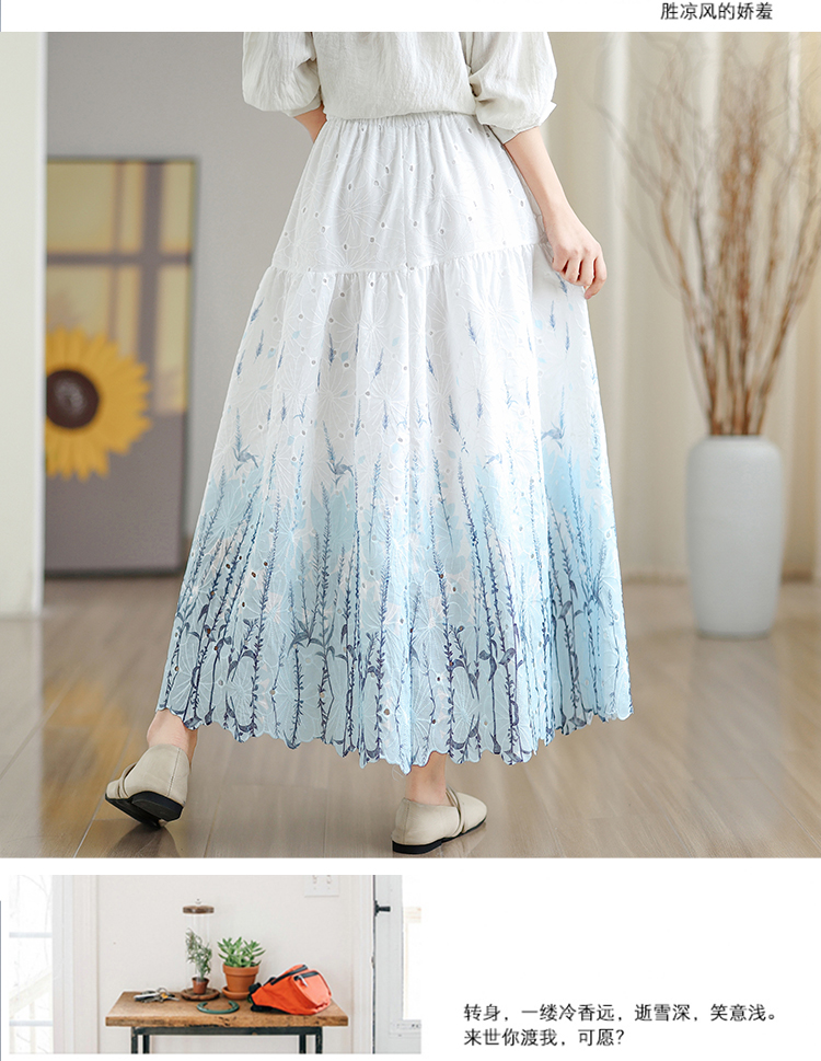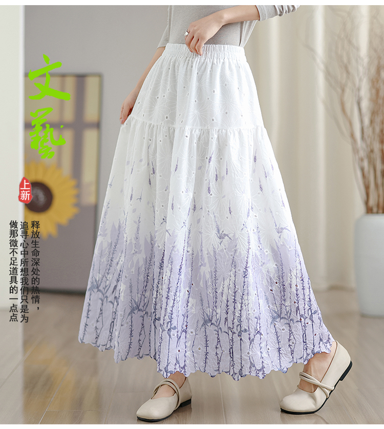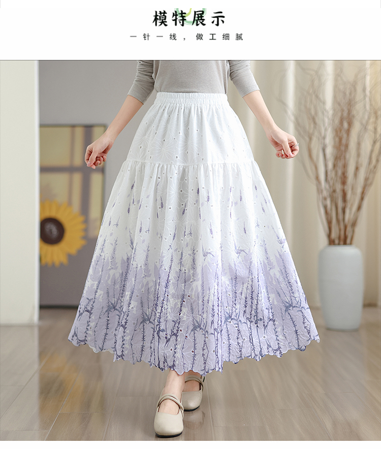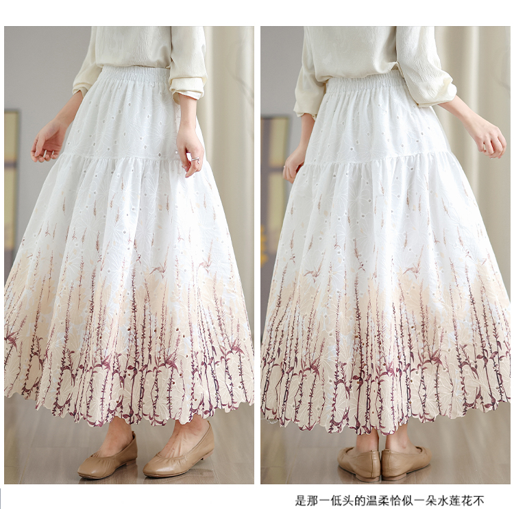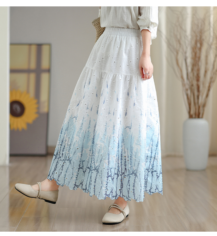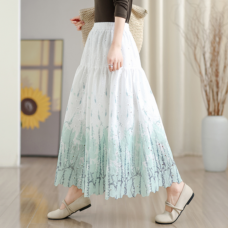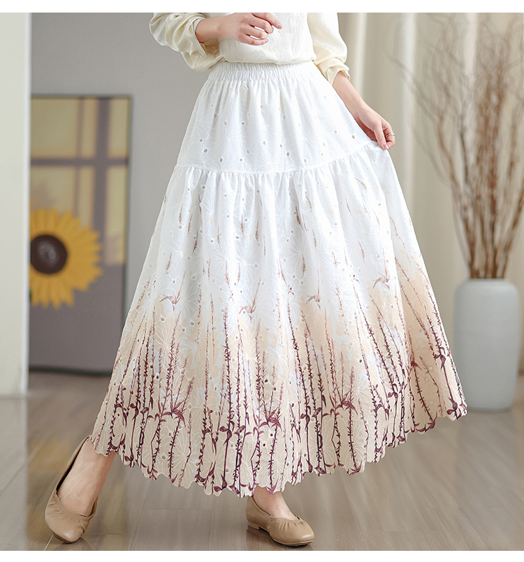 MY16240# 植物晕染刺绣半身裙女春季新款温柔风高腰显瘦蛋糕裙A字长裙女裝貨源服裝批發