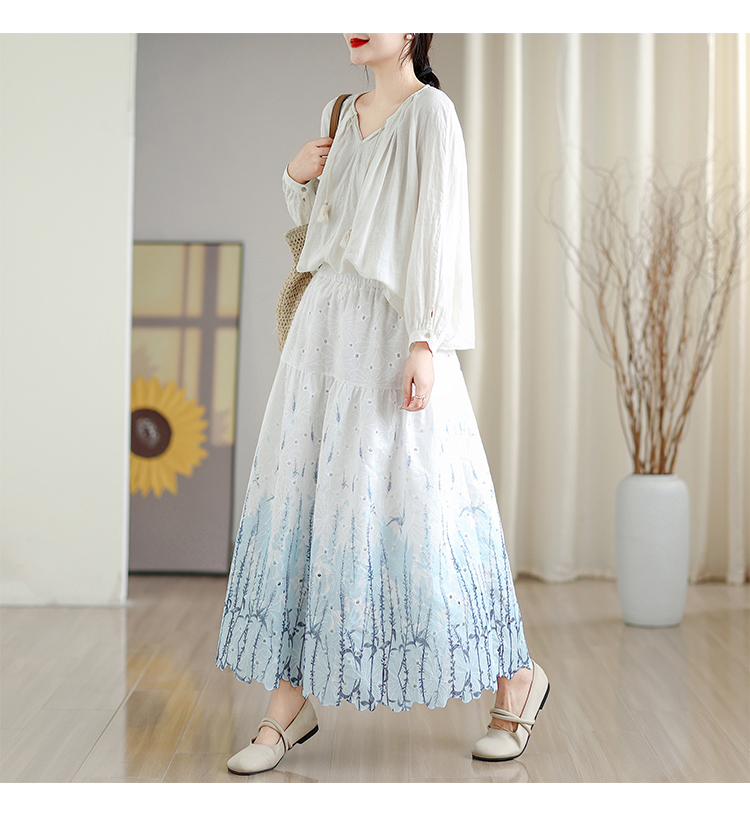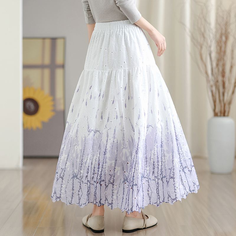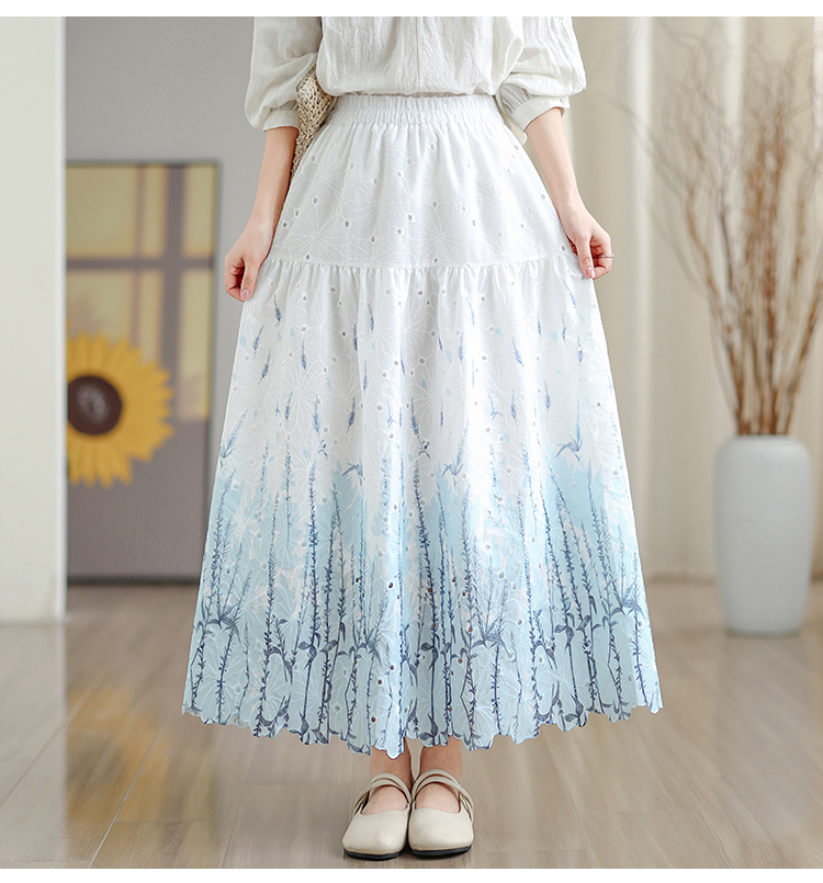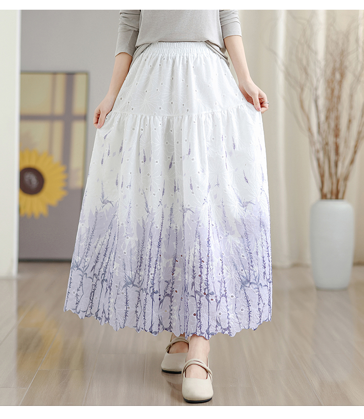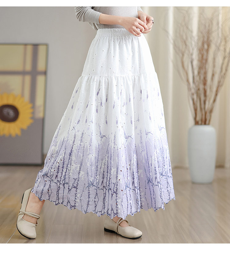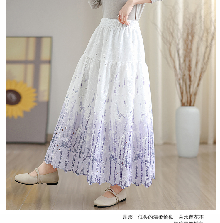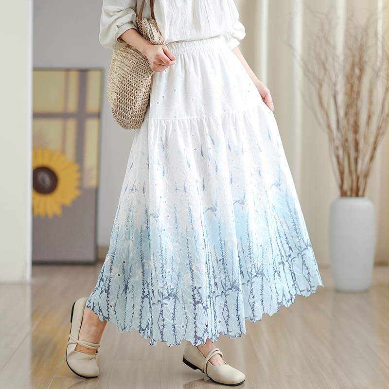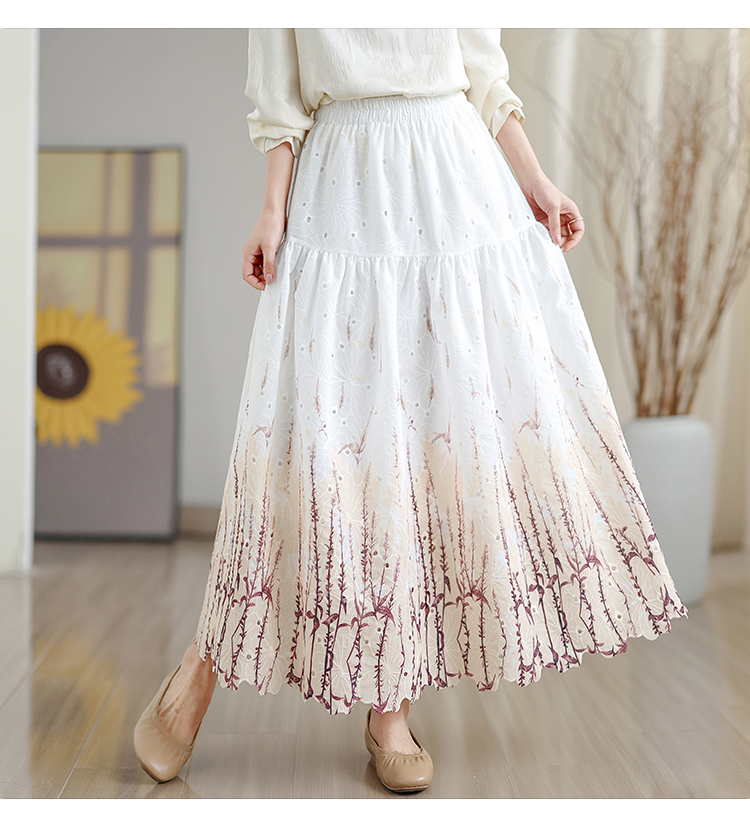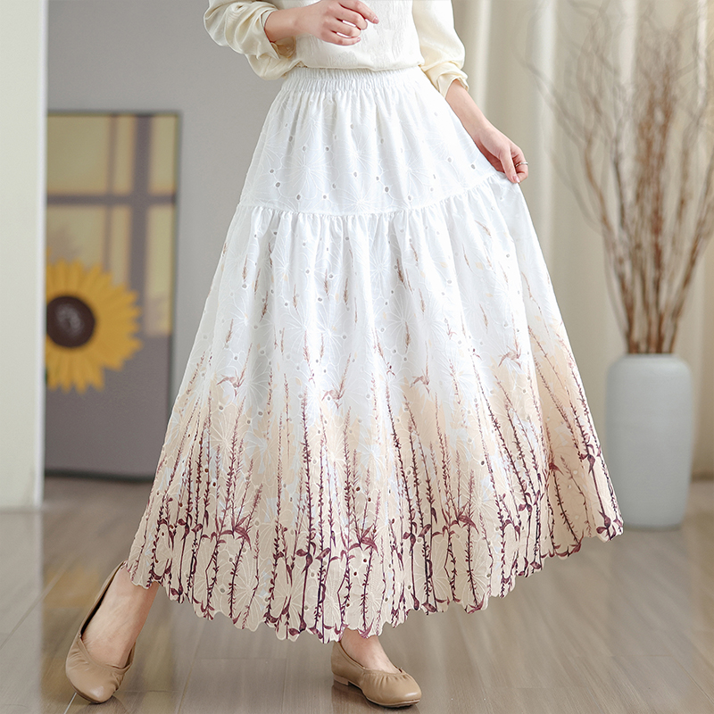 MY16240# 植物晕染刺绣半身裙女春季新款温柔风高腰显瘦蛋糕裙A字长裙女裝貨源服裝批發
