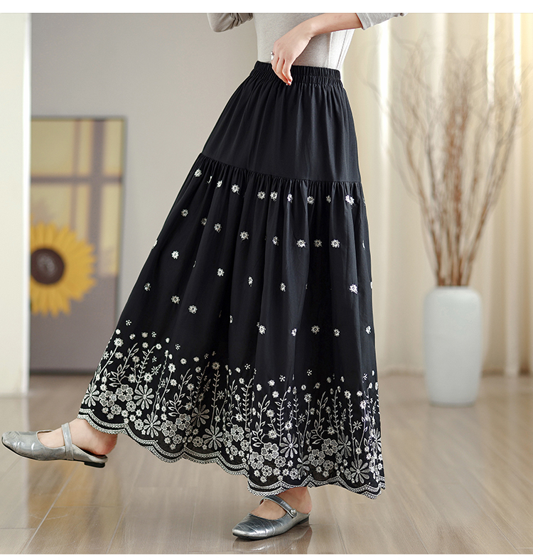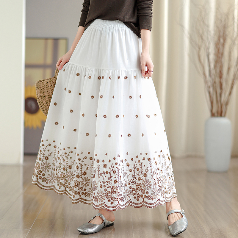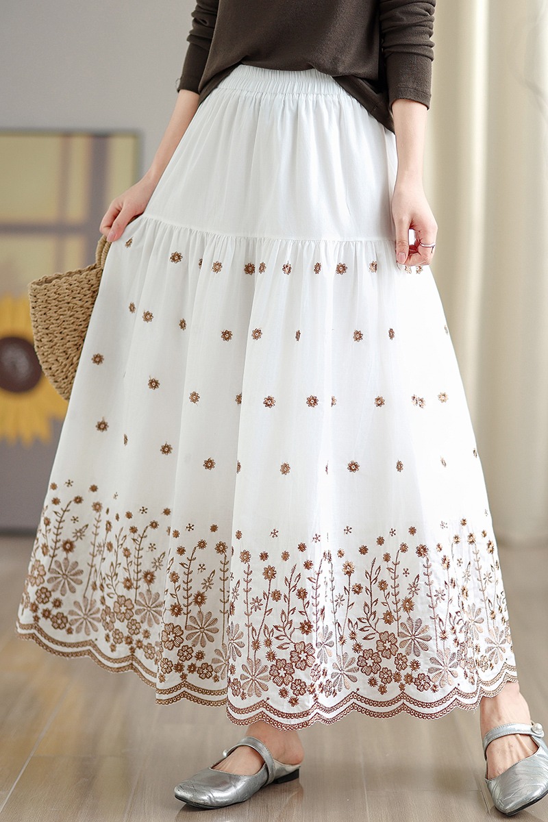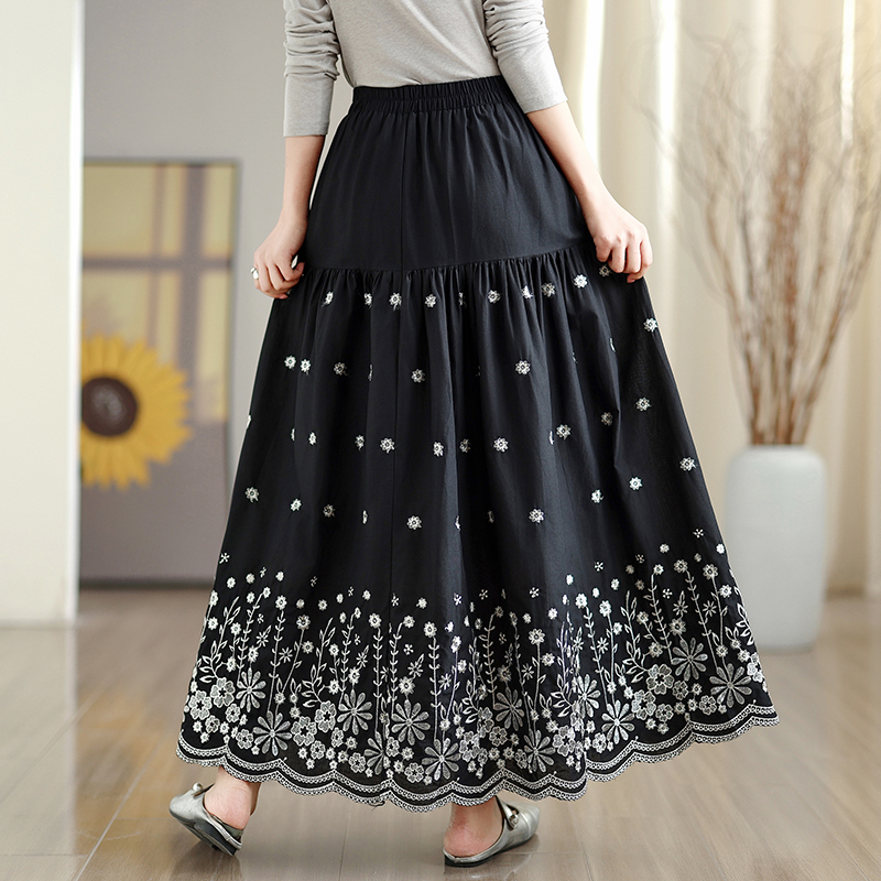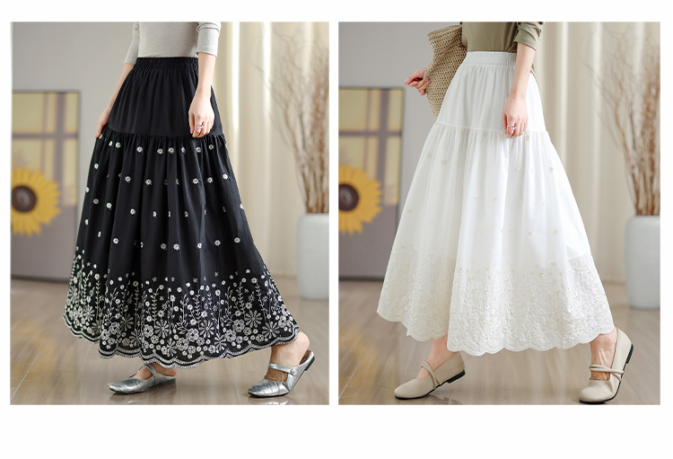 MY16242# 拼接碎花刺绣半身裙女春季新款温柔风高腰显瘦蛋糕裙A字长裙女裝貨源服裝批發