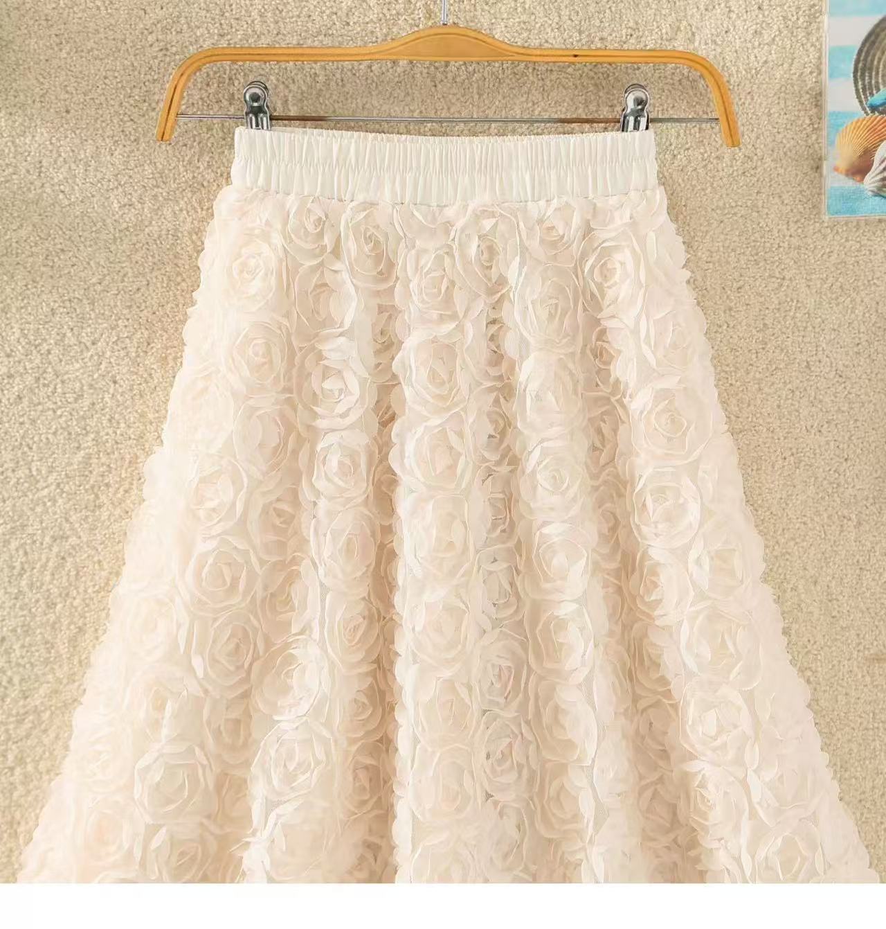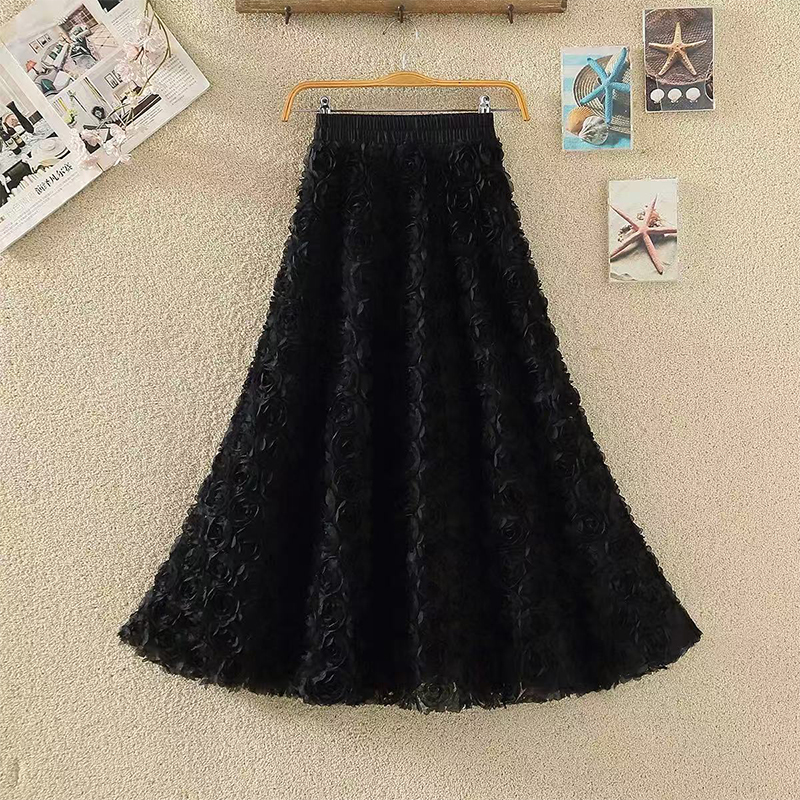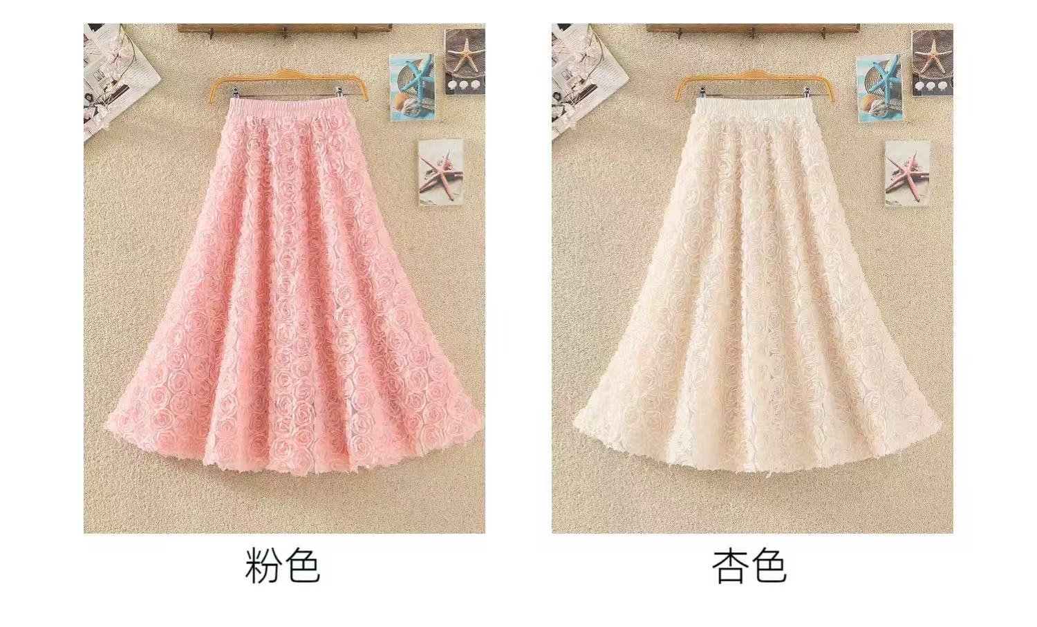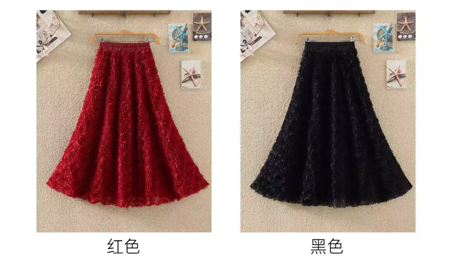 MY16244# 新款立体玫瑰花朵网纱半身裙高腰a字裙纱裙长裙女女裝貨源服裝批發