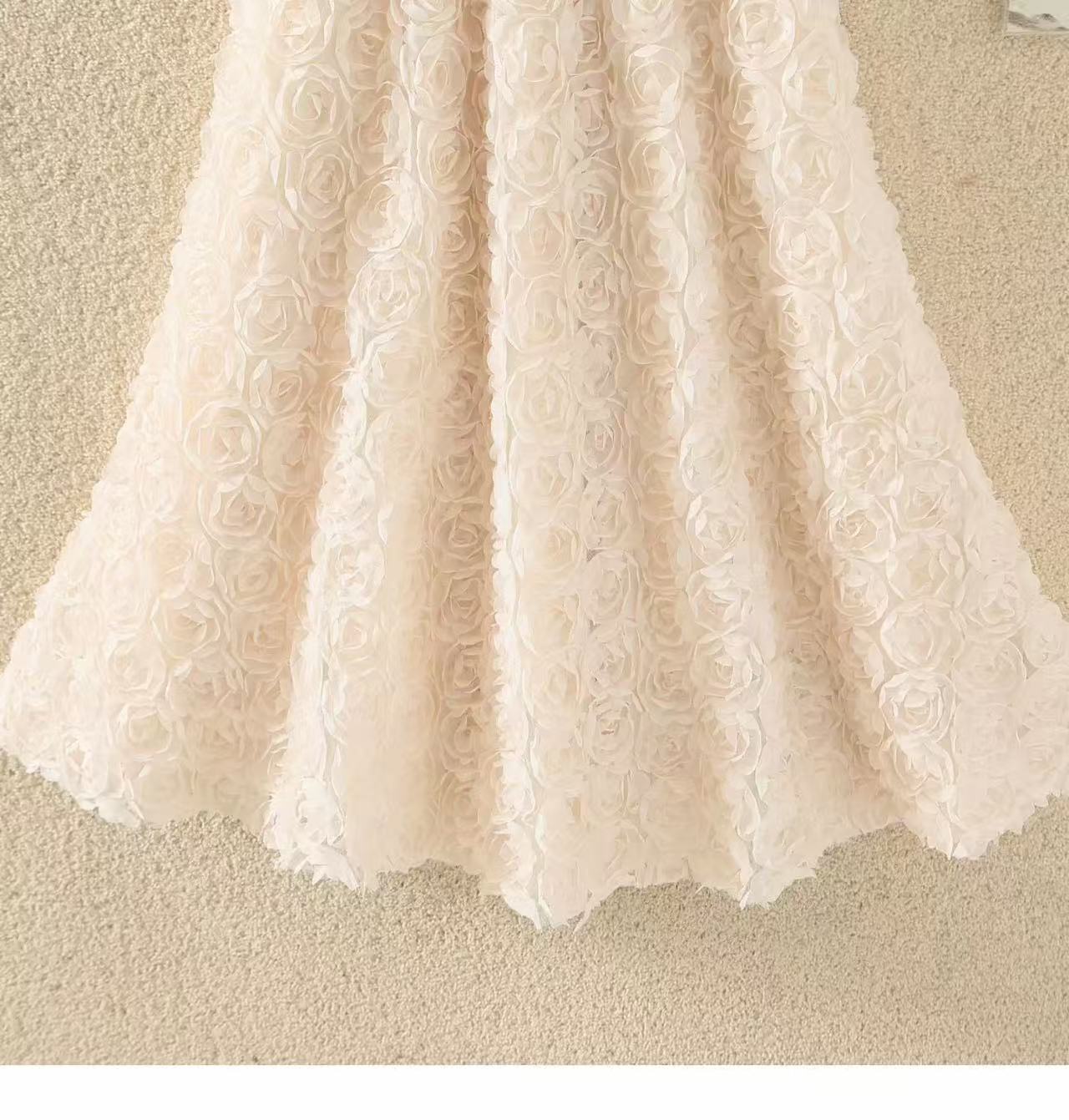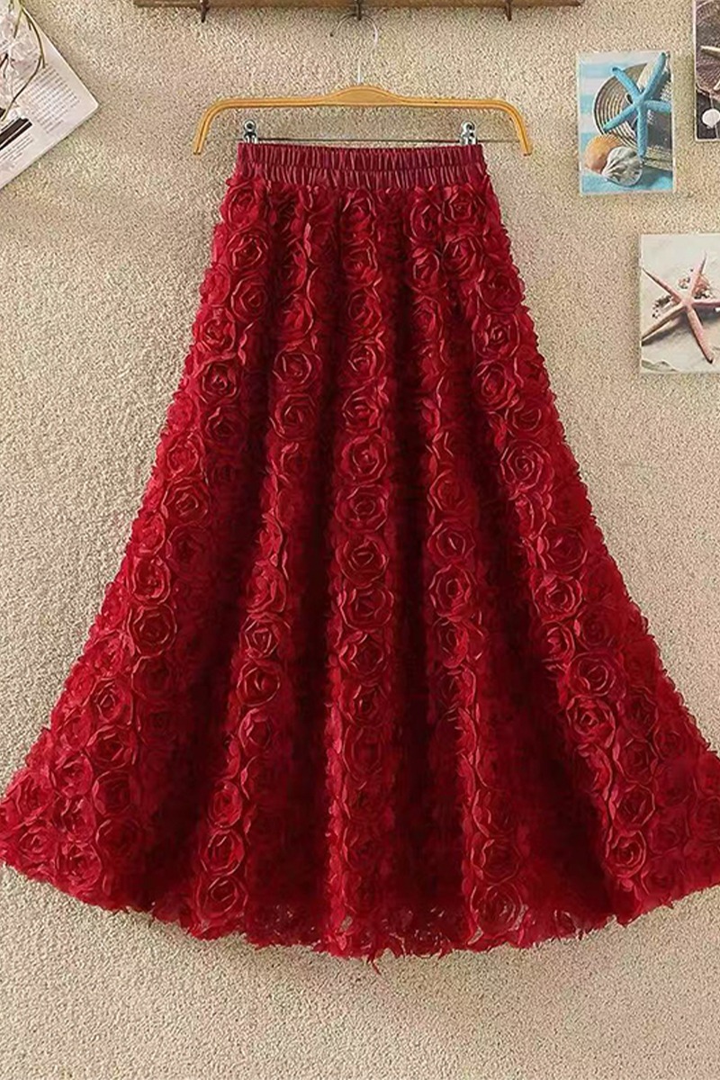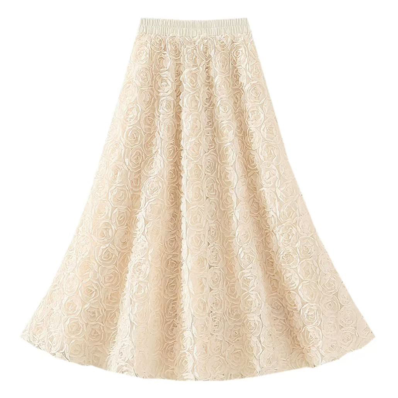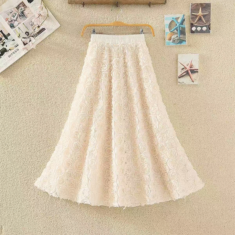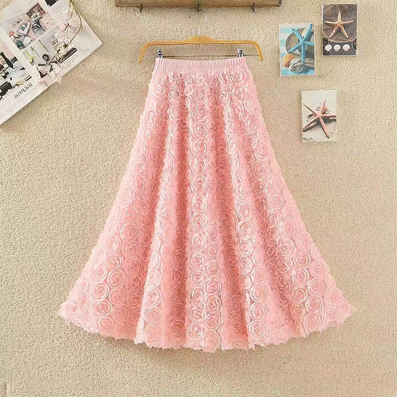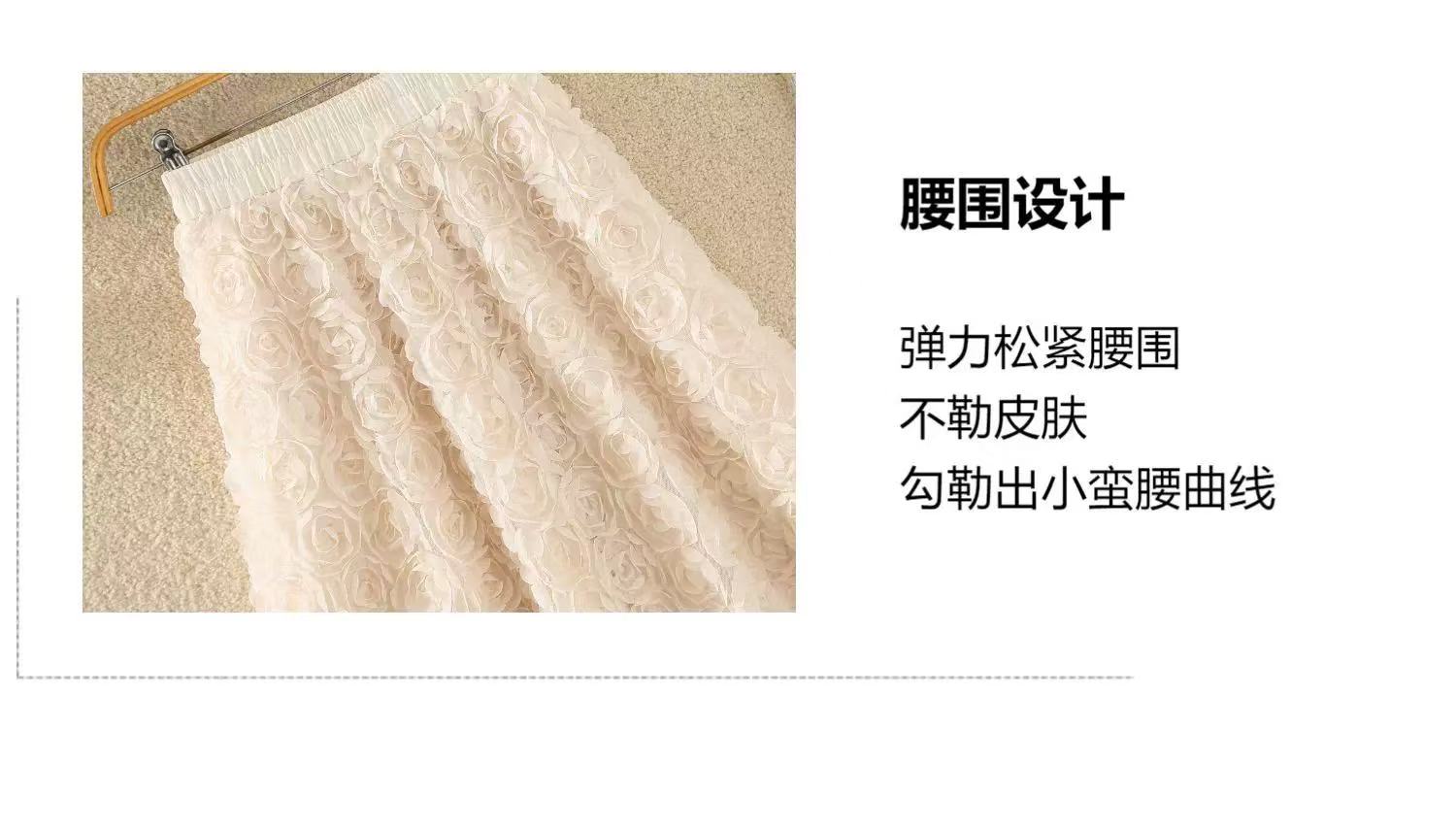 MY16244# 新款立体玫瑰花朵网纱半身裙高腰a字裙纱裙长裙女女裝貨源服裝批發