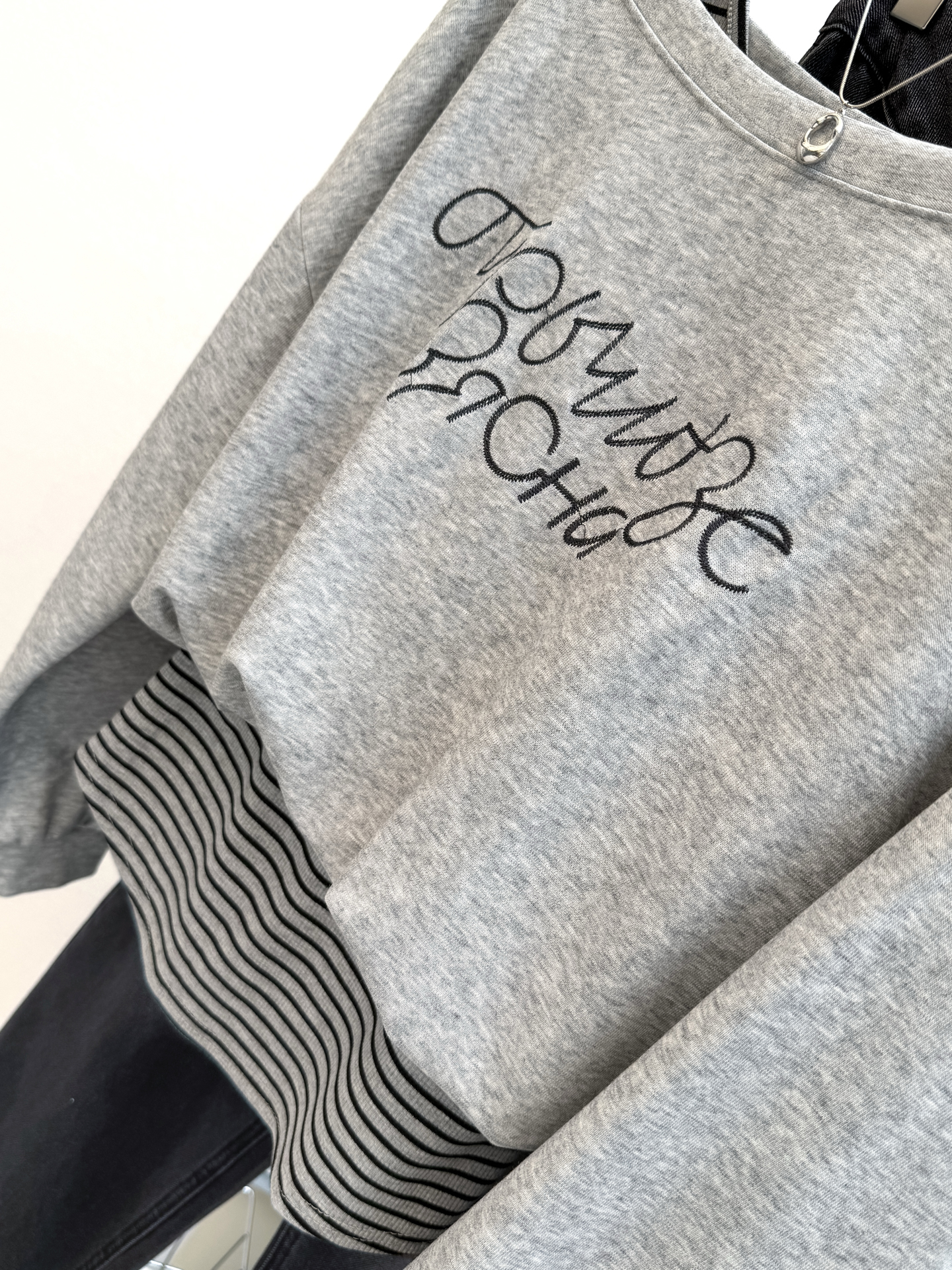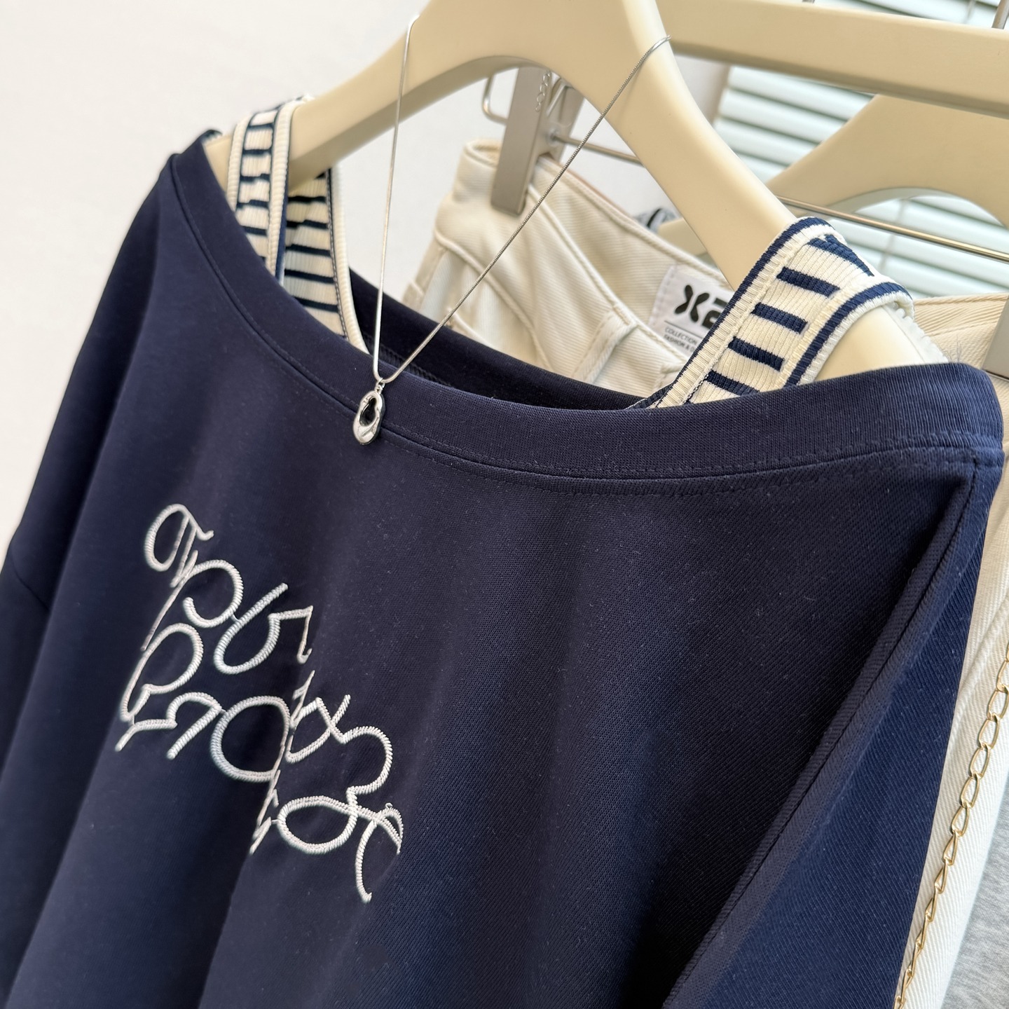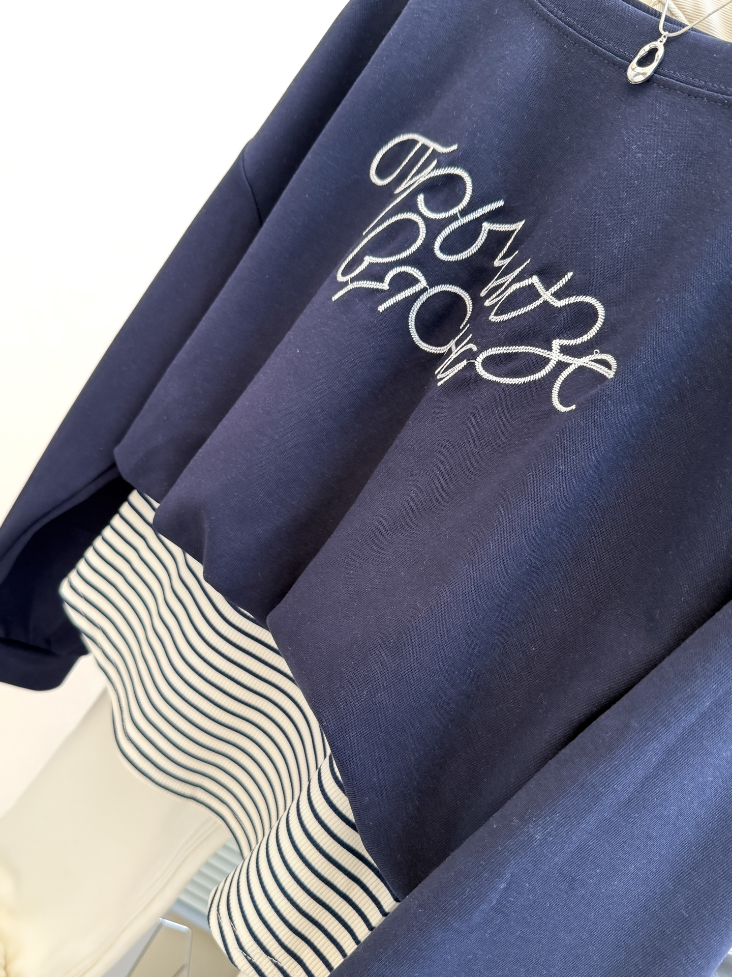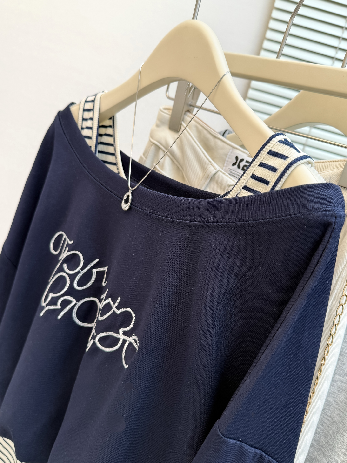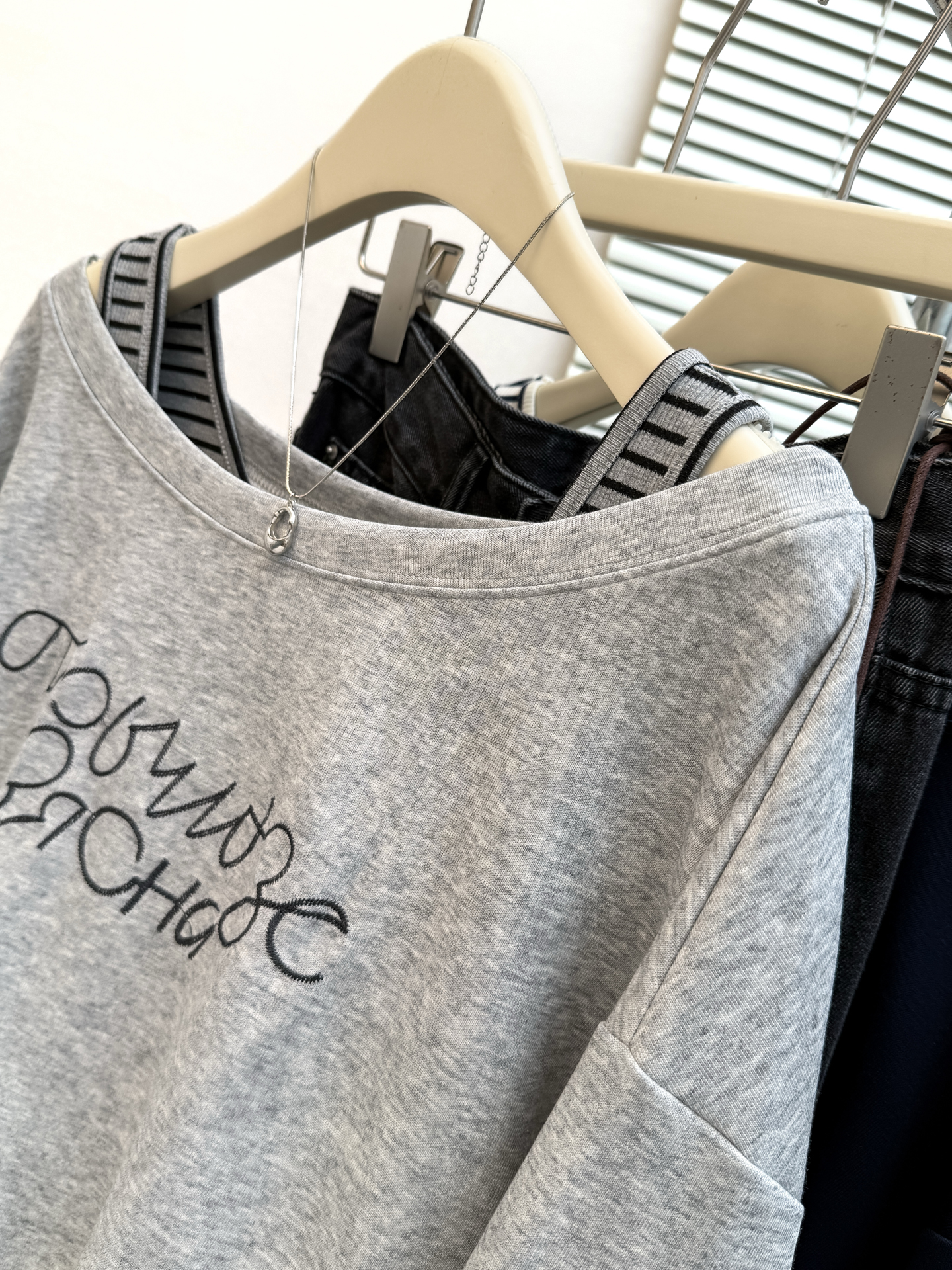 MY16255# 超火减龄露肩长袖卫衣大码女装胖mm假两件别致上衣女裝貨源服裝批發