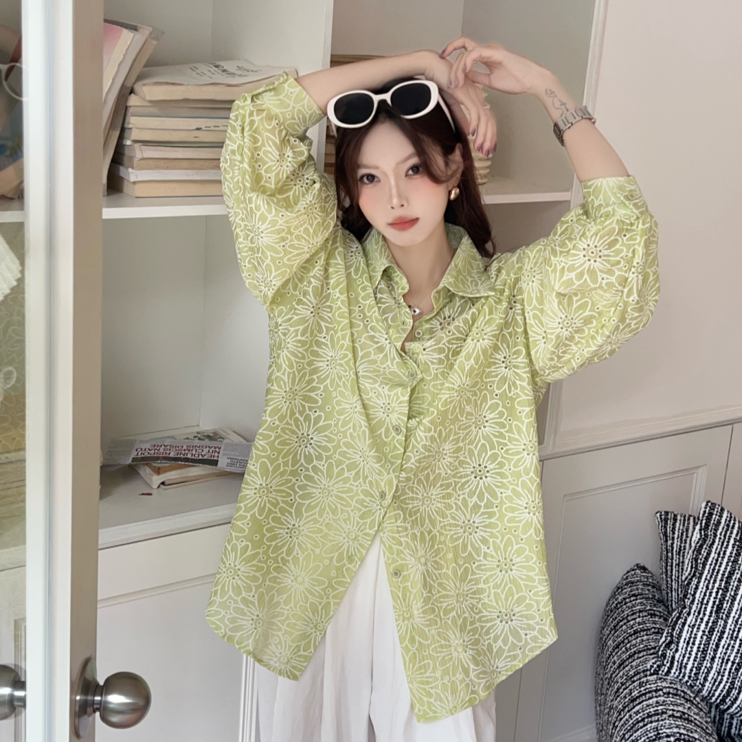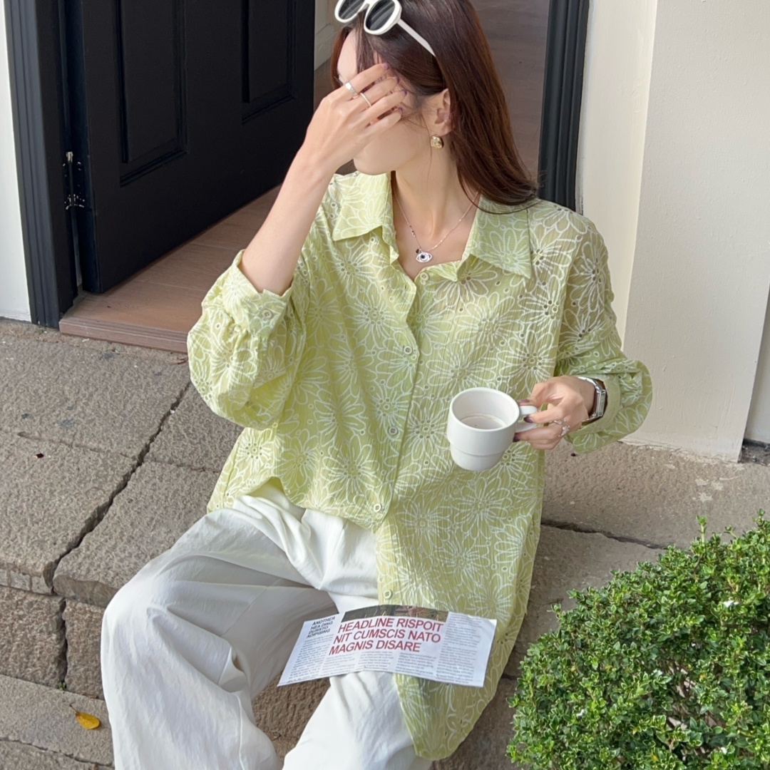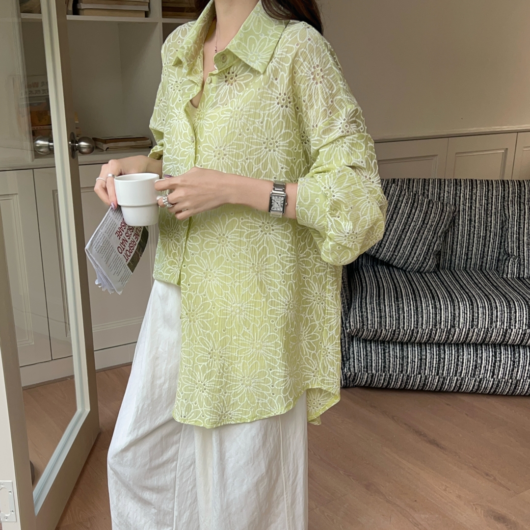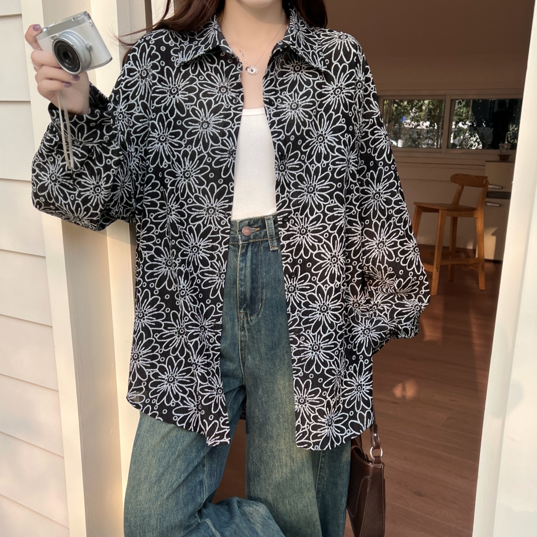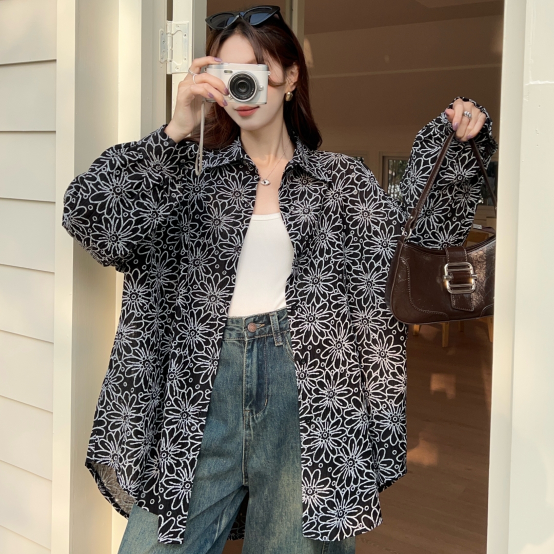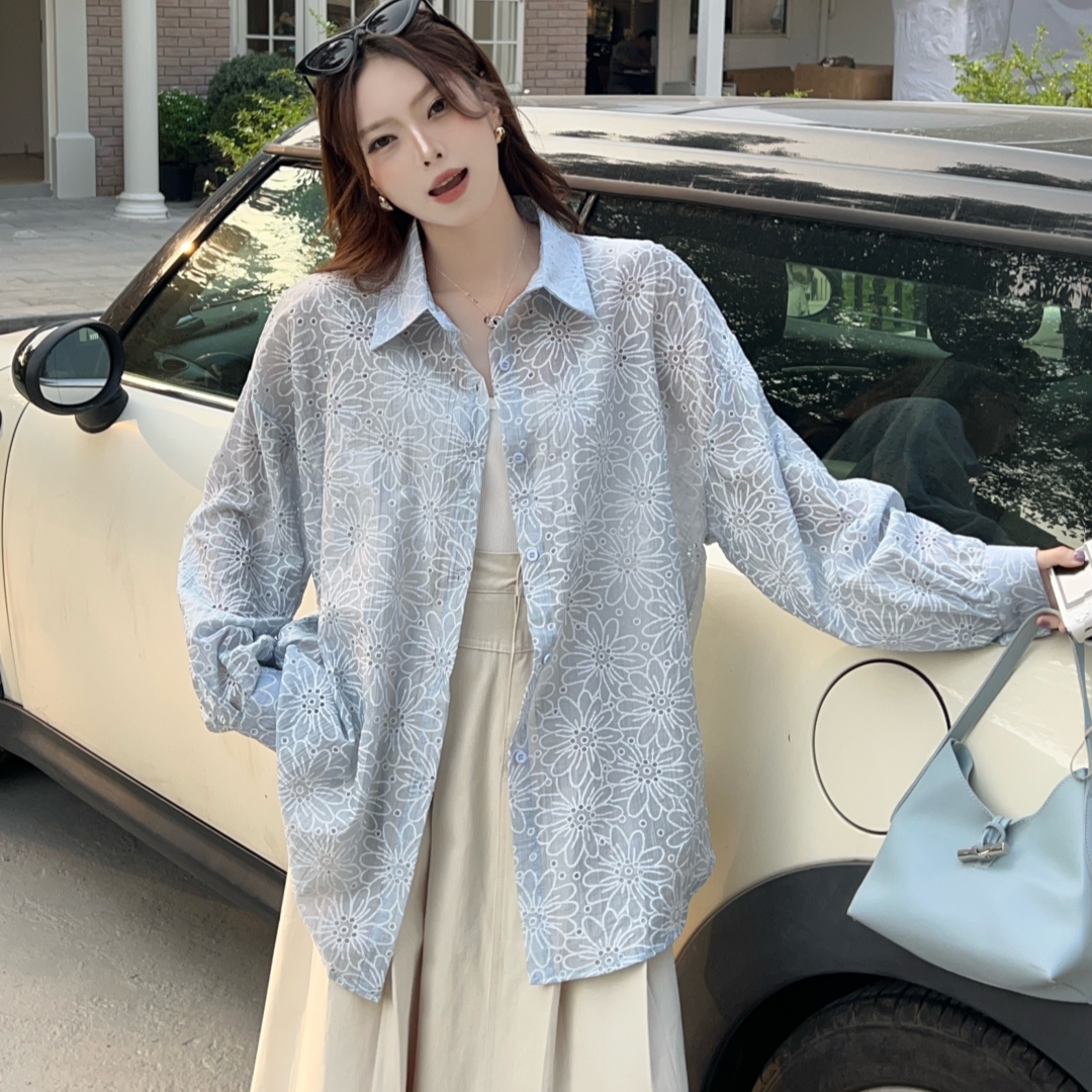 MY16270# 韩版春oversize宽松衬衫原宿风百搭镂空绣花休闲设计感衬衣外套女女裝貨源服裝批發