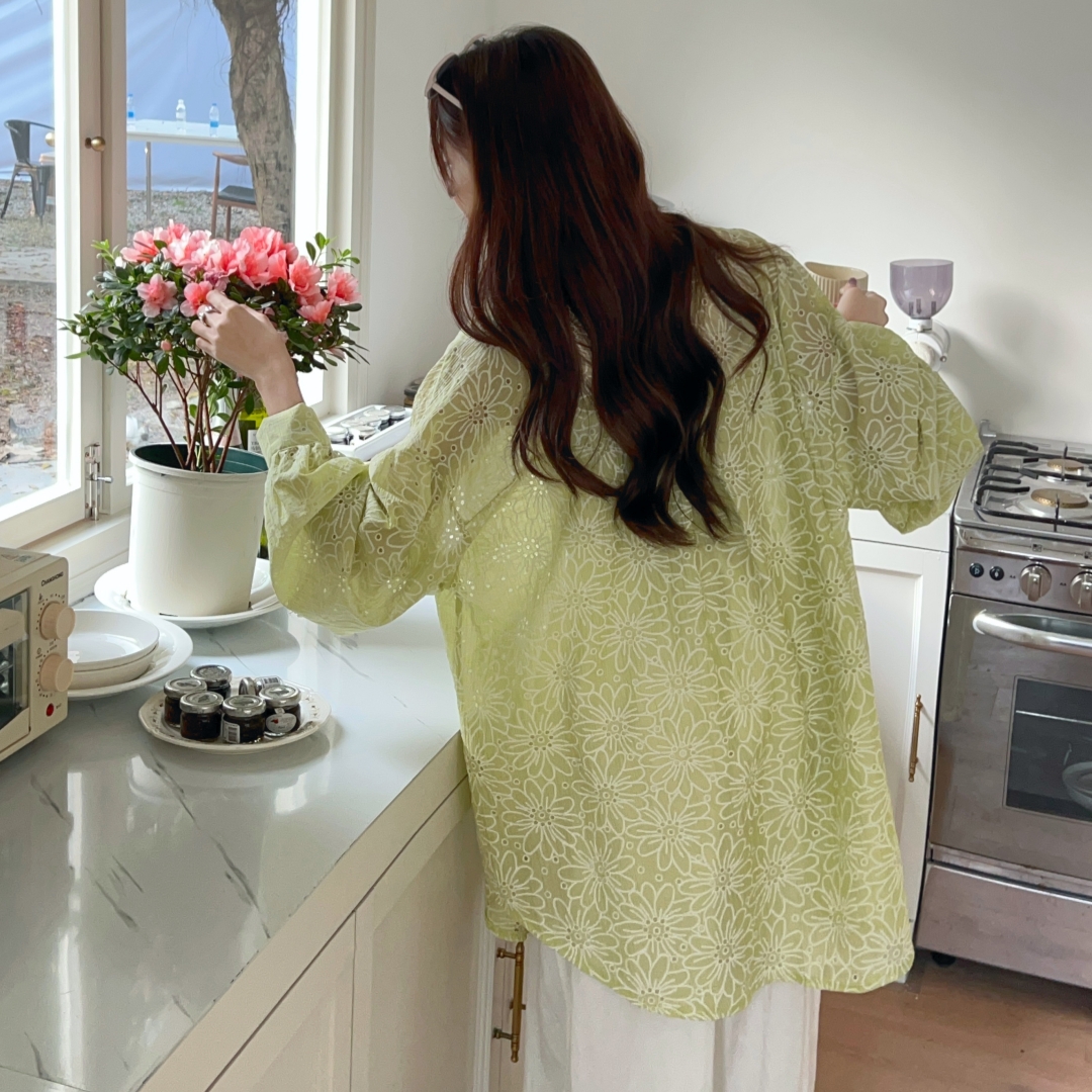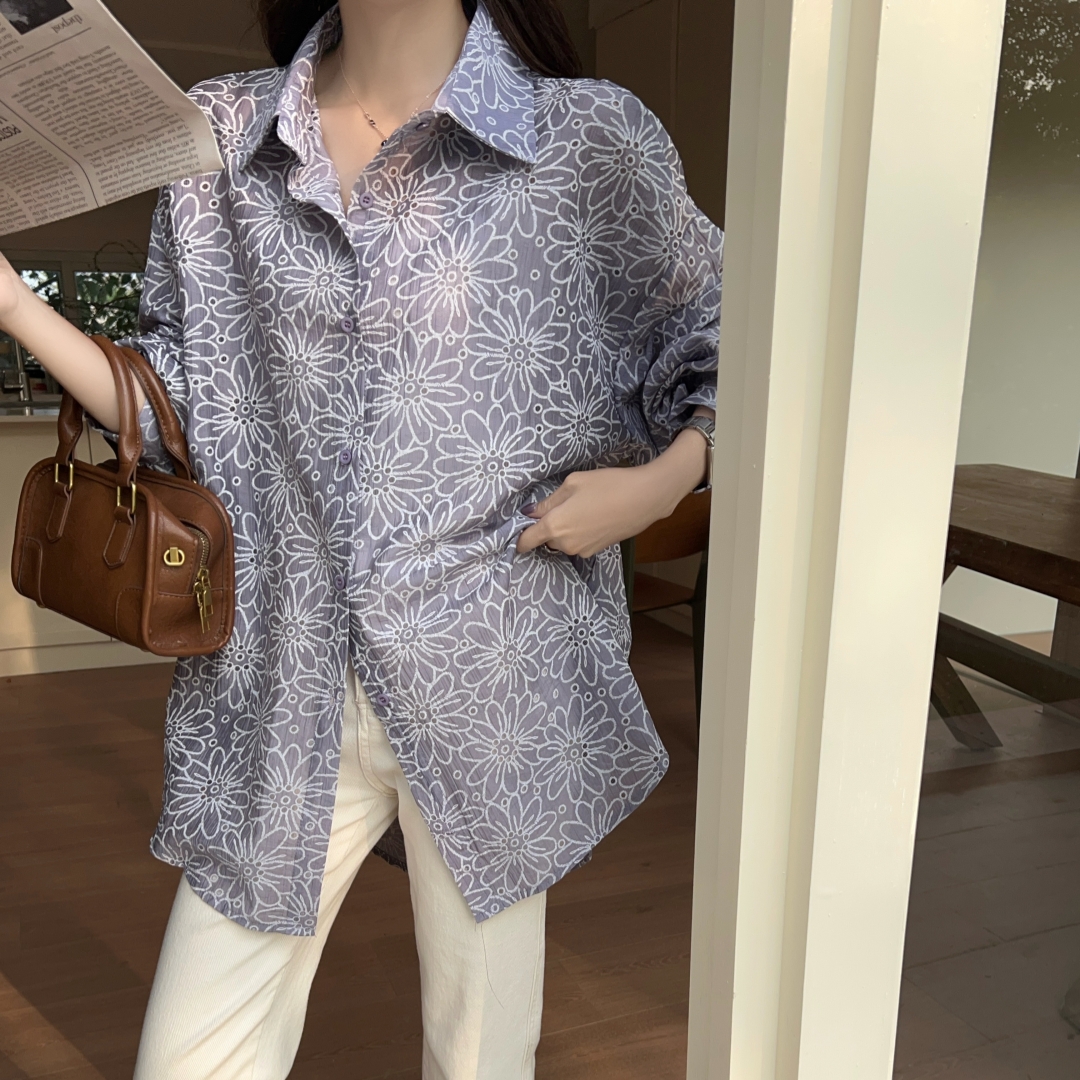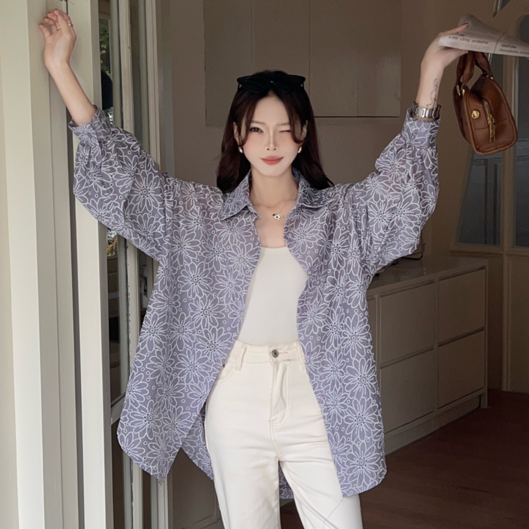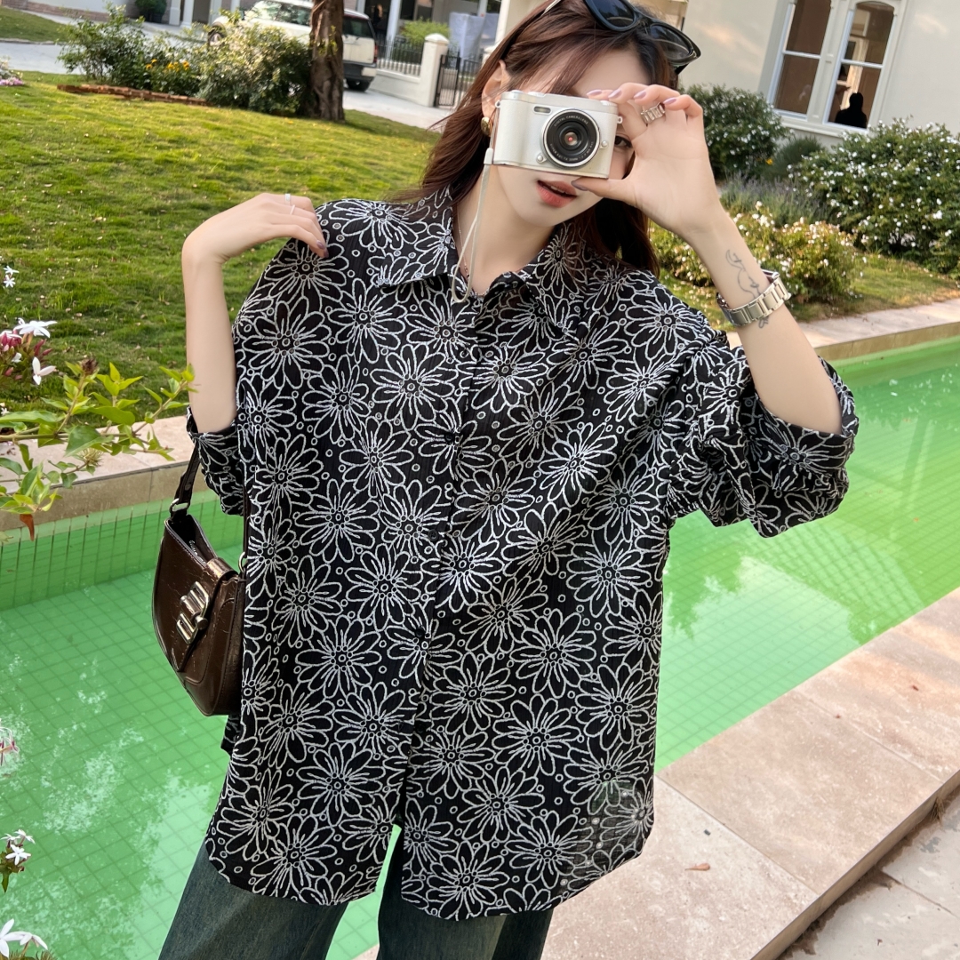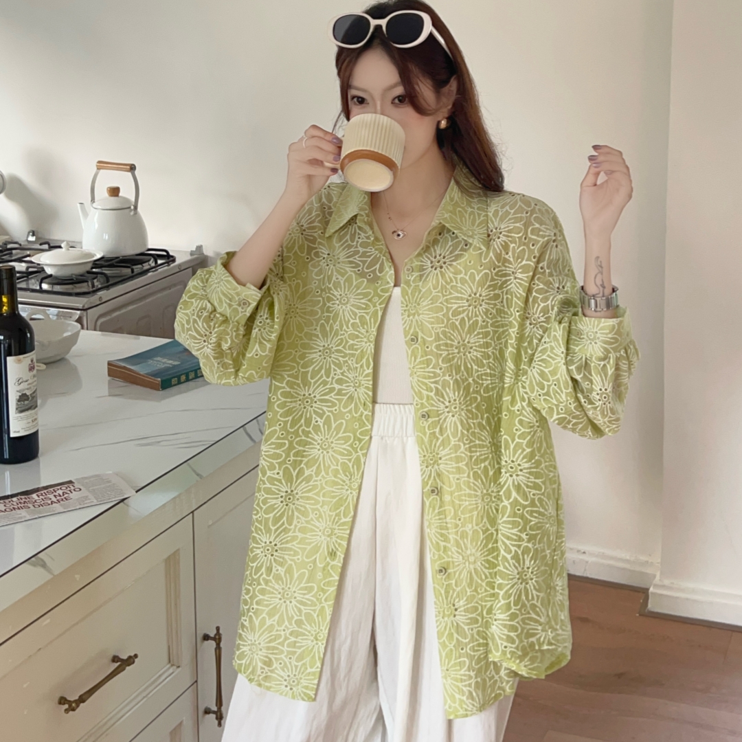 MY16270# 韩版春oversize宽松衬衫原宿风百搭镂空绣花休闲设计感衬衣外套女女裝貨源服裝批發