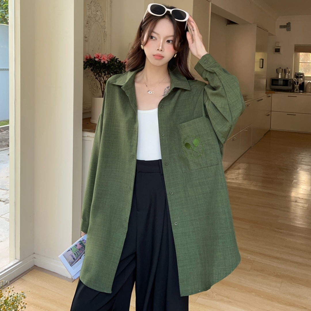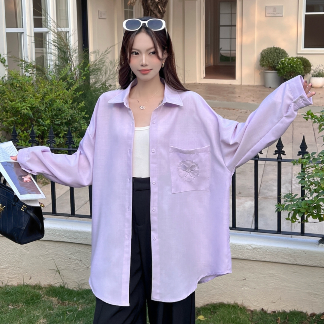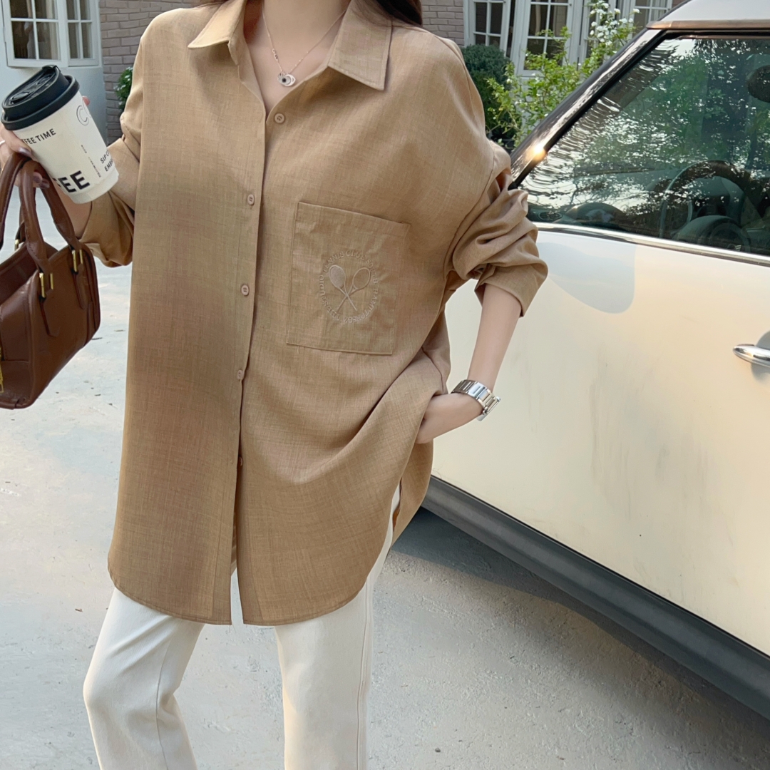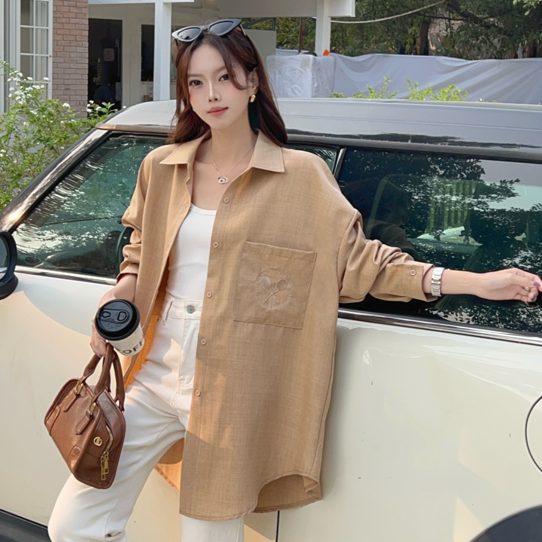 MY16272# 韩版春oversize去拍刺绣宽松衬衫原宿风简约纯色设计感衬衣外套女女裝貨源服裝批發