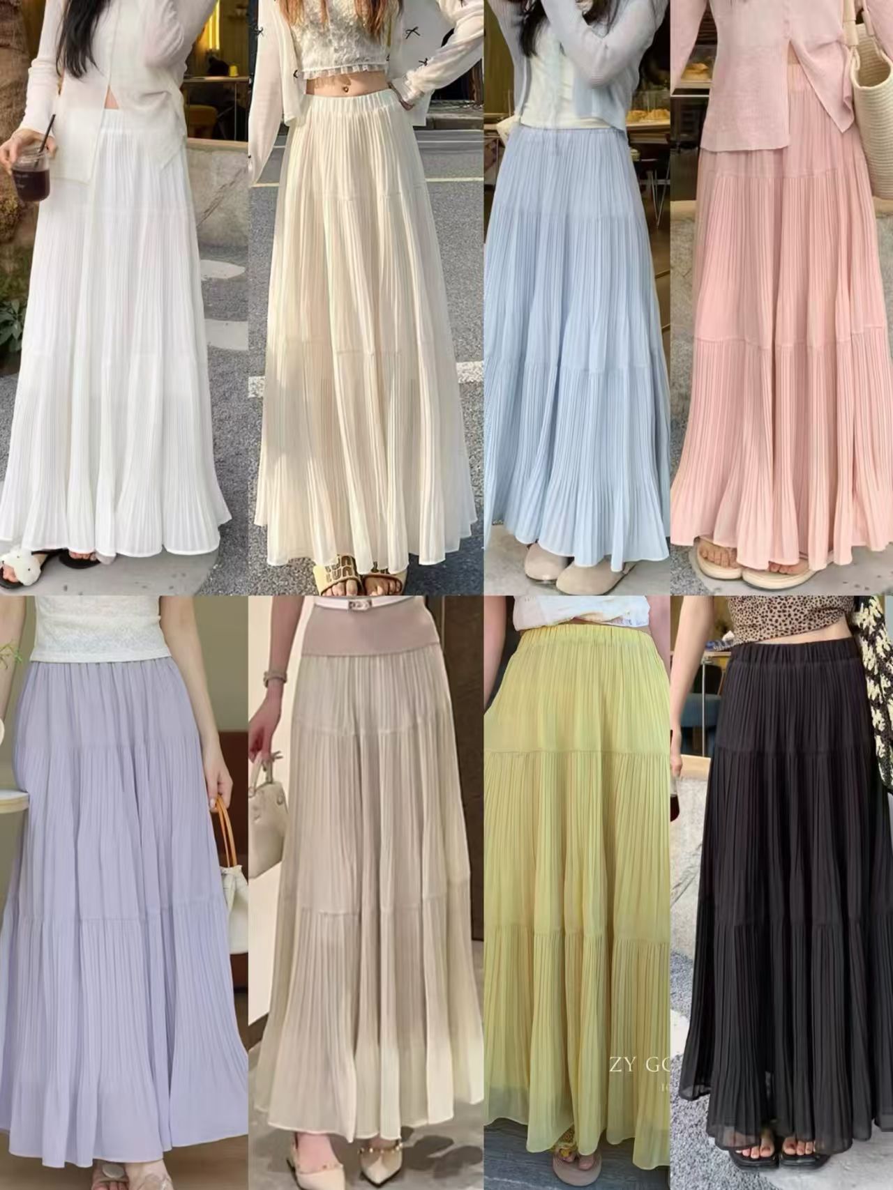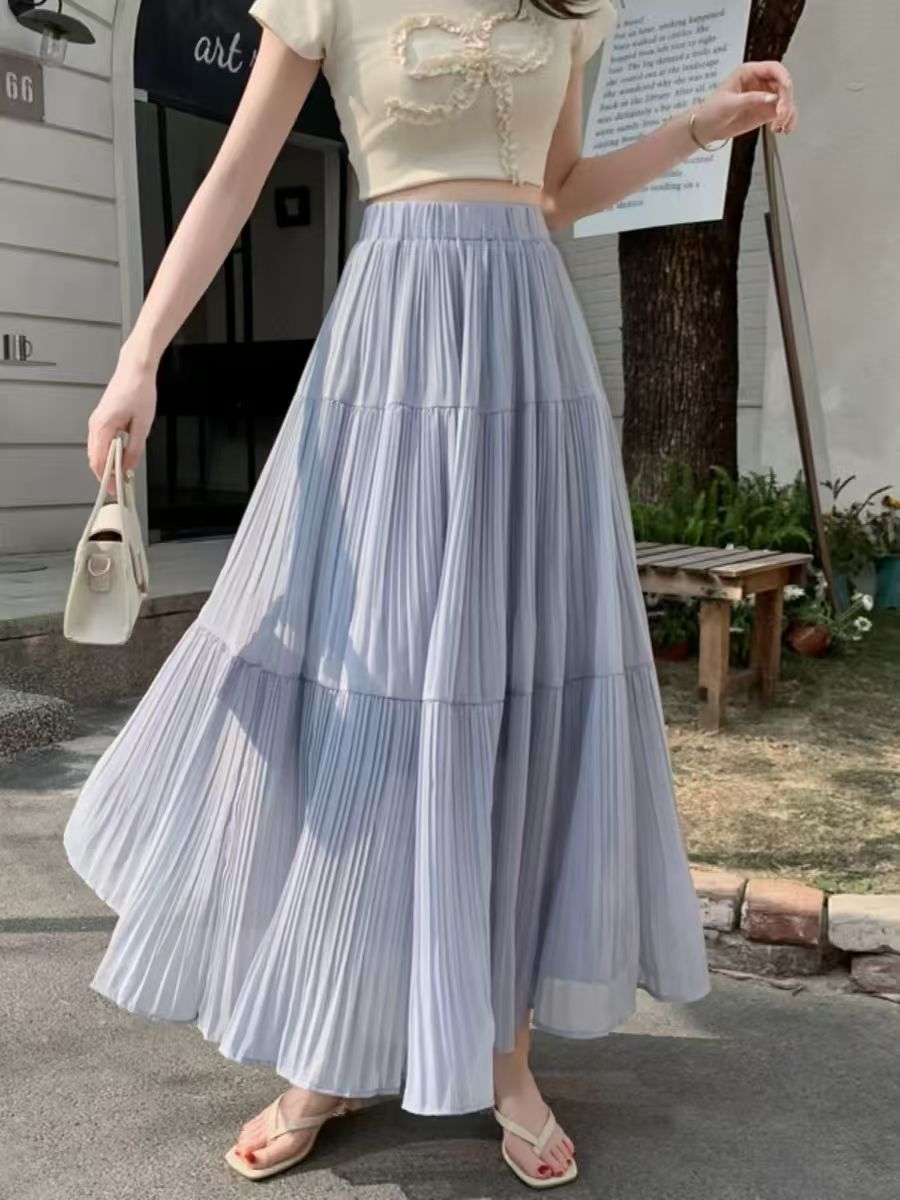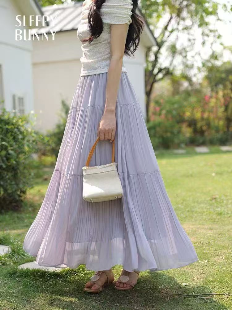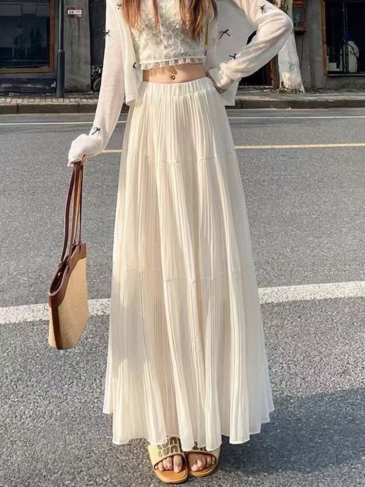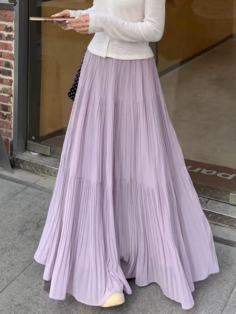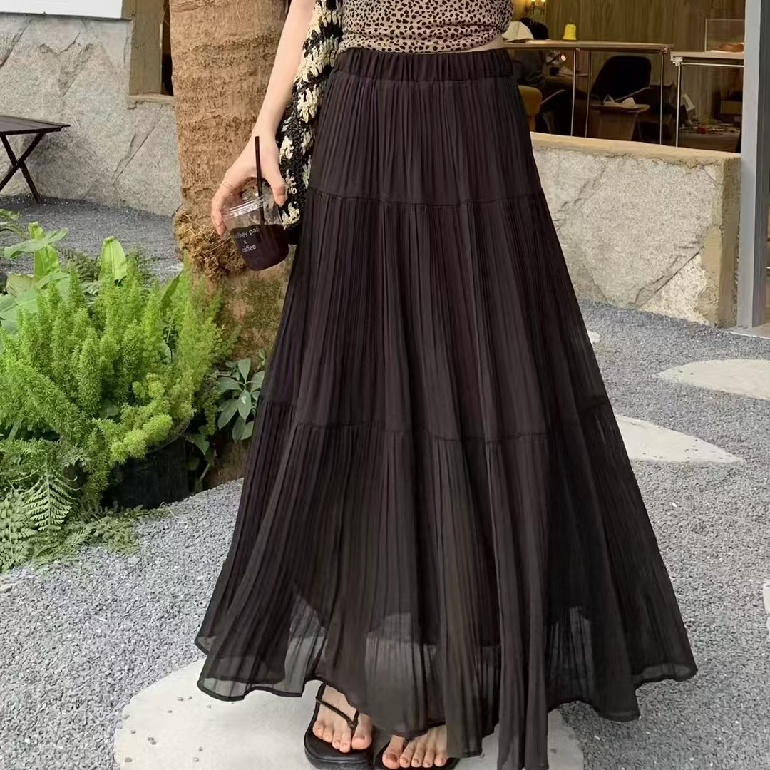 MY16279# 压褶设计感半身裙新款松紧腰遮跨显瘦A字长裙大摆伞裙女裝貨源服裝批發