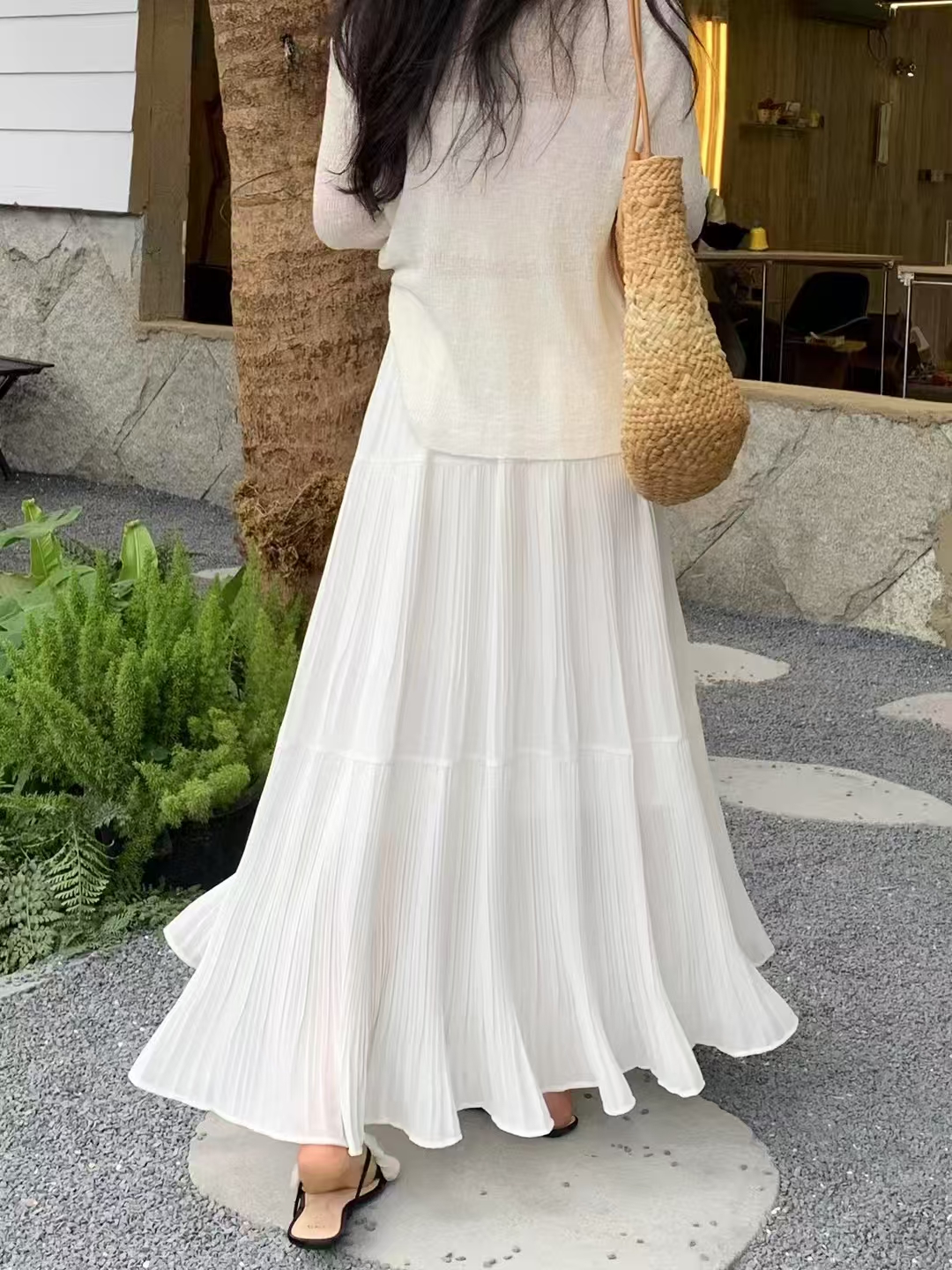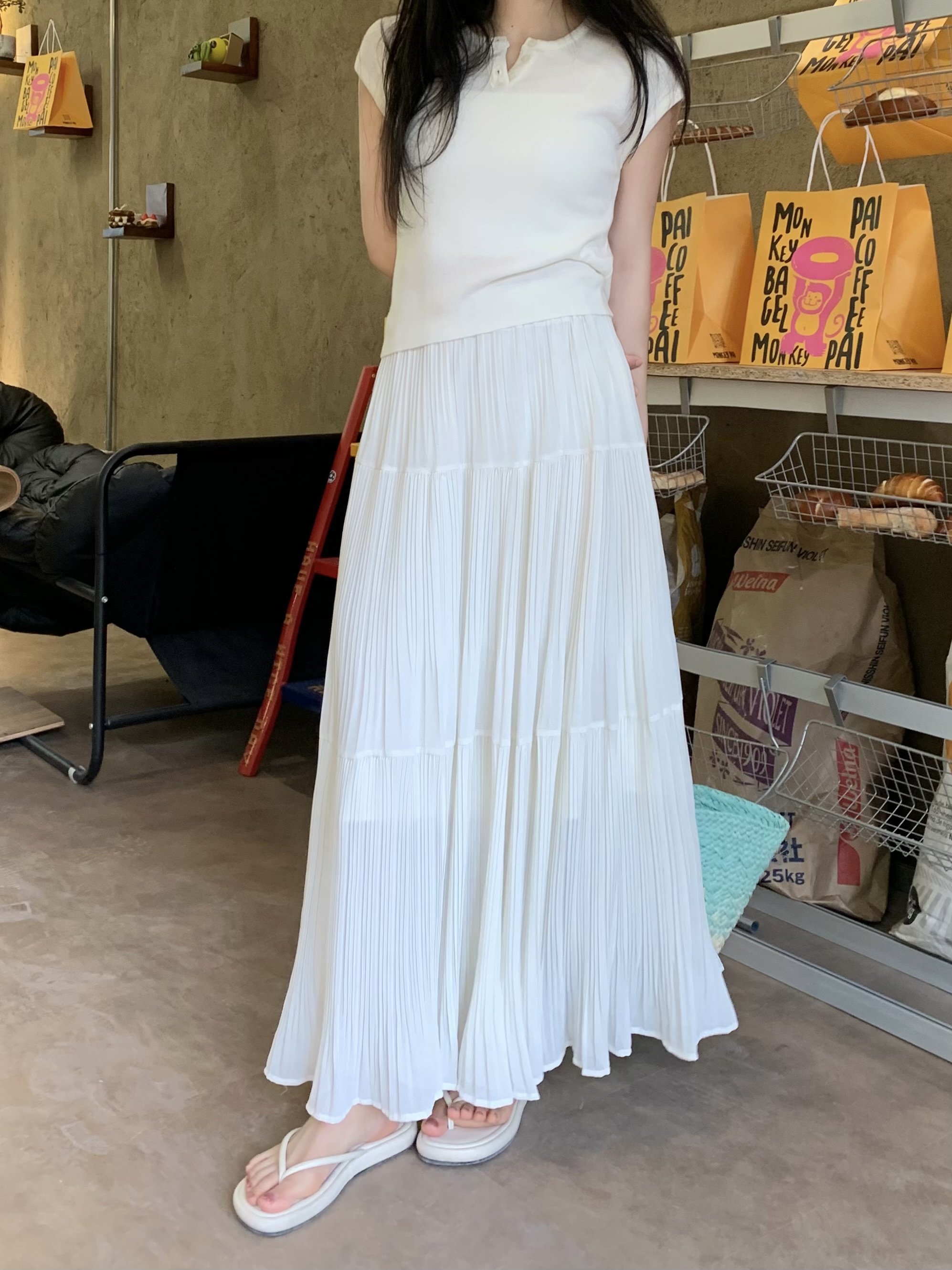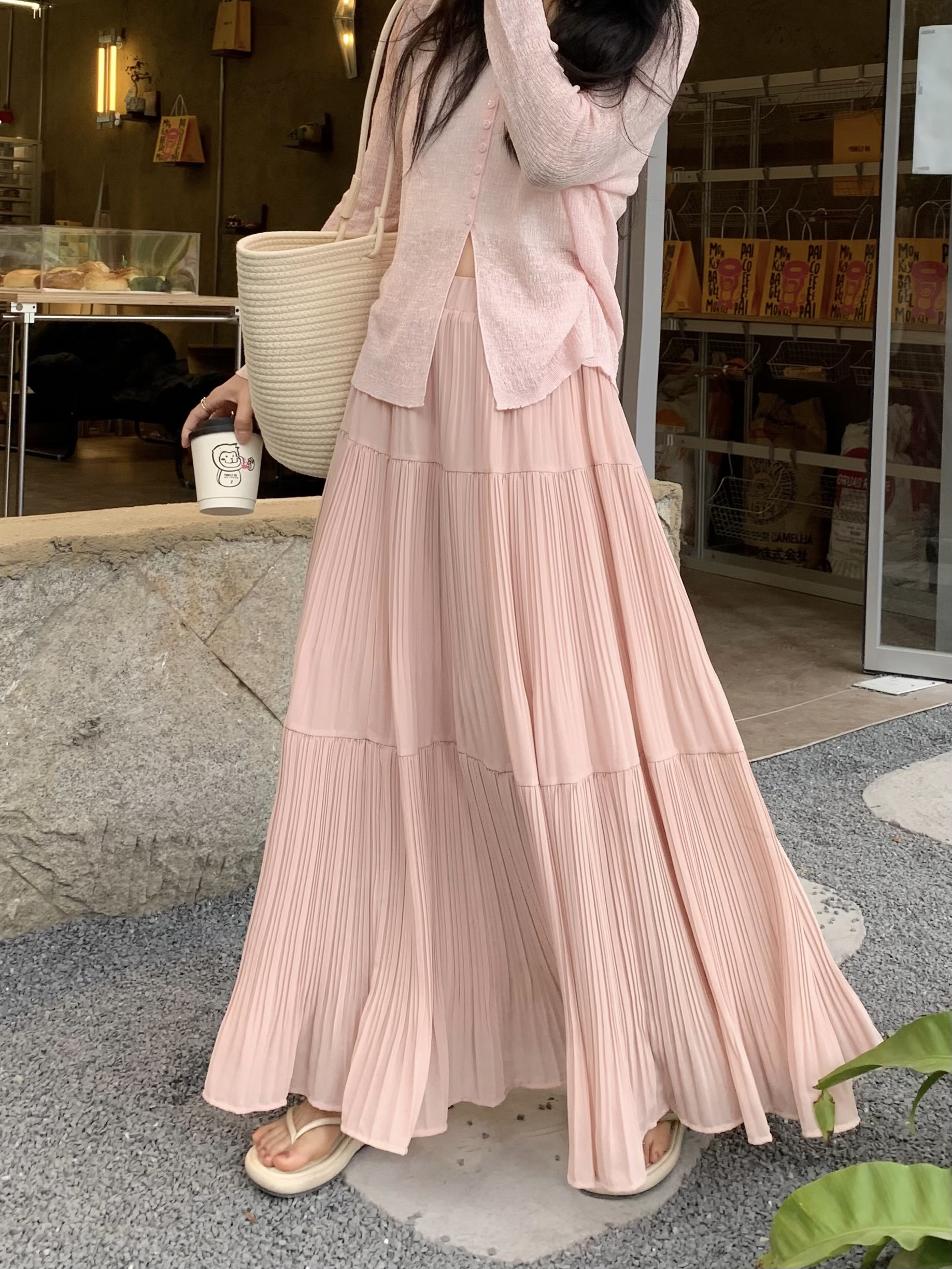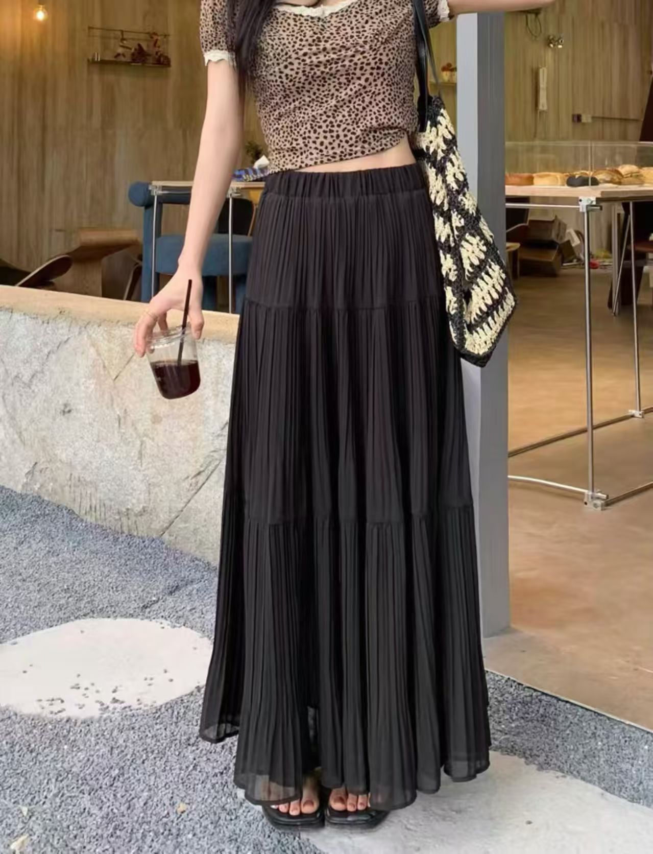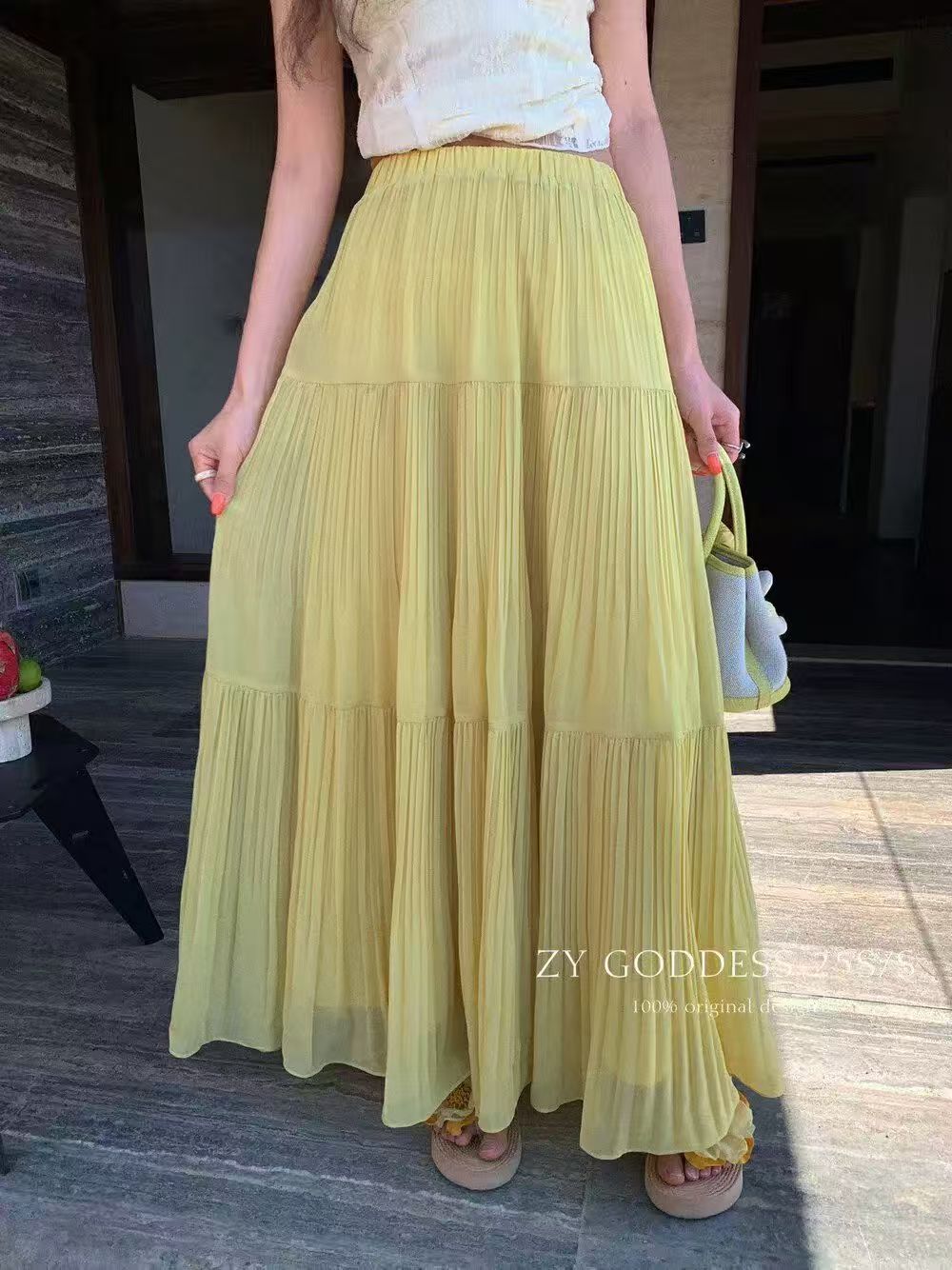 MY16279# 压褶设计感半身裙新款松紧腰遮跨显瘦A字长裙大摆伞裙女裝貨源服裝批發