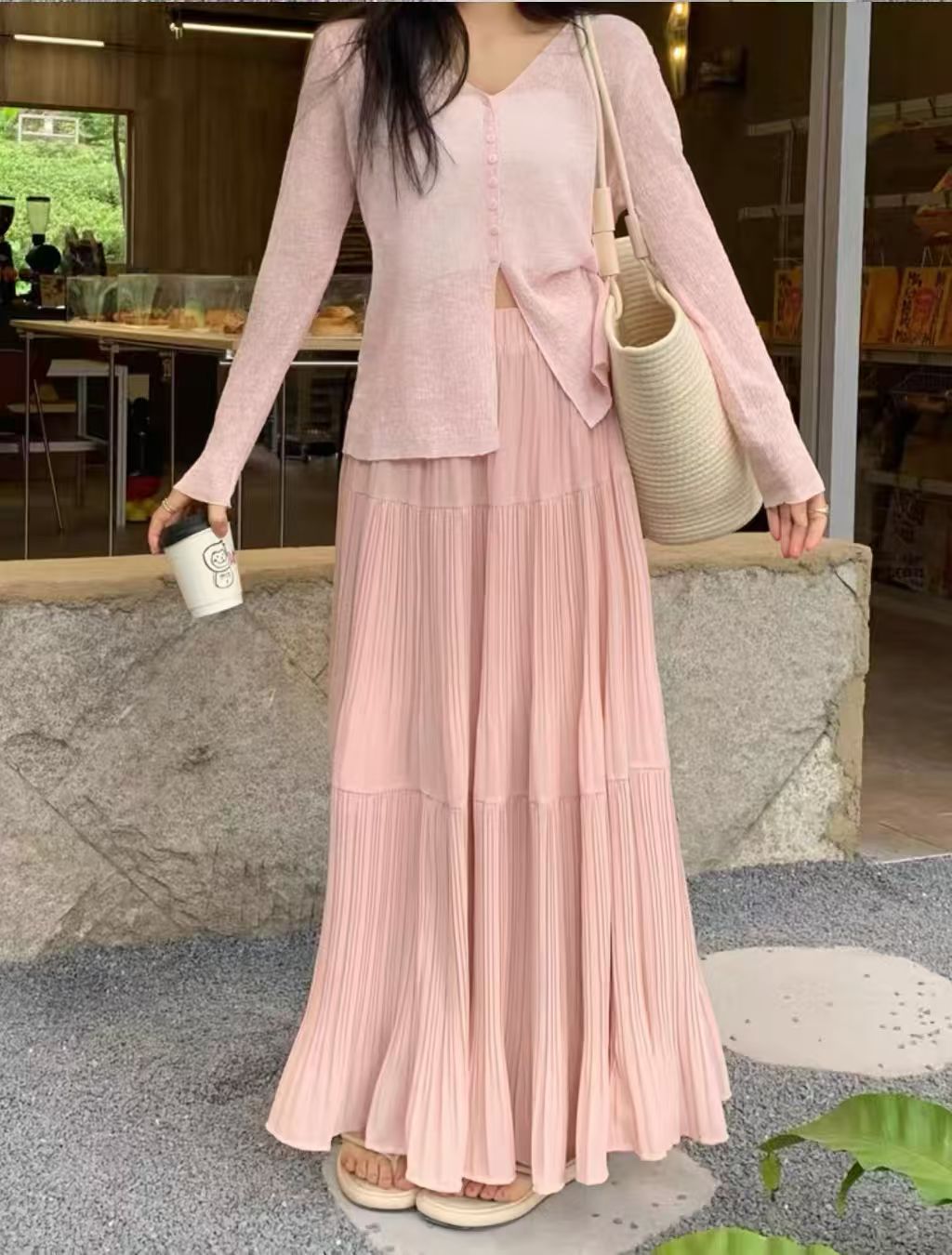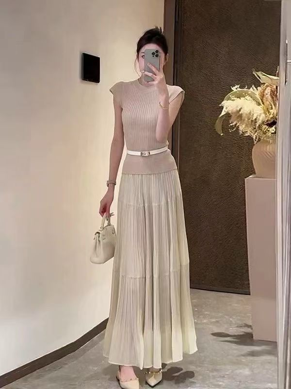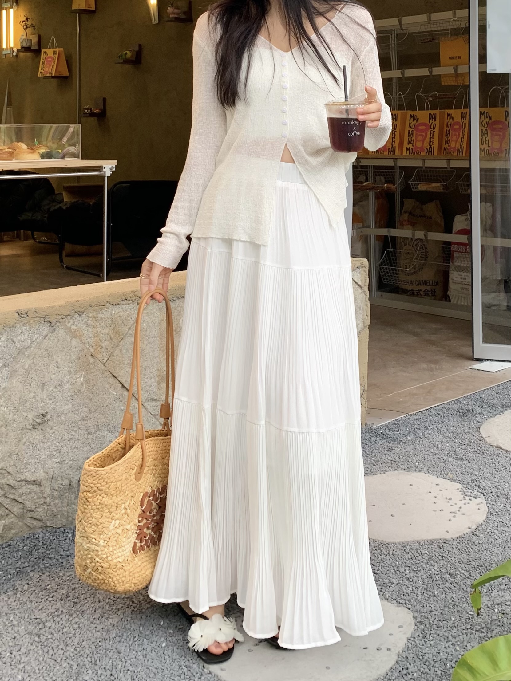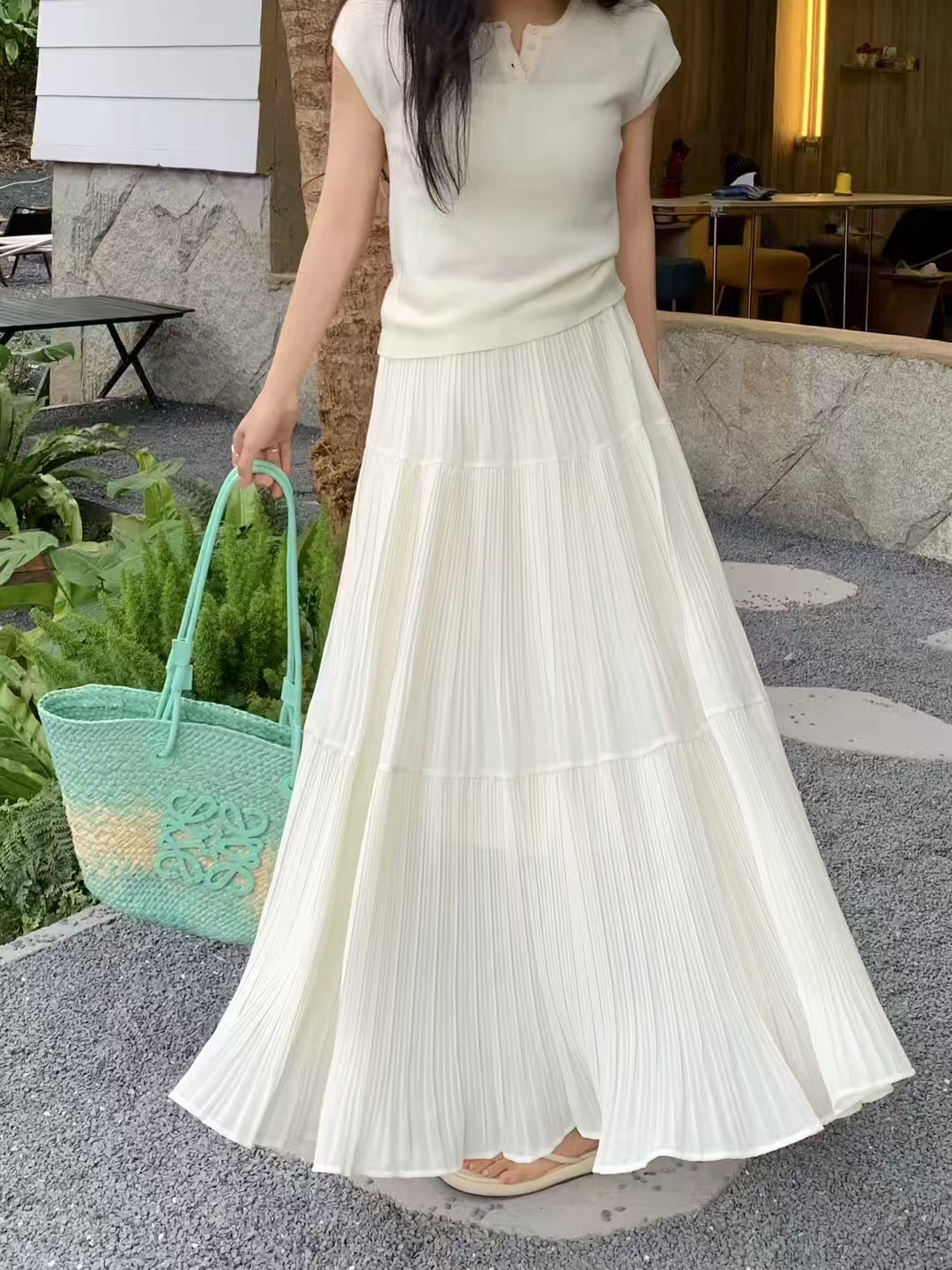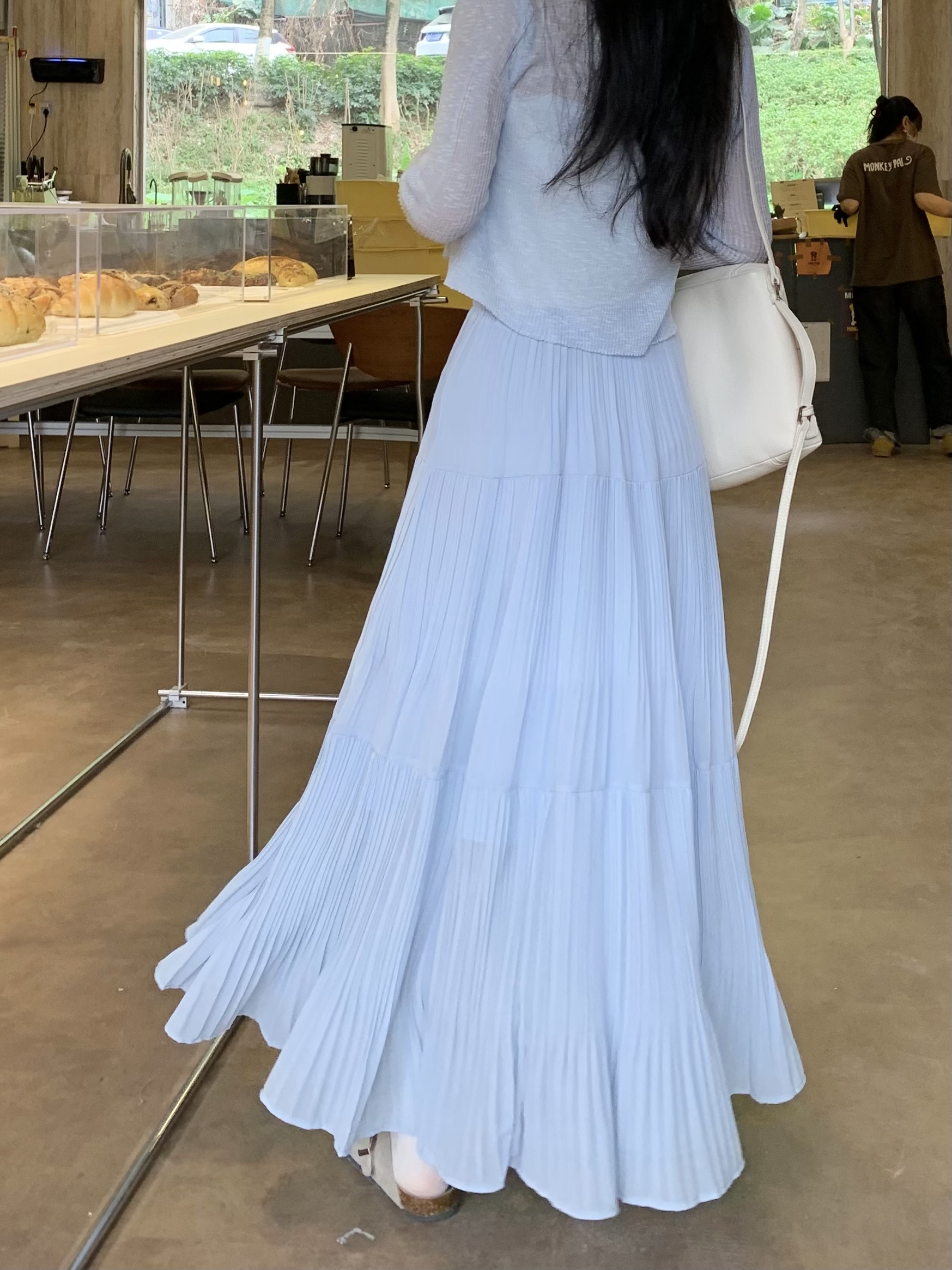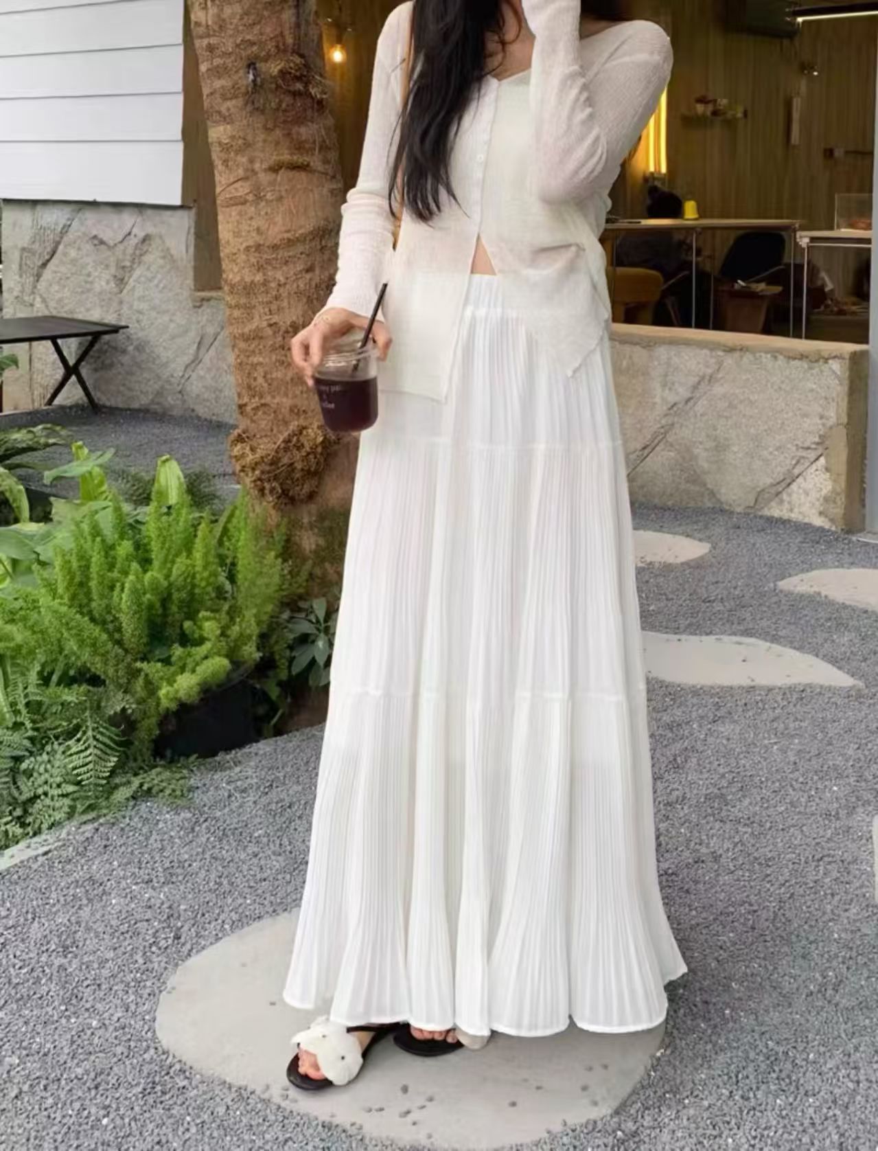 MY16279# 压褶设计感半身裙新款松紧腰遮跨显瘦A字长裙大摆伞裙女裝貨源服裝批發