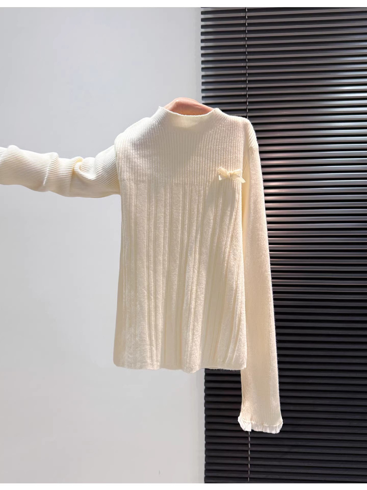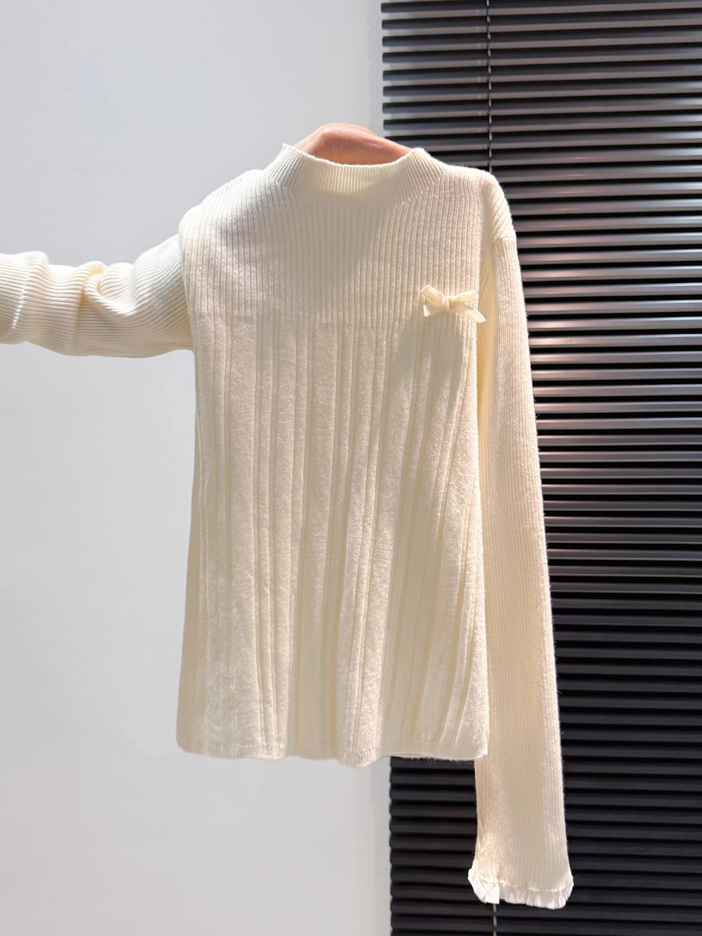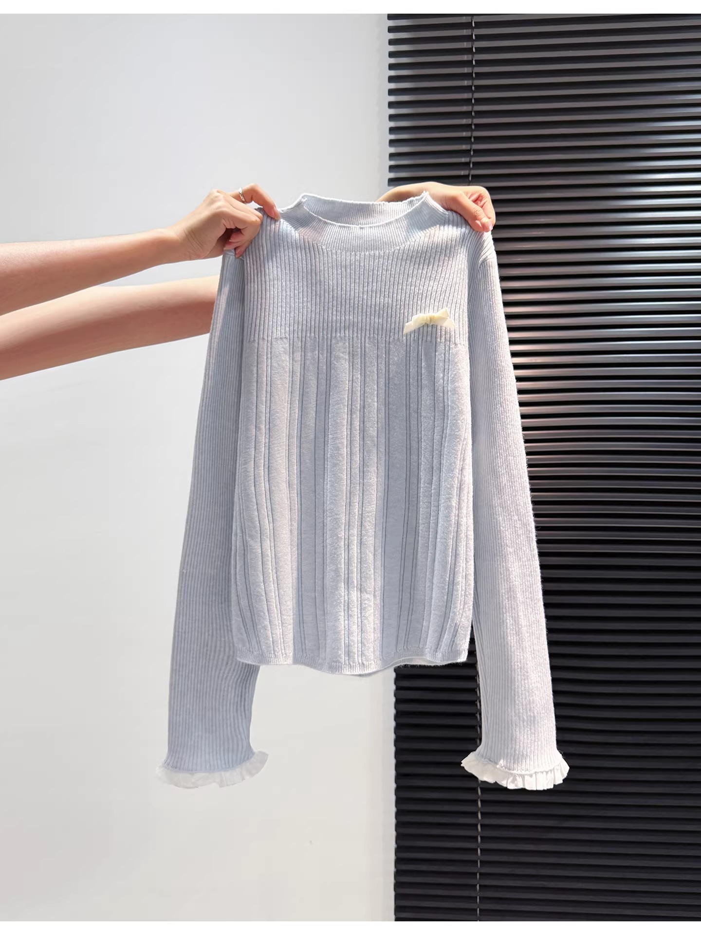 MY16298# 蝴蝶结蕾丝拼接针织衫女内搭半高领打底衫粉色独特漂亮减龄款上衣女裝貨源服裝批發