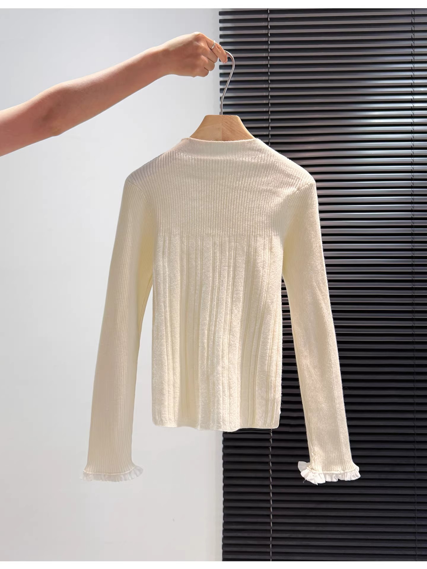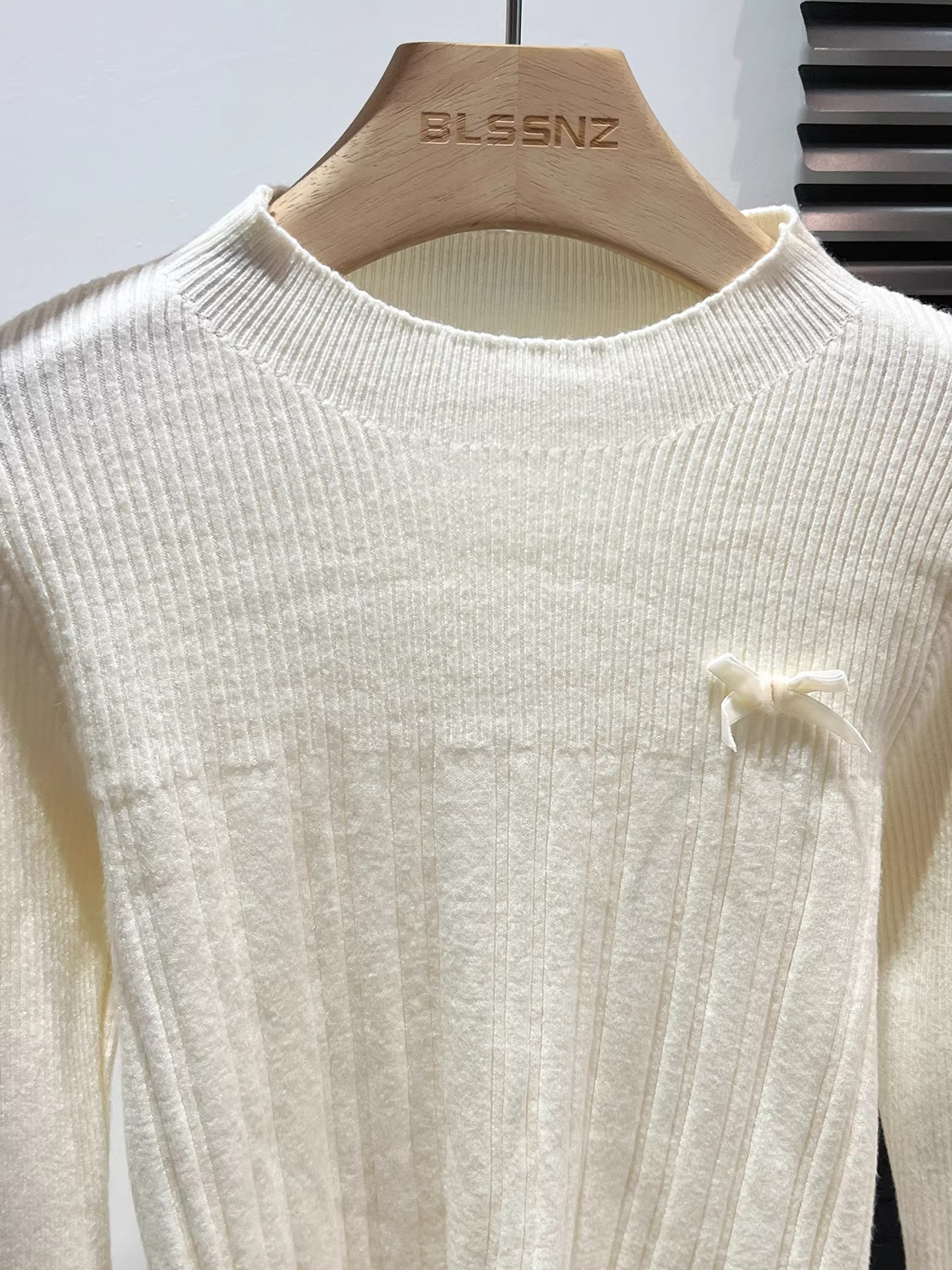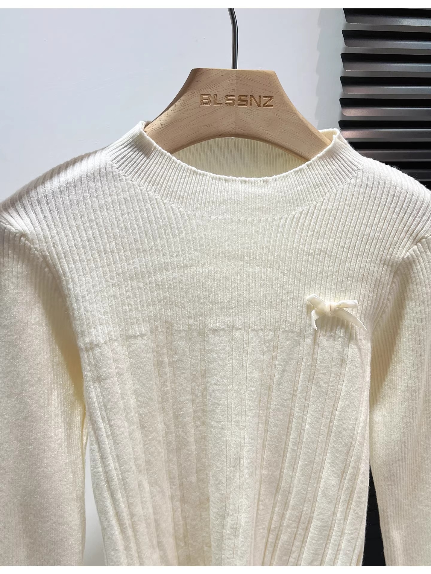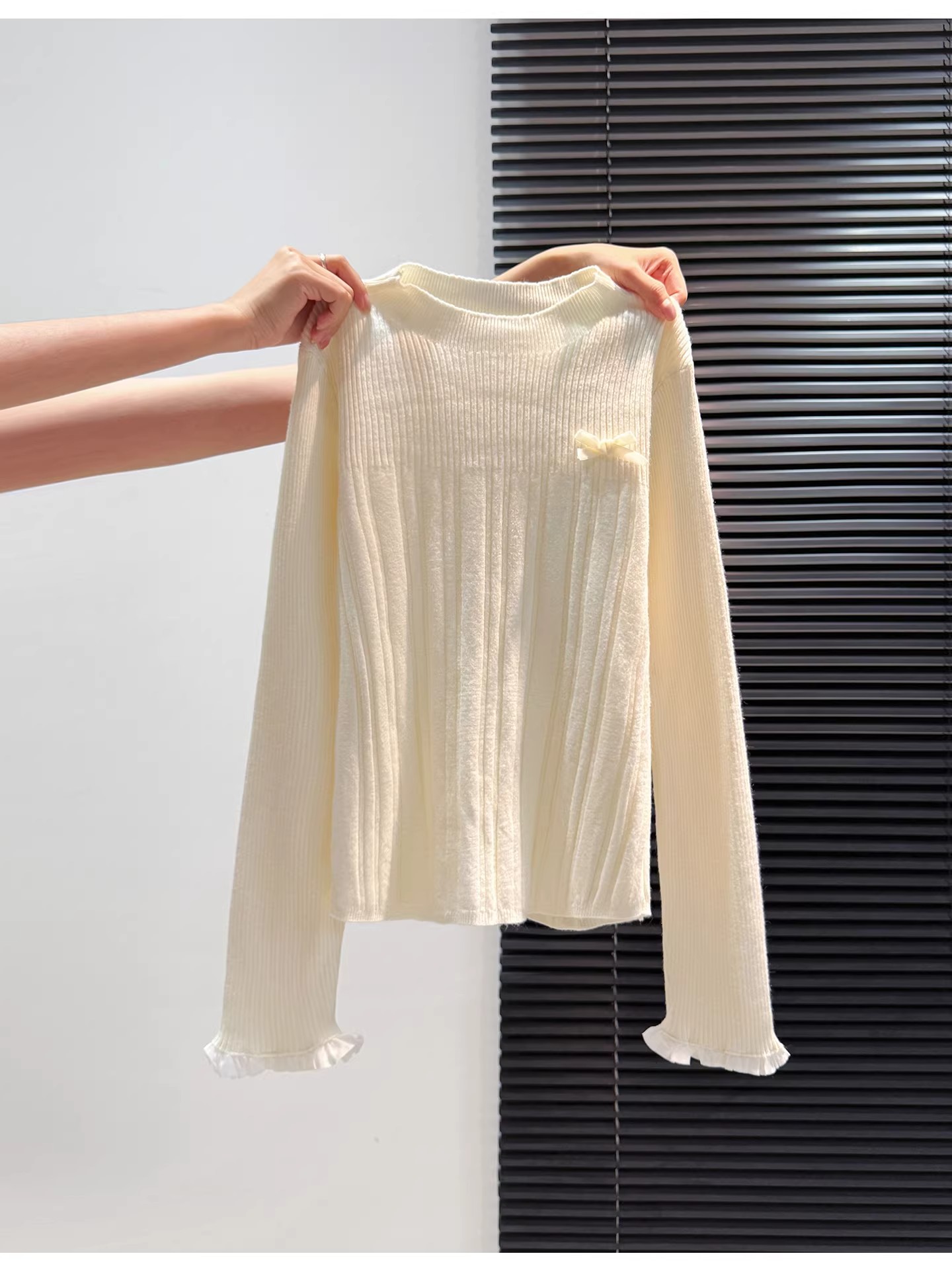 MY16298# 蝴蝶结蕾丝拼接针织衫女内搭半高领打底衫粉色独特漂亮减龄款上衣女裝貨源服裝批發