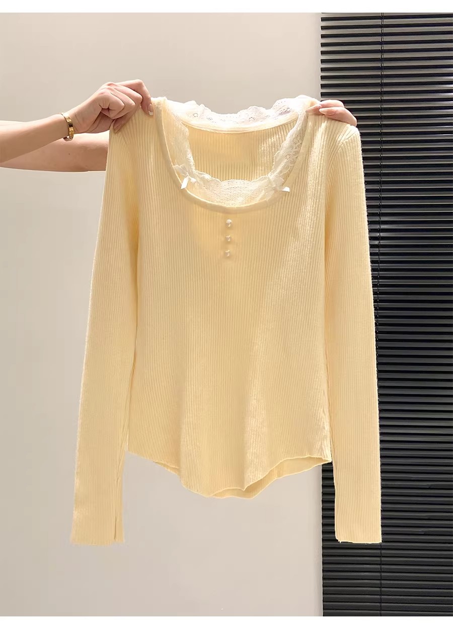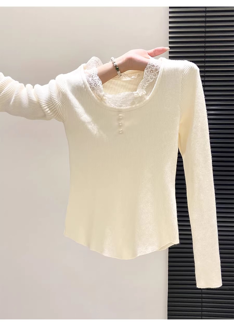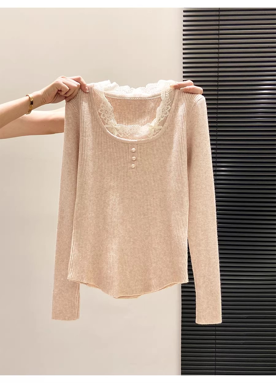 MY16299# 法式蕾丝花边针织毛衣新款修身时尚内搭打底衫漂亮上衣女裝貨源服裝批發