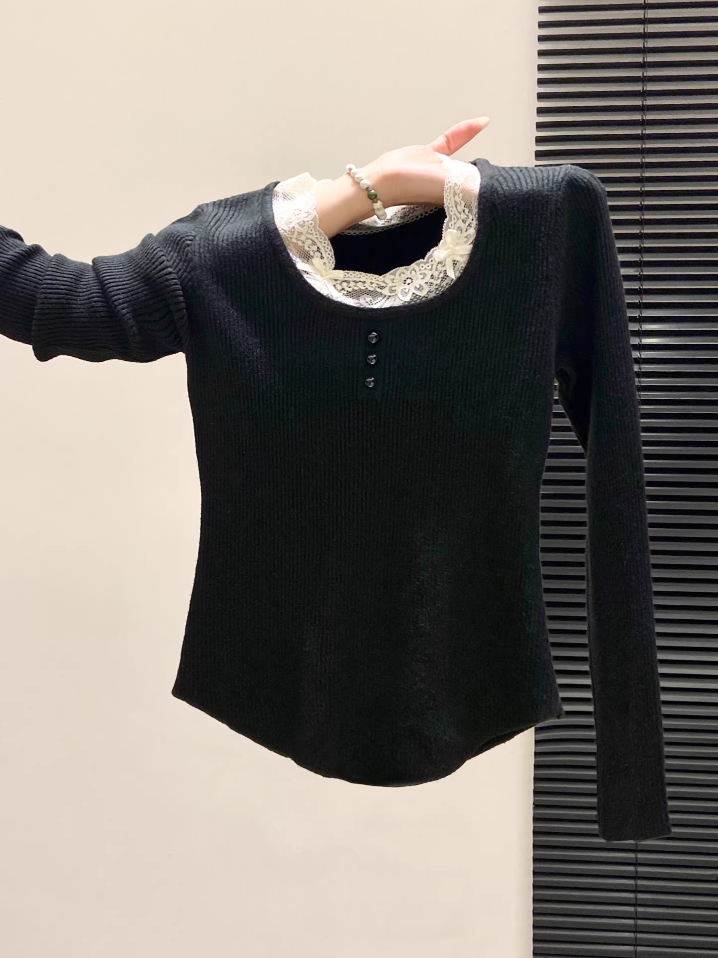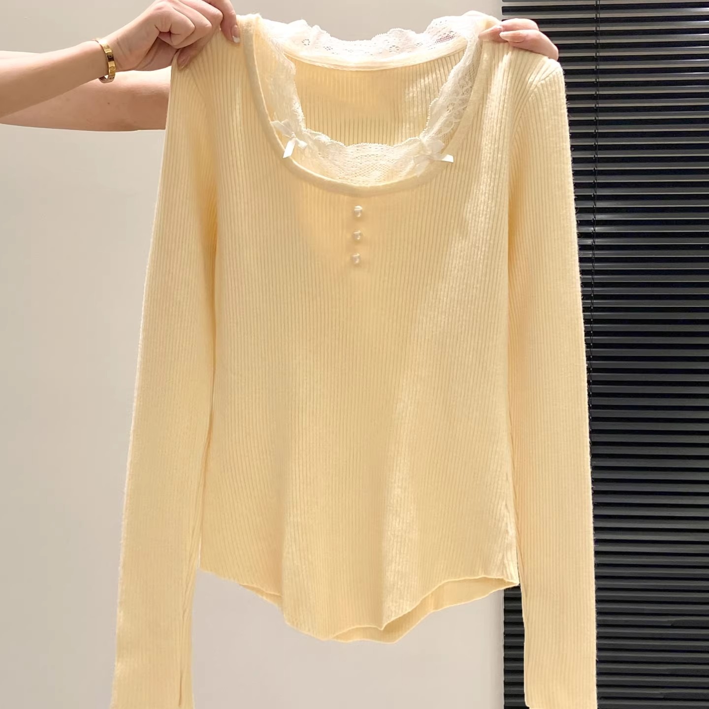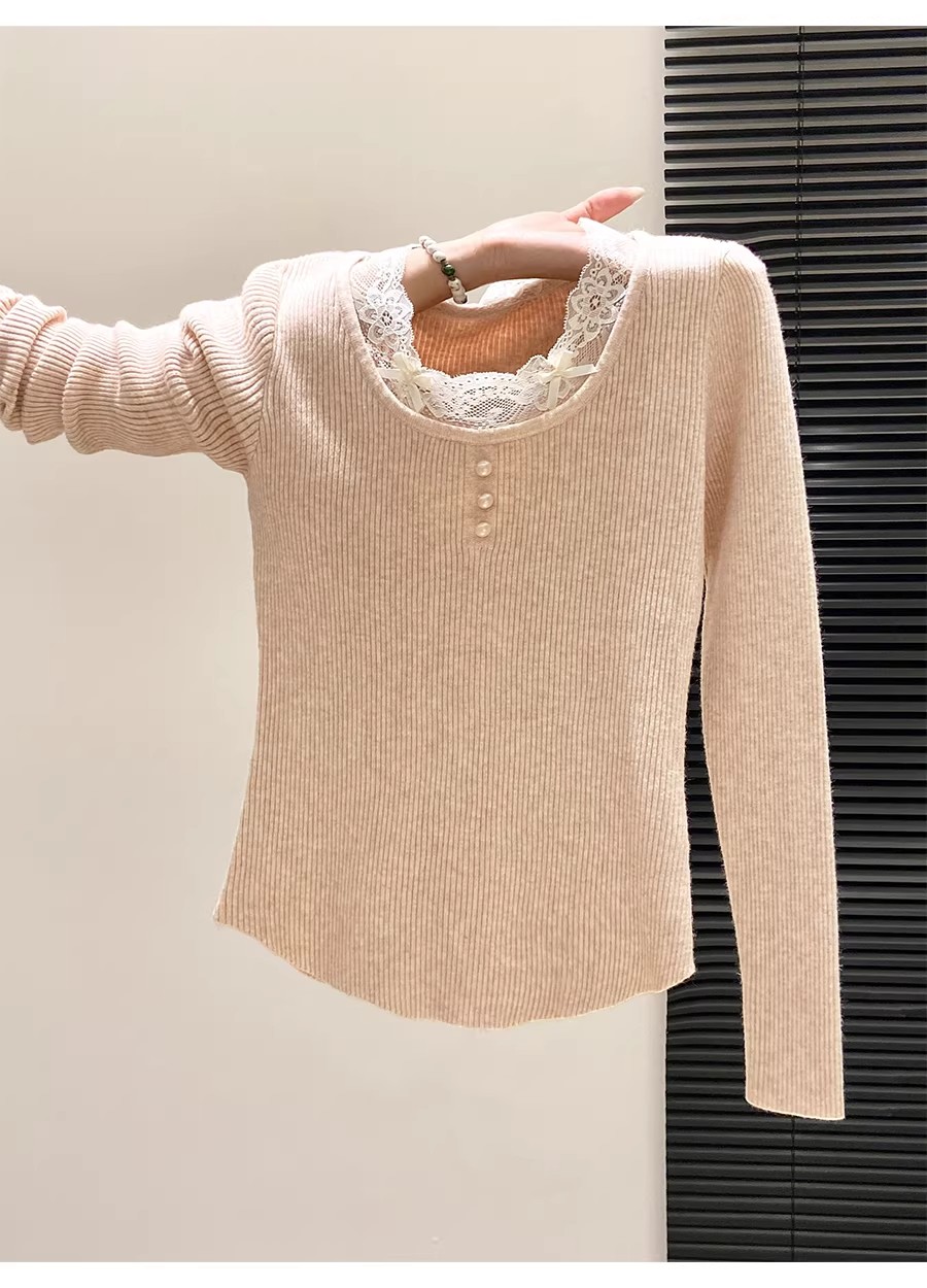 MY16299# 法式蕾丝花边针织毛衣新款修身时尚内搭打底衫漂亮上衣女裝貨源服裝批發