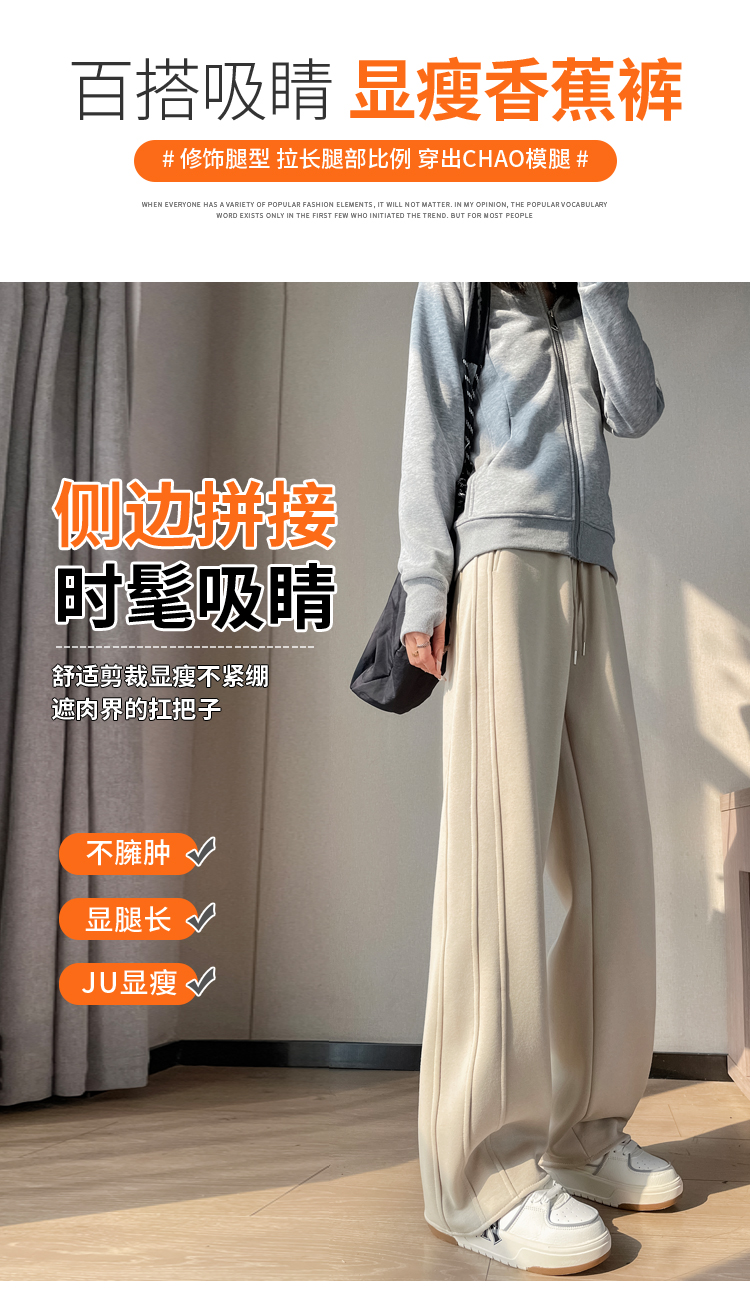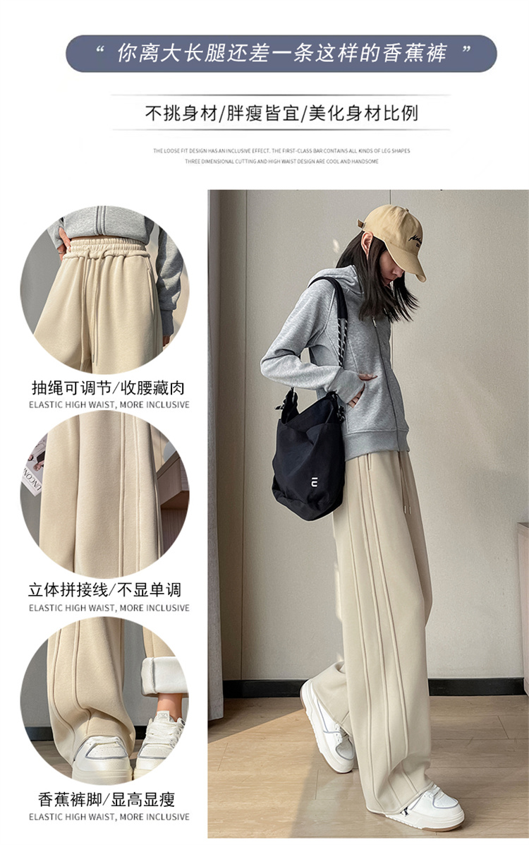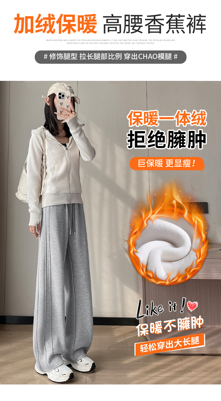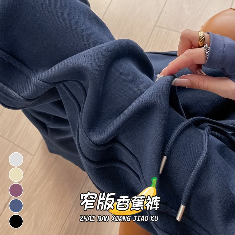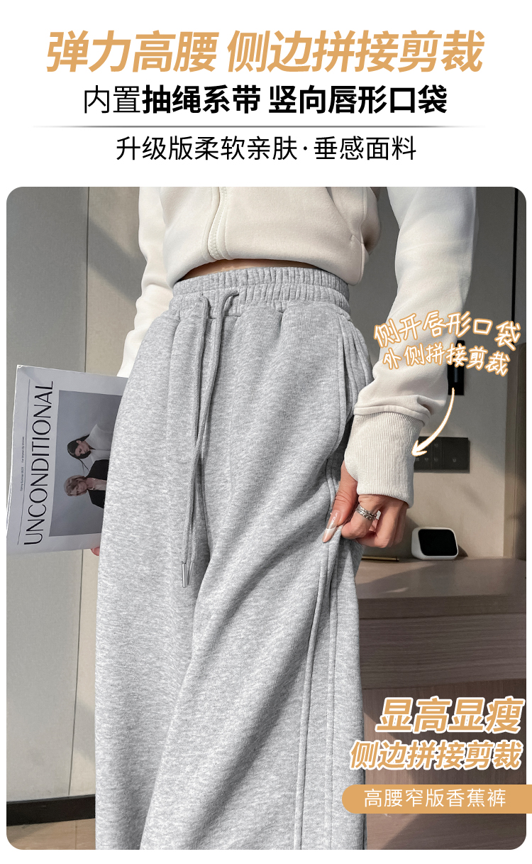 MY16328# 新款加绒直筒卫裤运动裤高腰窄版香蕉裤阔腿裤女女裝貨源服裝批發
