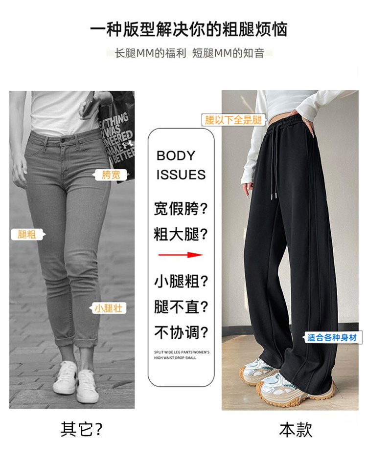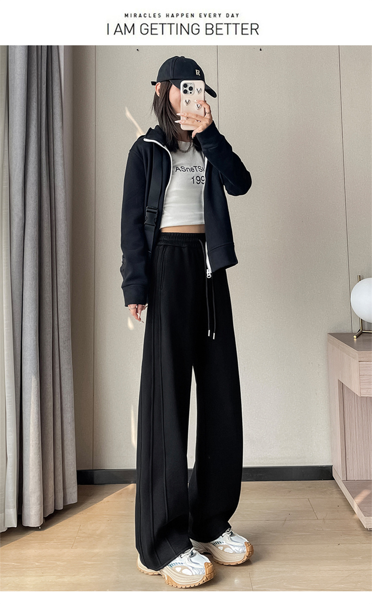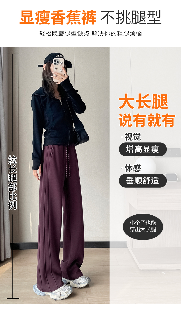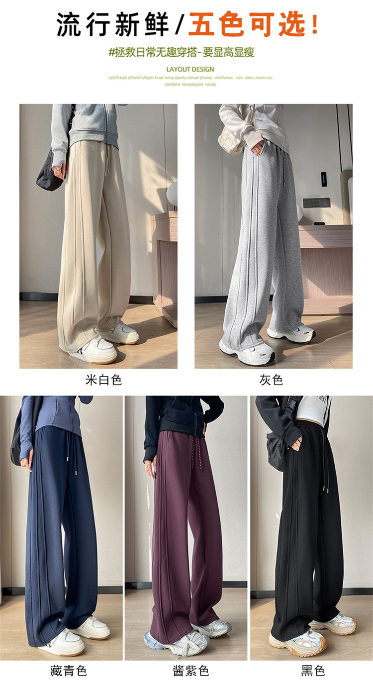 MY16328# 新款加绒直筒卫裤运动裤高腰窄版香蕉裤阔腿裤女女裝貨源服裝批發