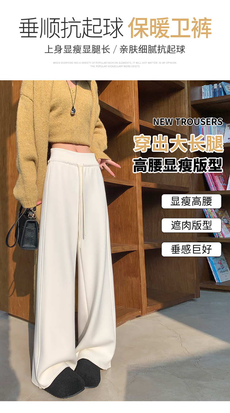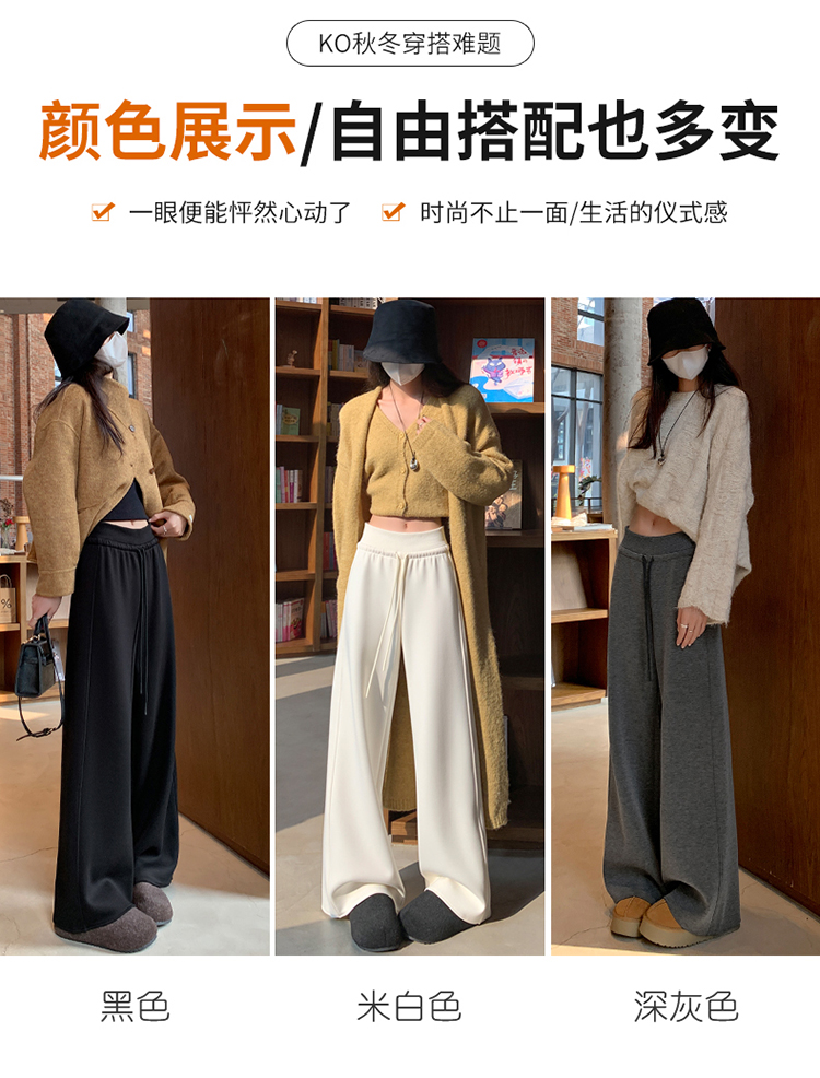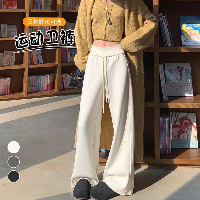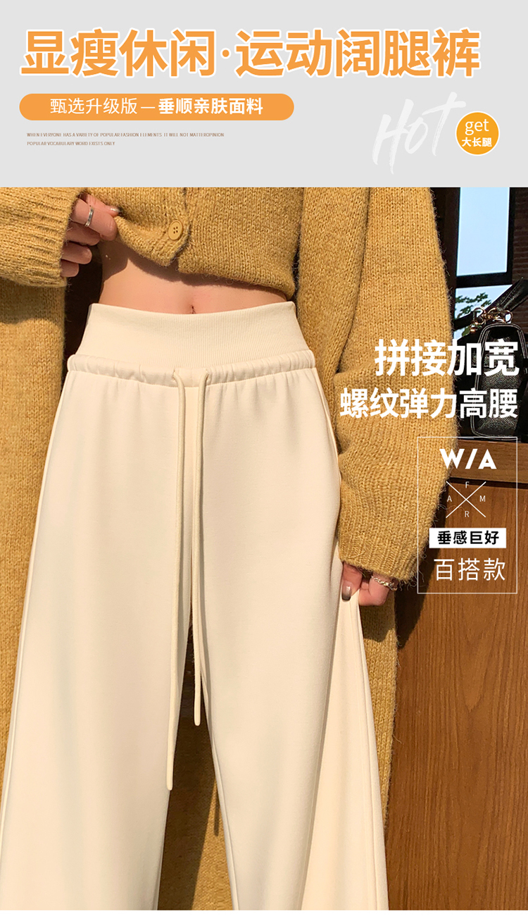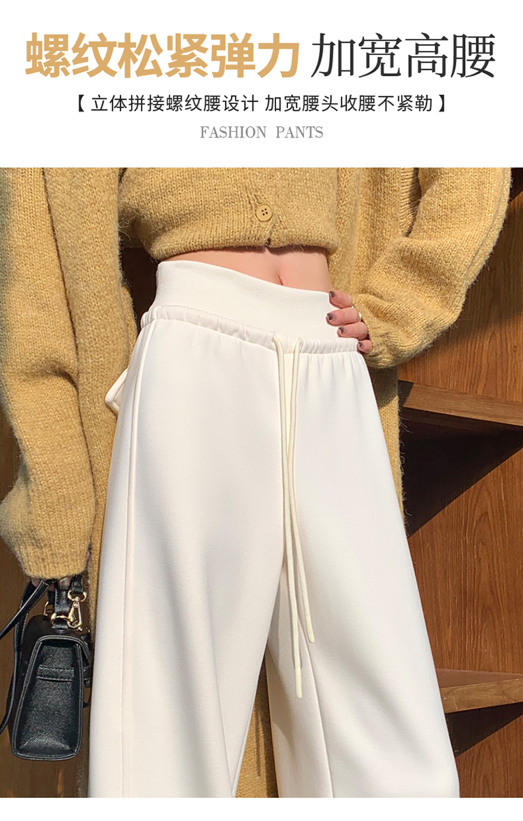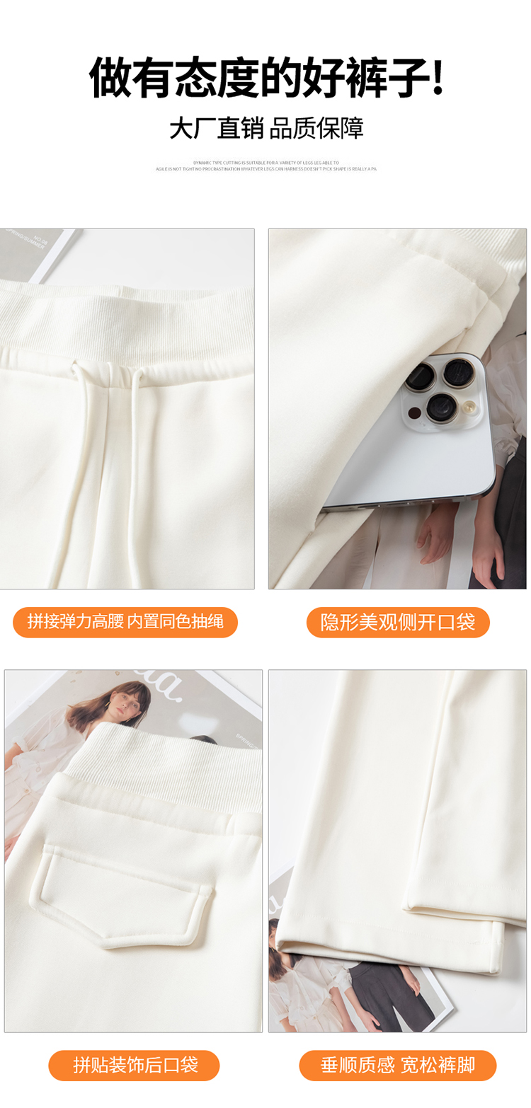 MY16329# 新款直筒糯米裤运动休闲阔腿裤米白色加绒卫裤女女裝貨源服裝批發