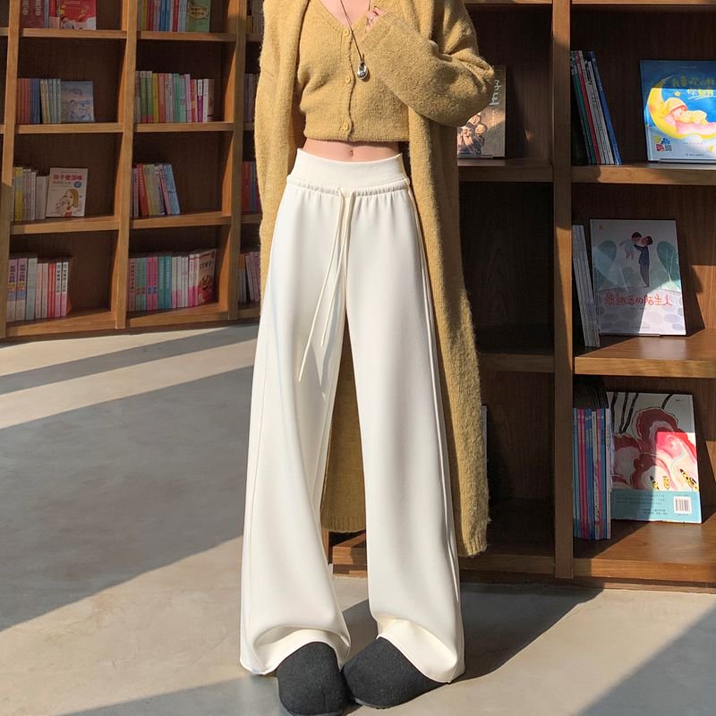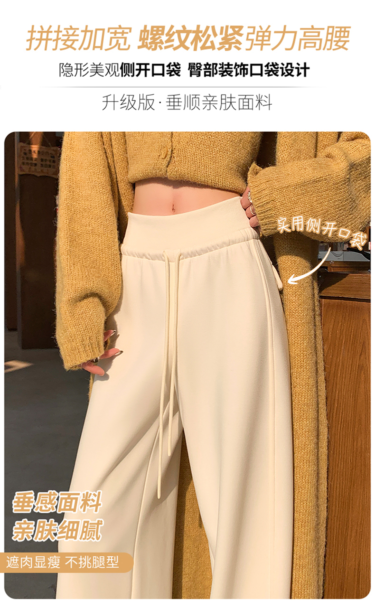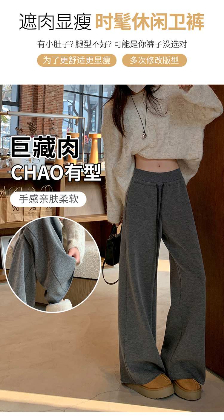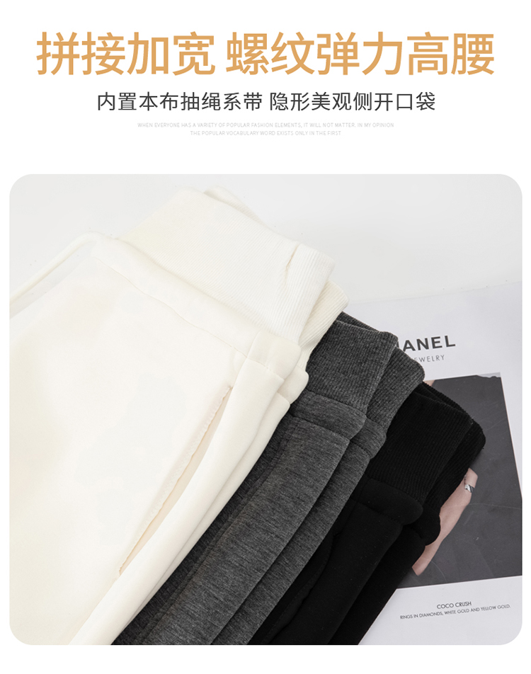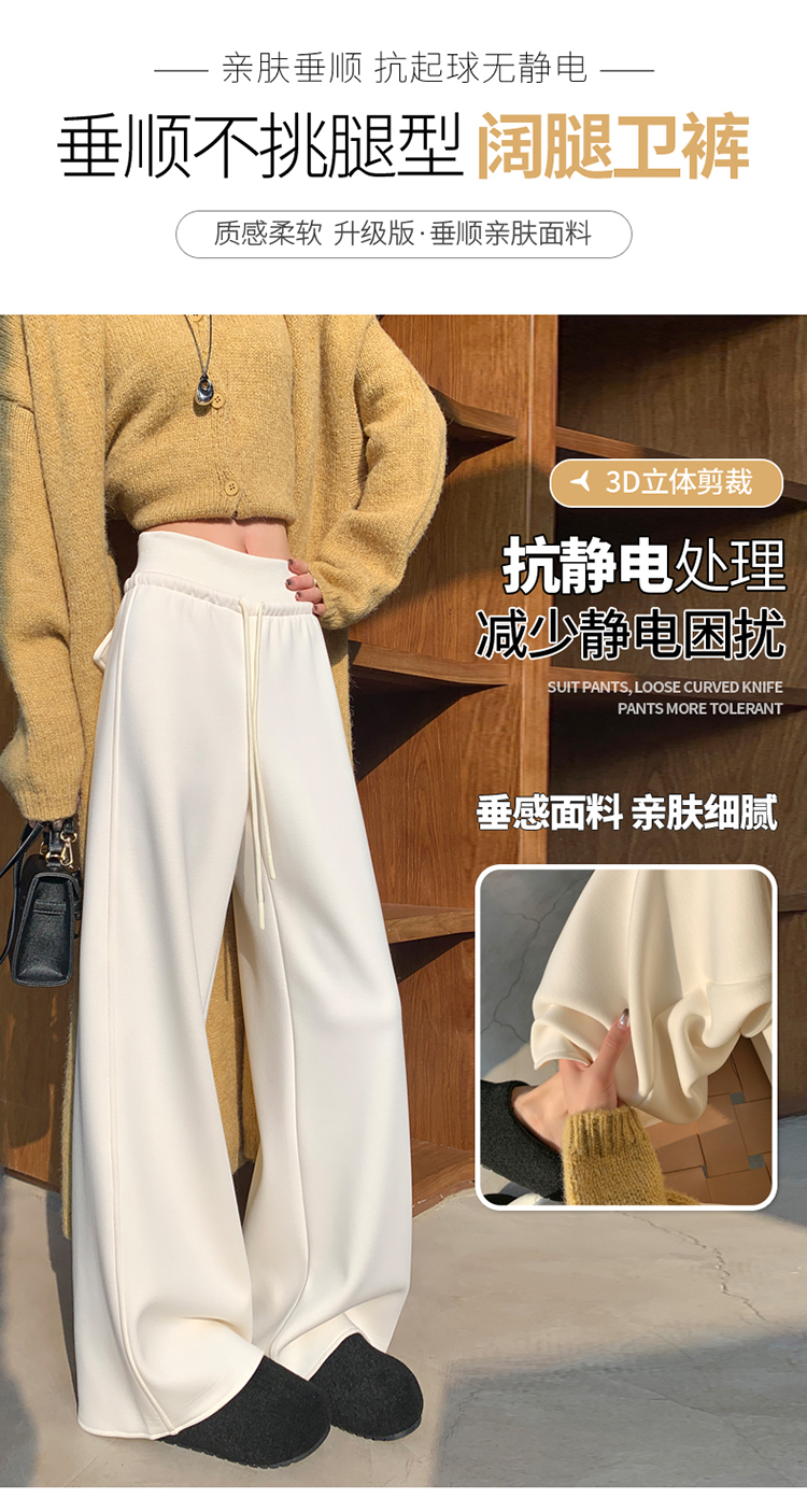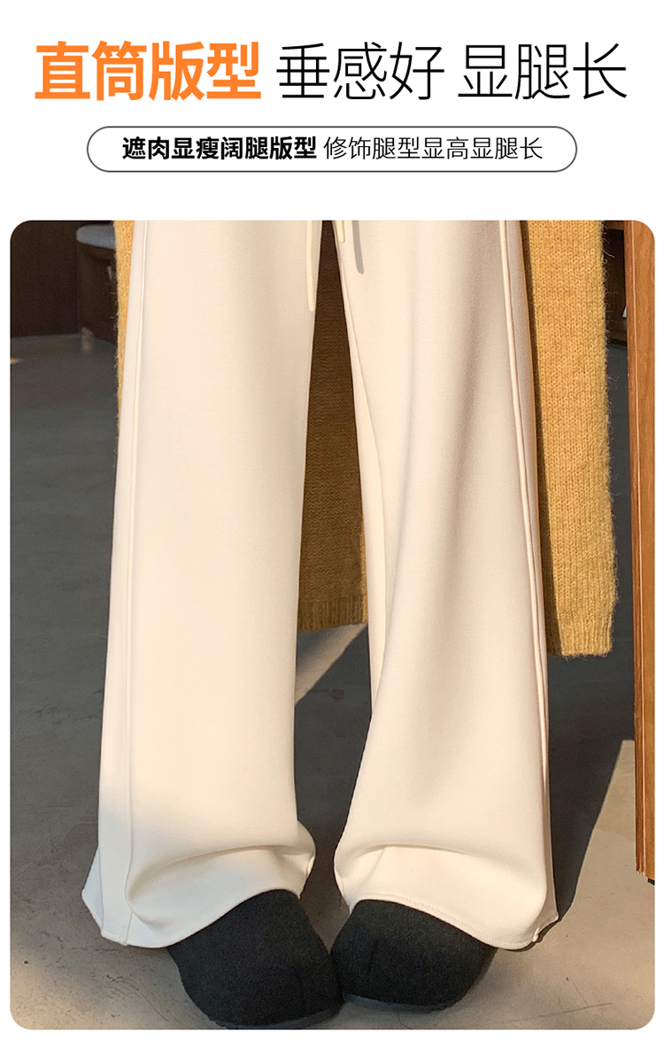 MY16329# 新款直筒糯米裤运动休闲阔腿裤米白色加绒卫裤女女裝貨源服裝批發
