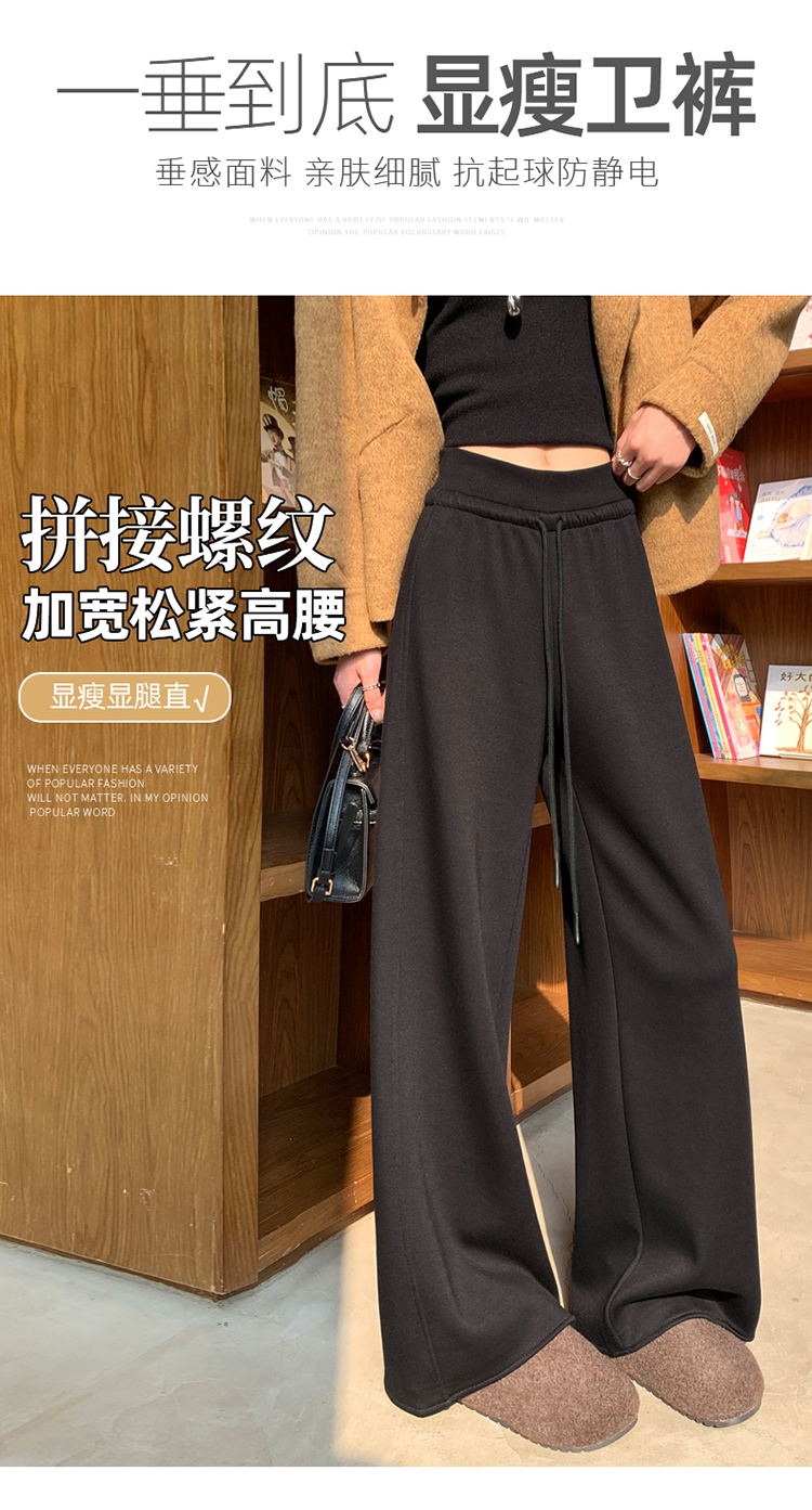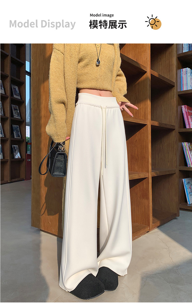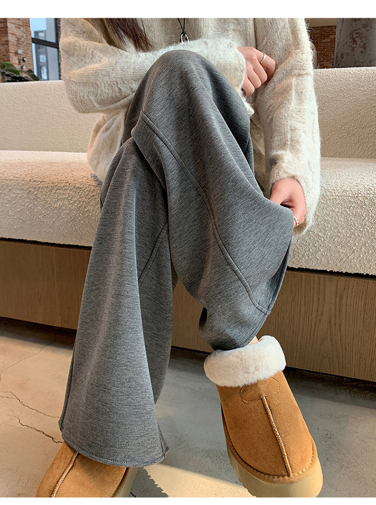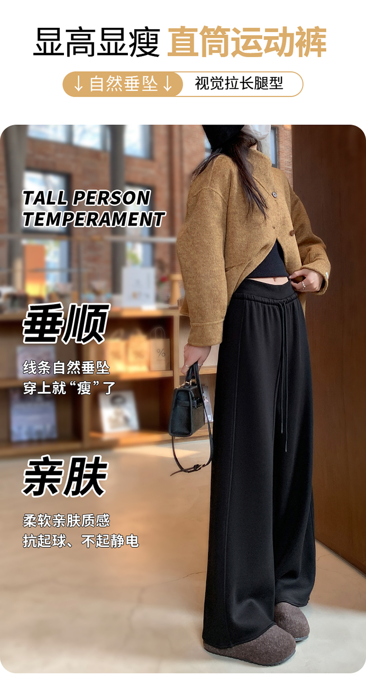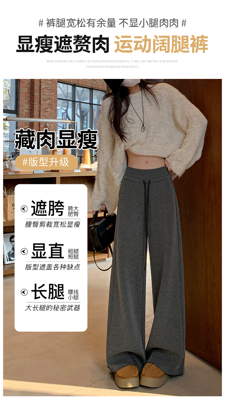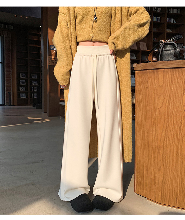 MY16329# 新款直筒糯米裤运动休闲阔腿裤米白色加绒卫裤女女裝貨源服裝批發