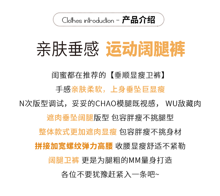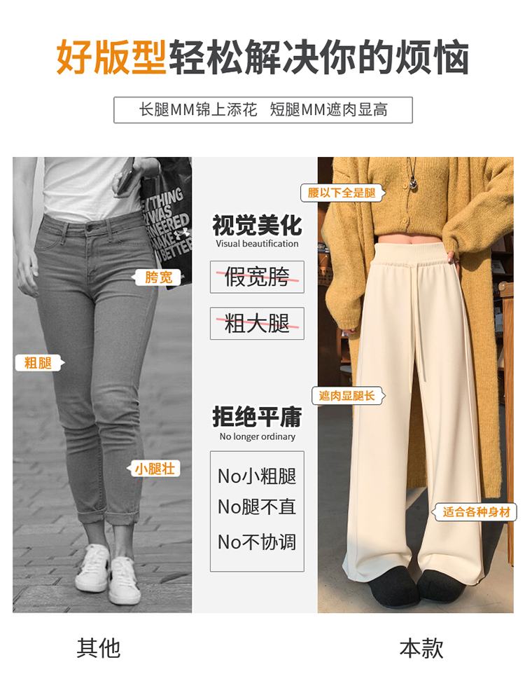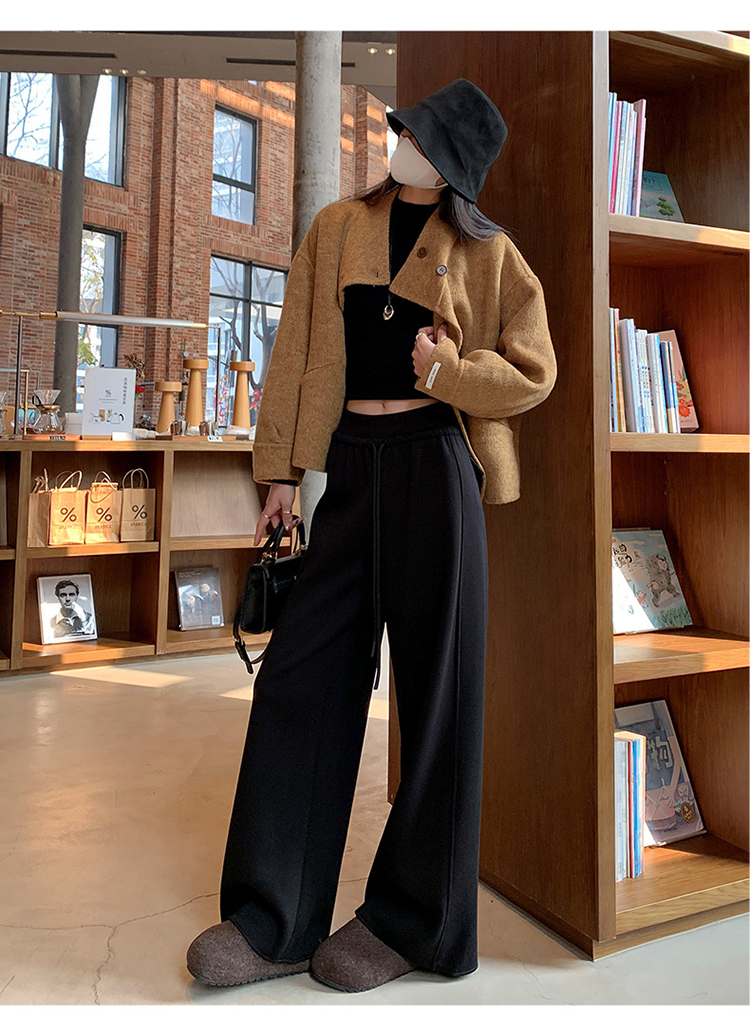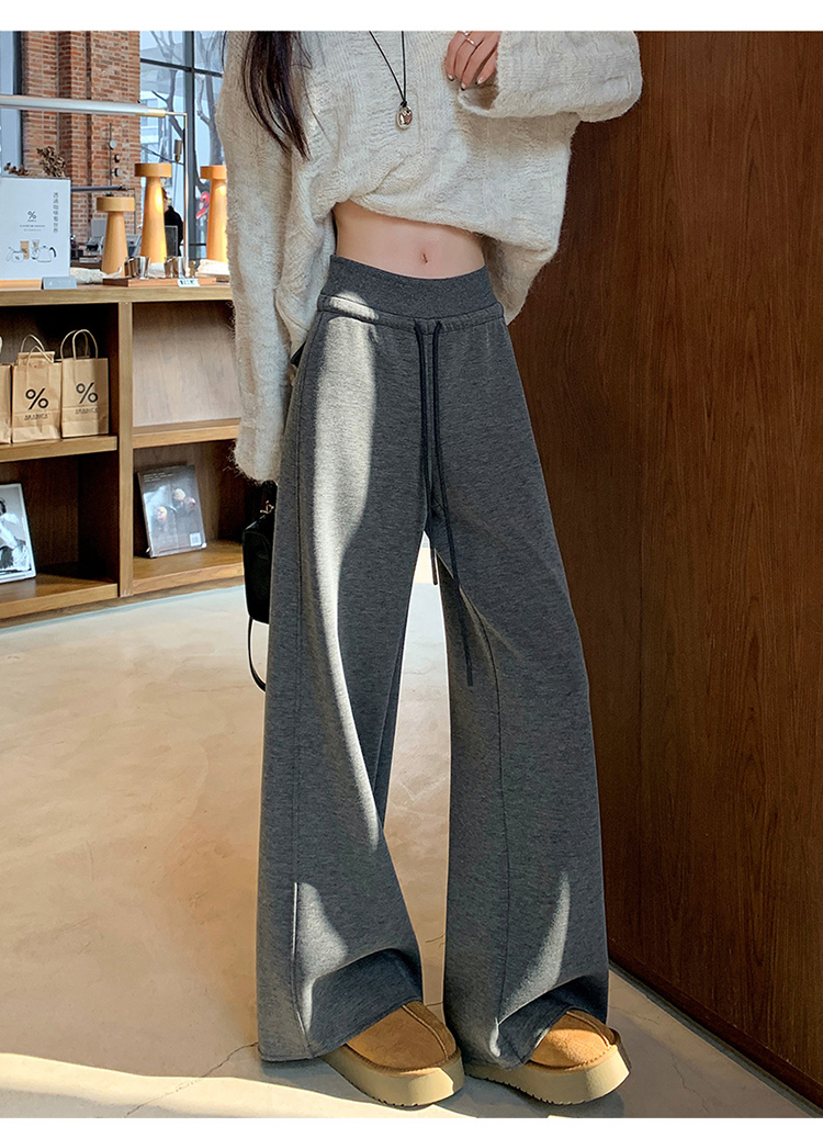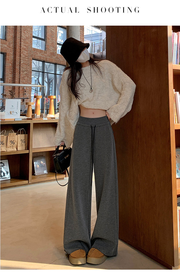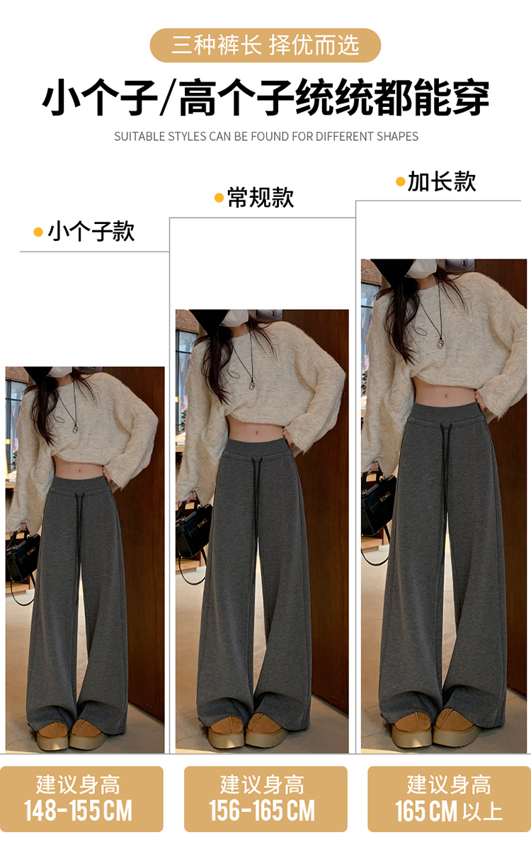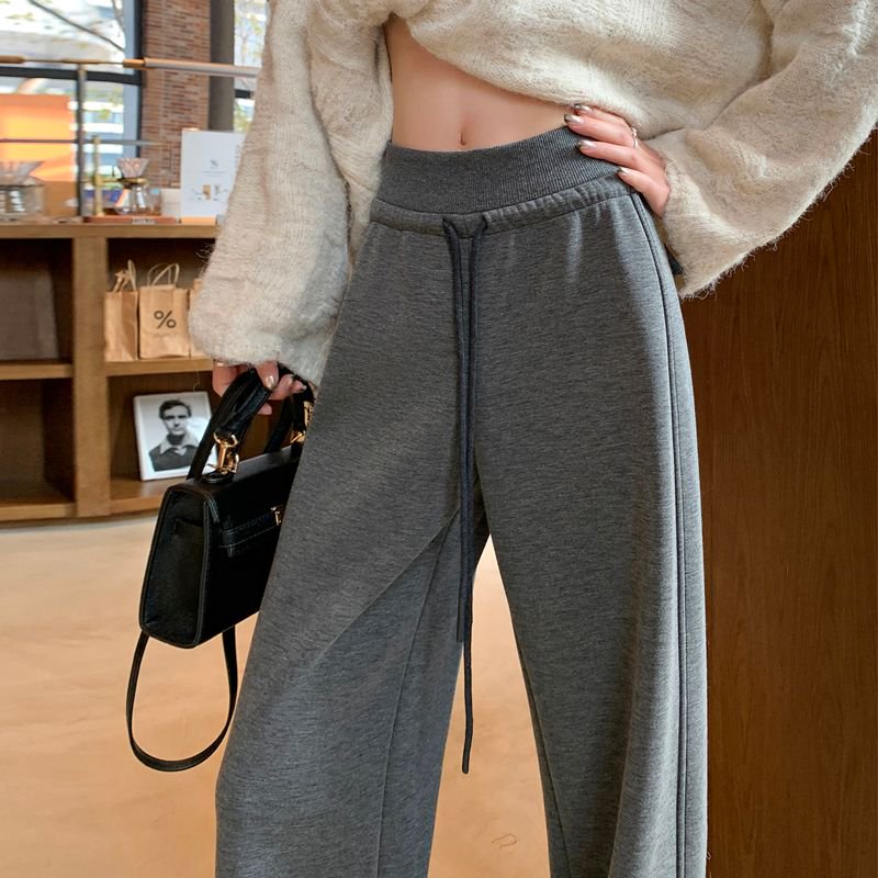 MY16329# 新款直筒糯米裤运动休闲阔腿裤米白色加绒卫裤女女裝貨源服裝批發