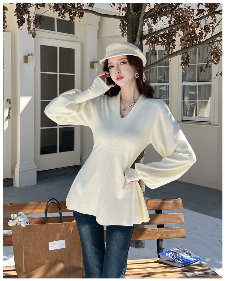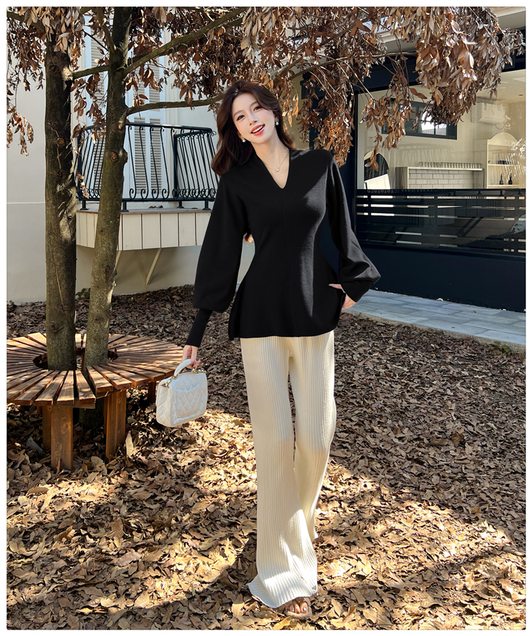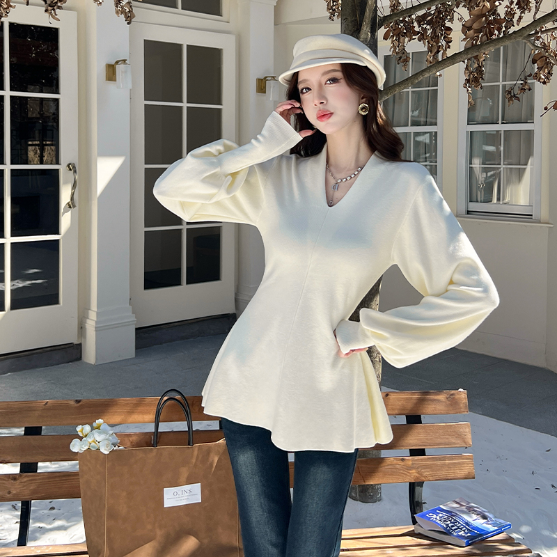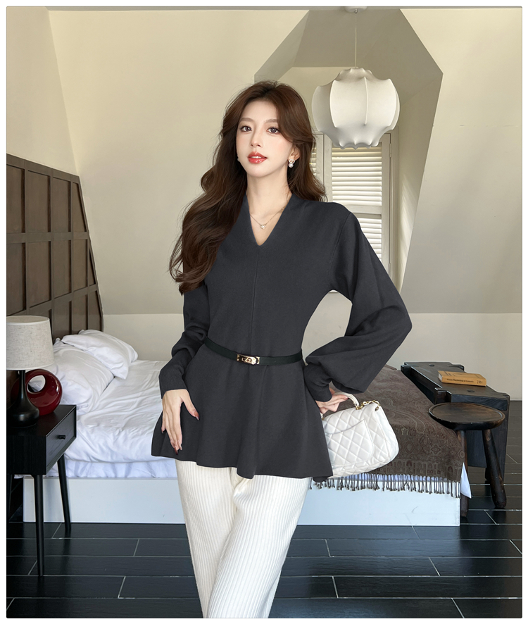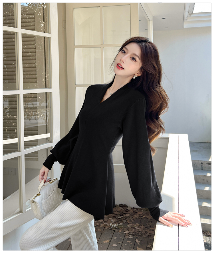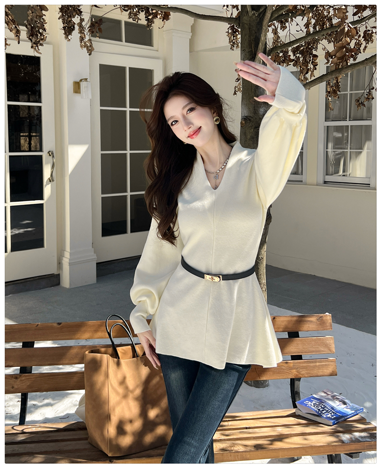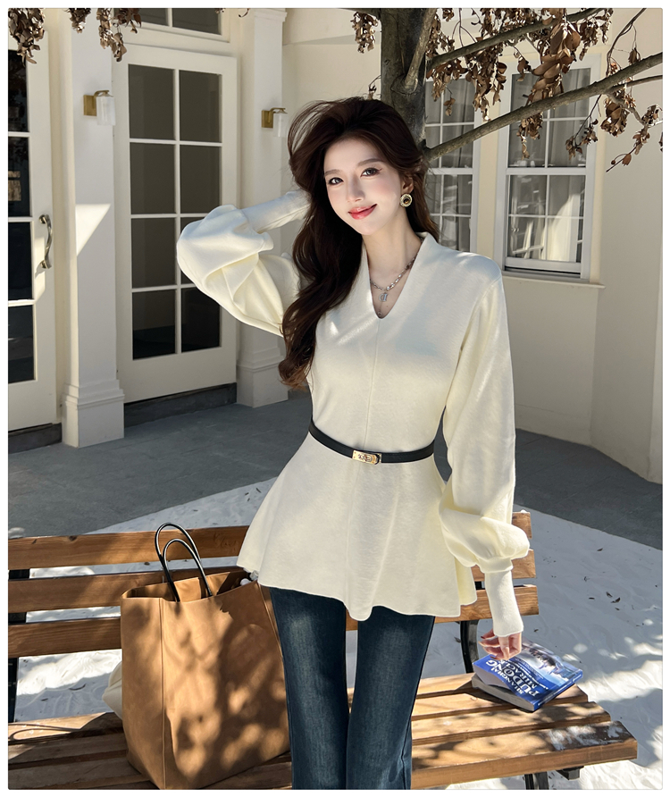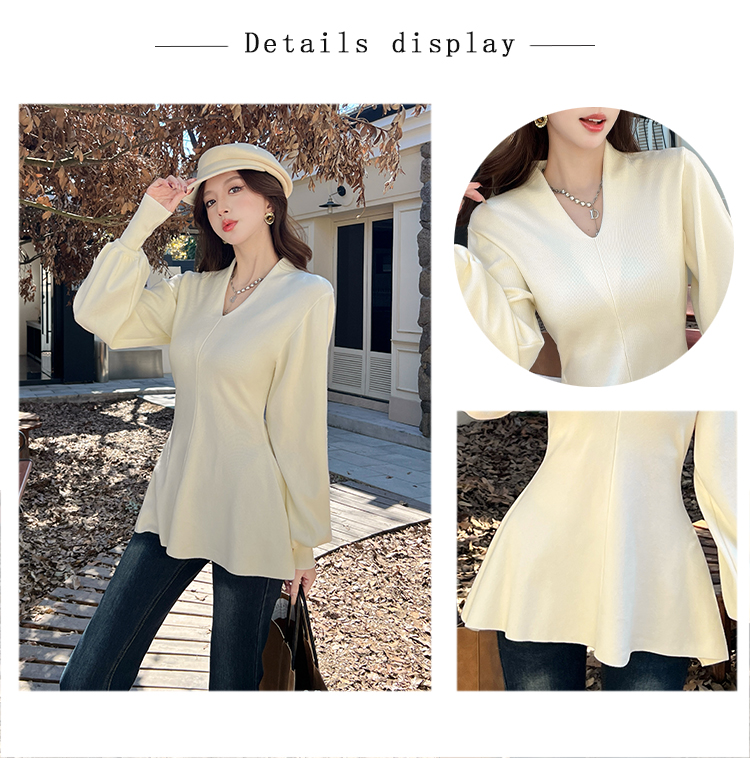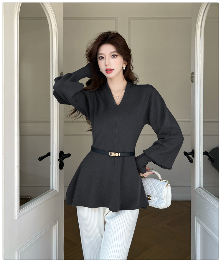 MY16333# 法式温柔气质v领灯笼袖毛衣针织衫女独特绝美紫色慵懒风上衣秋冬女裝貨源服裝批發