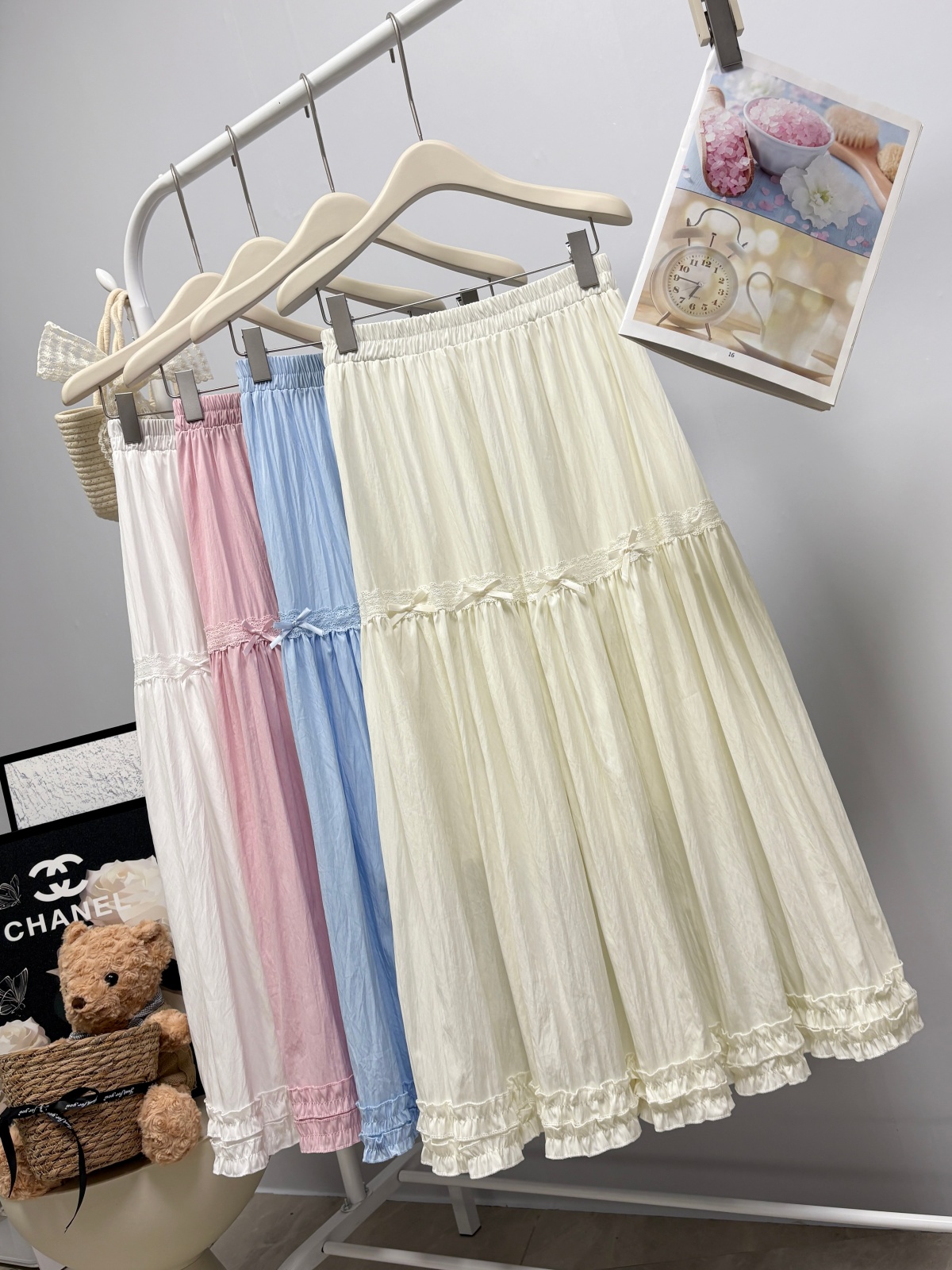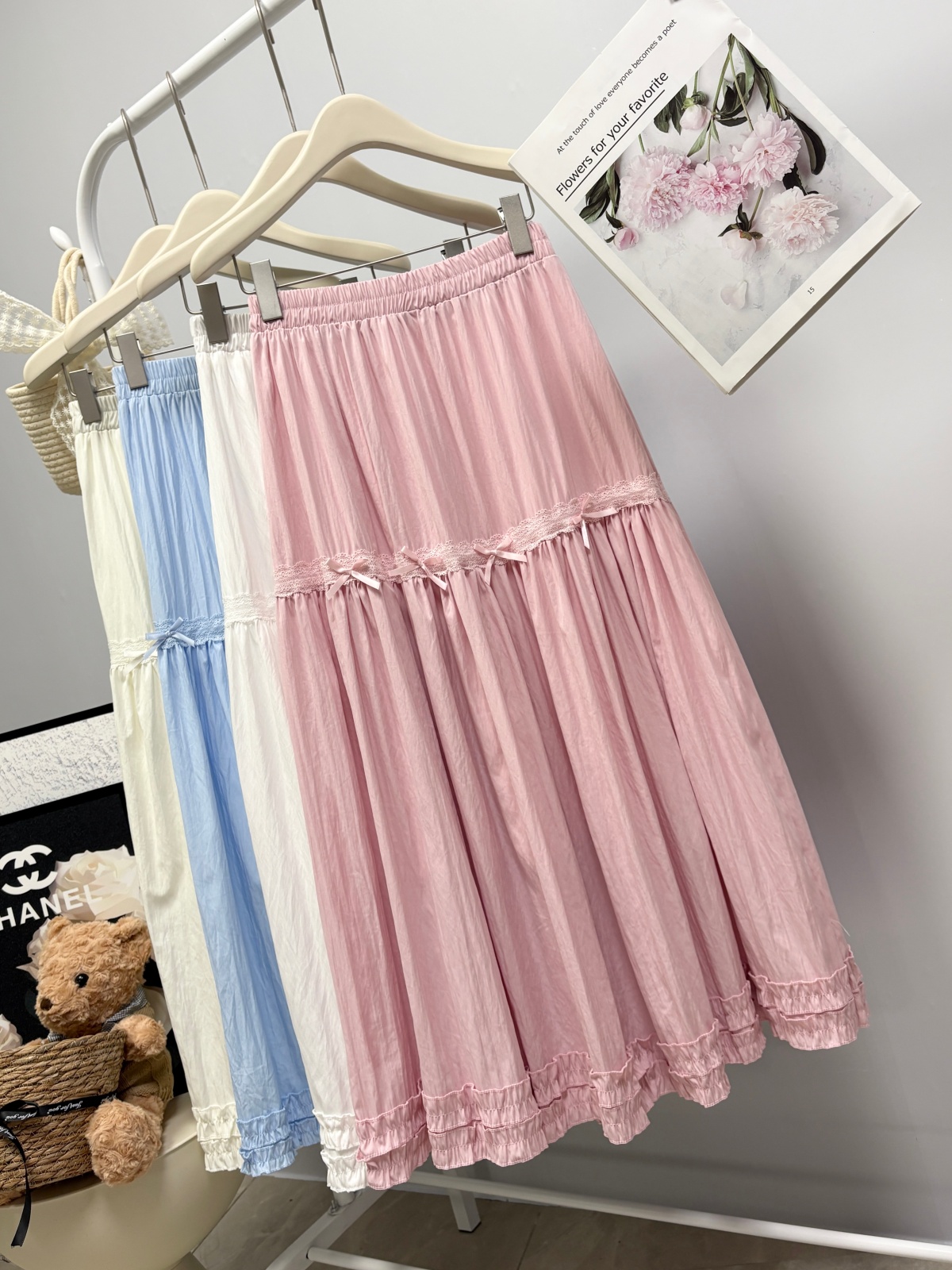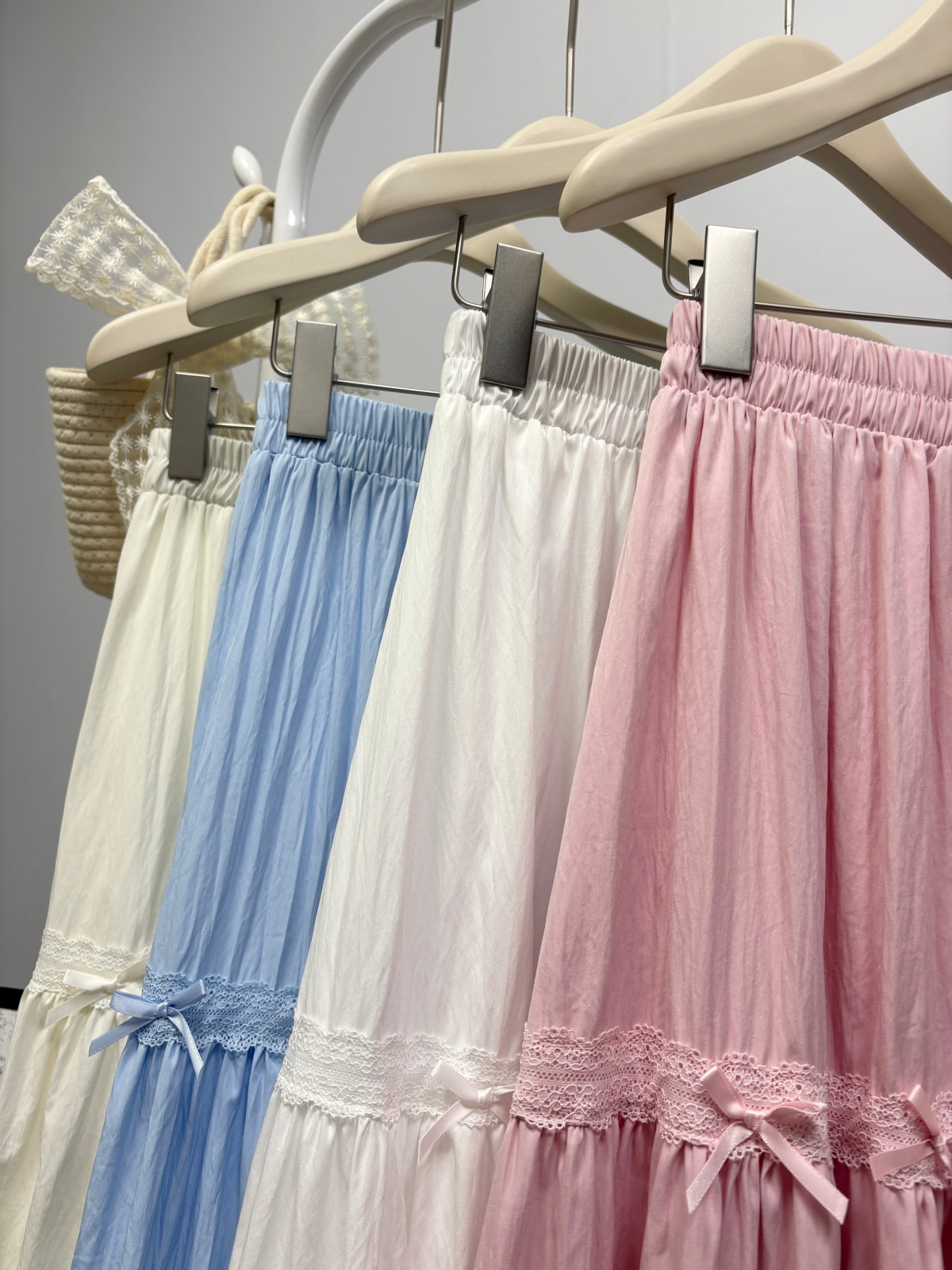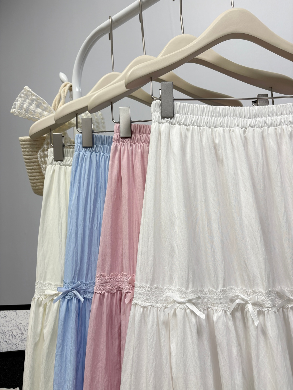 MY16344# 新款韩系蕾丝花边蝴蝶结拼接蛋糕裙甜美木耳裙边半身裙女裝貨源服裝批發