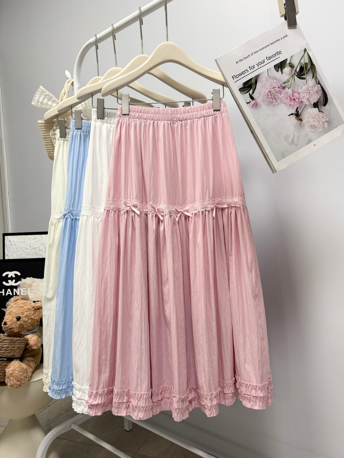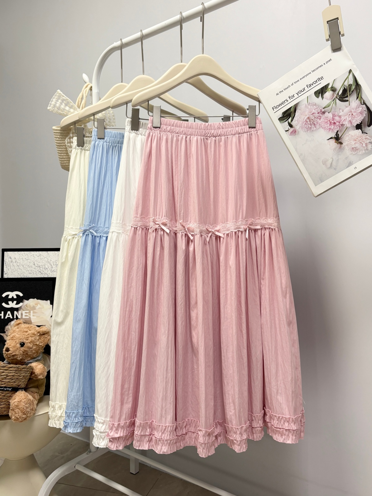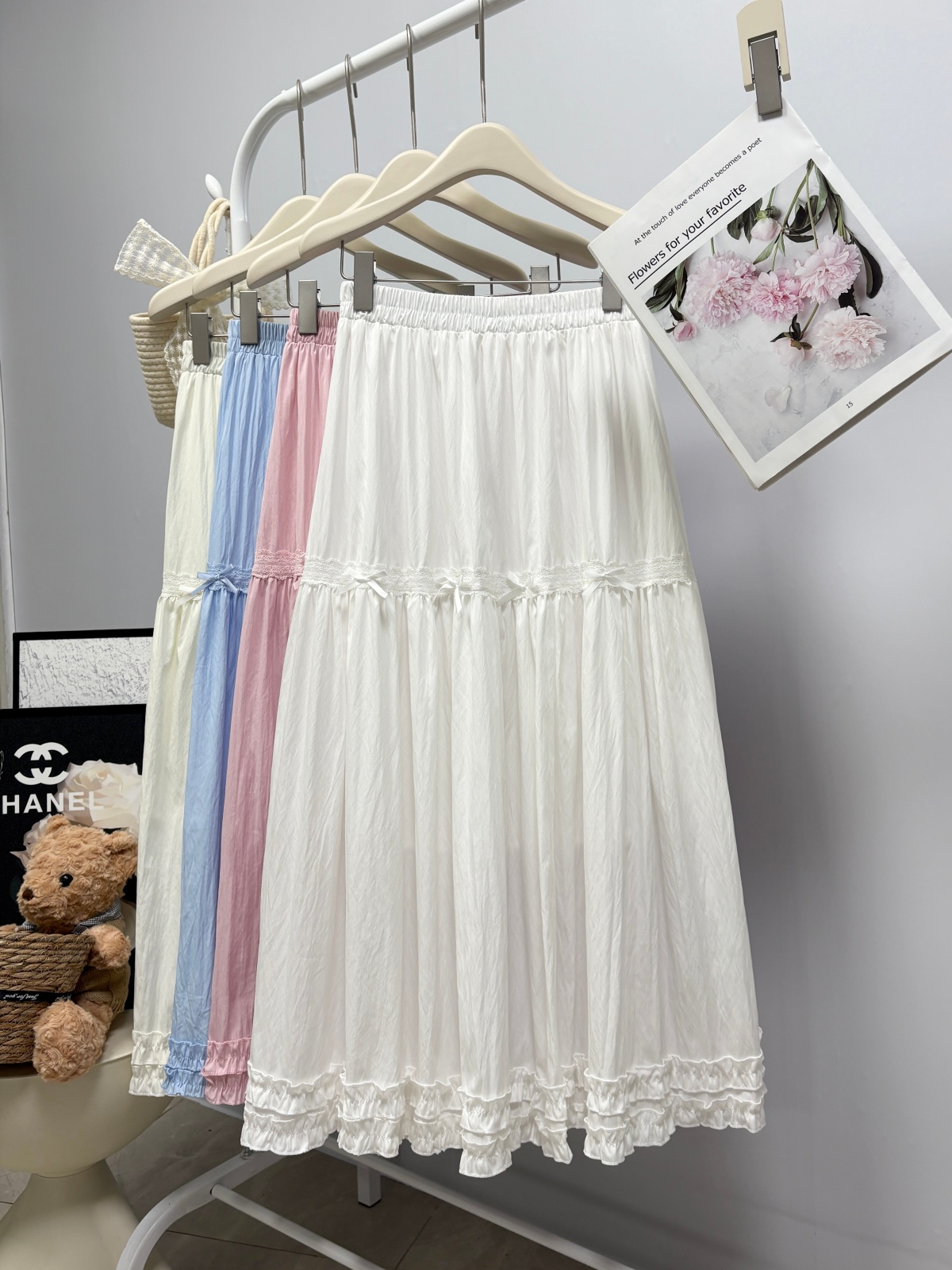 MY16344# 新款韩系蕾丝花边蝴蝶结拼接蛋糕裙甜美木耳裙边半身裙女裝貨源服裝批發