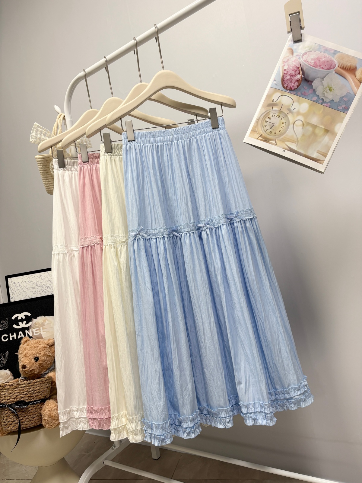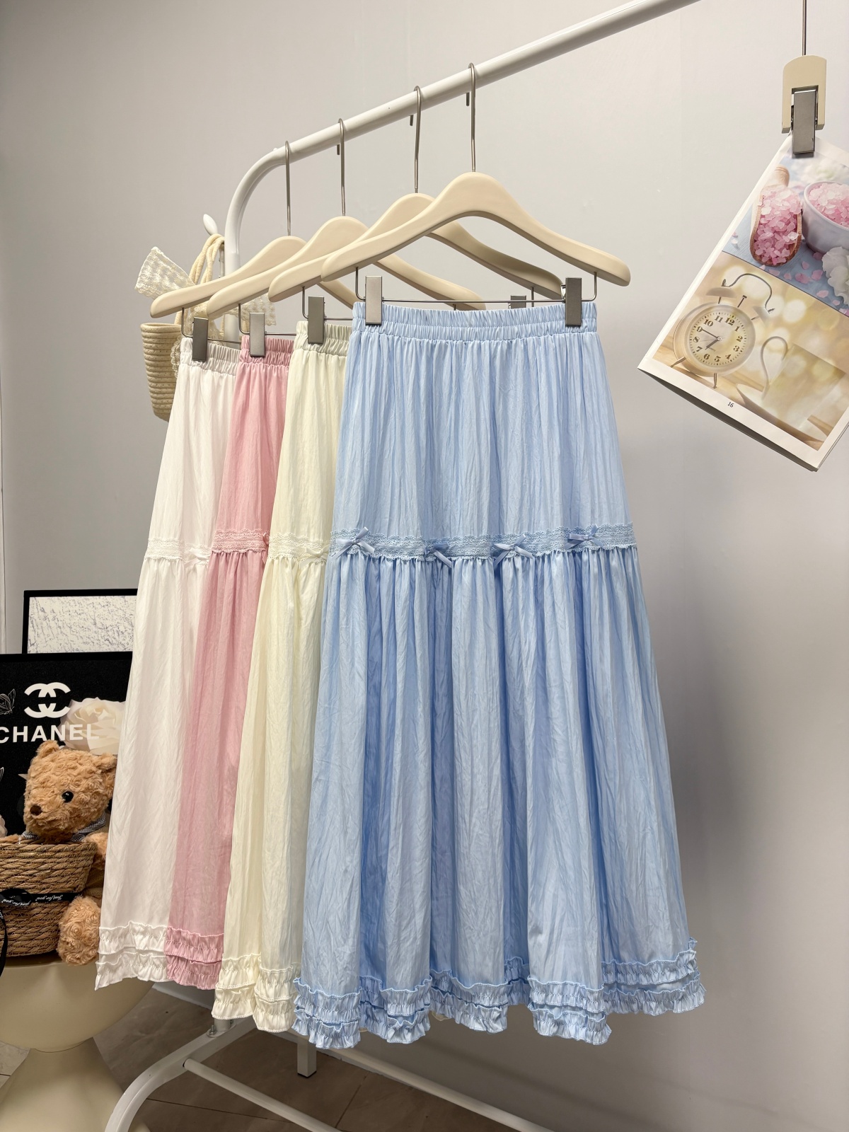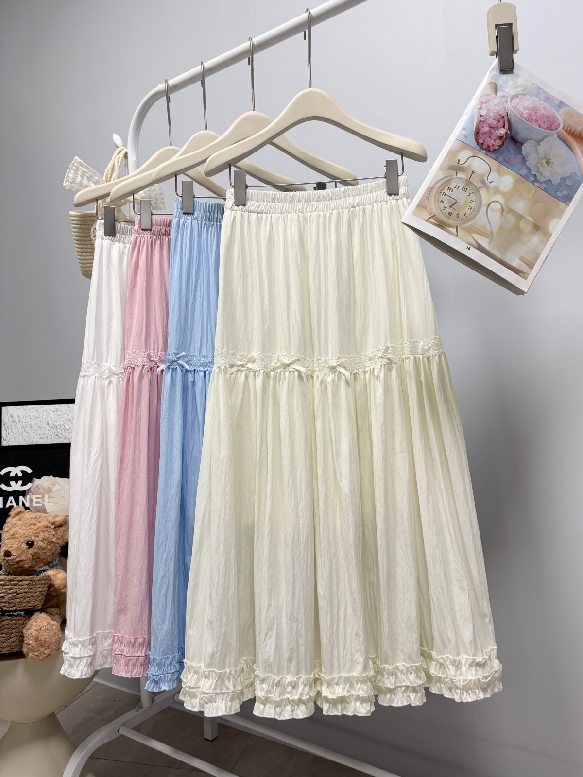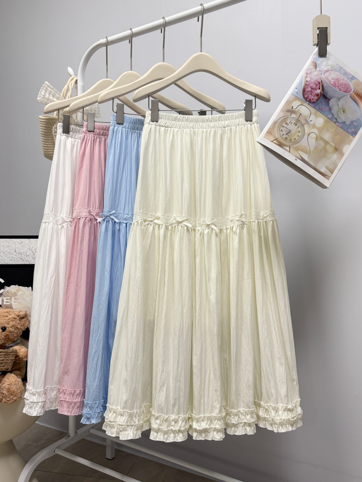 MY16344# 新款韩系蕾丝花边蝴蝶结拼接蛋糕裙甜美木耳裙边半身裙女裝貨源服裝批發