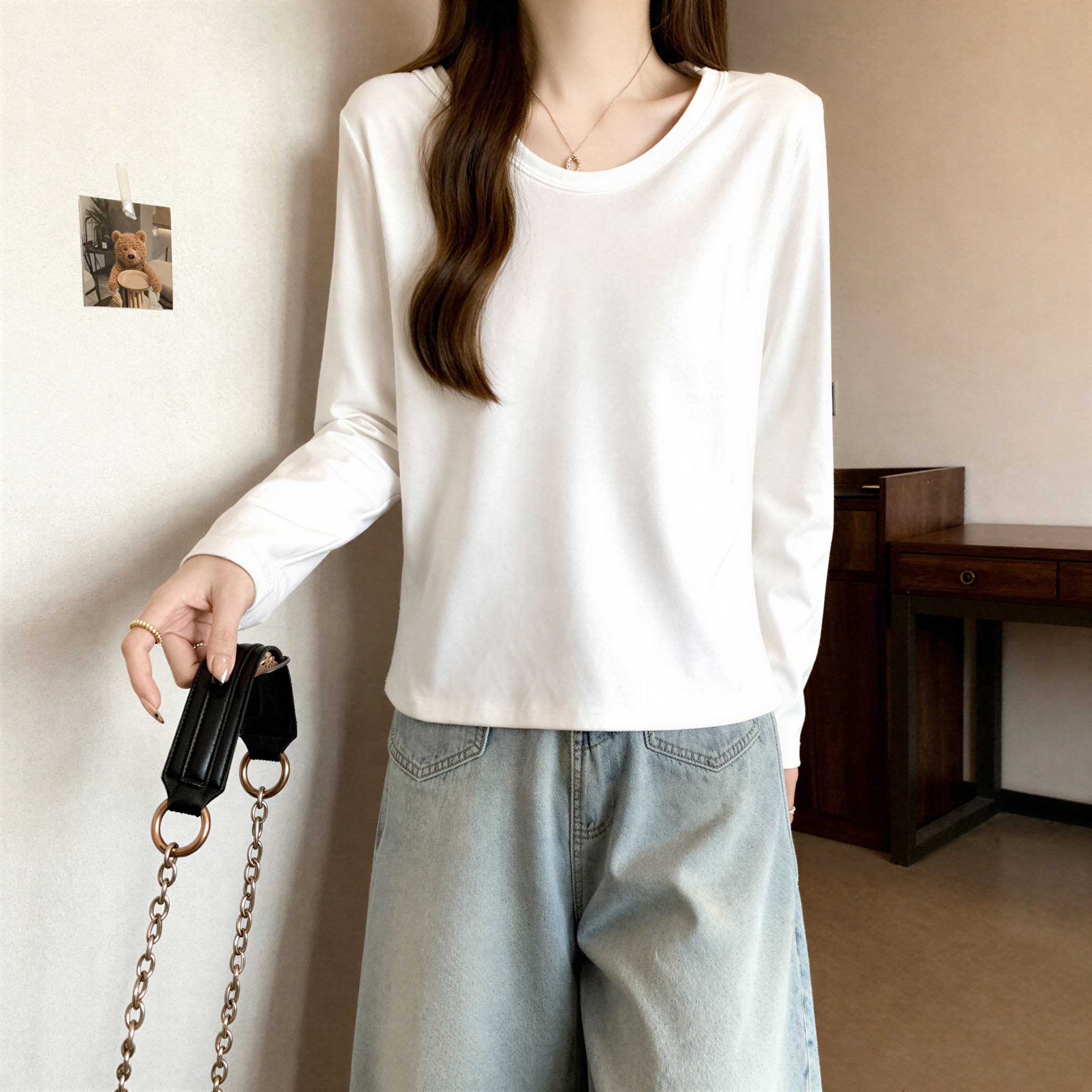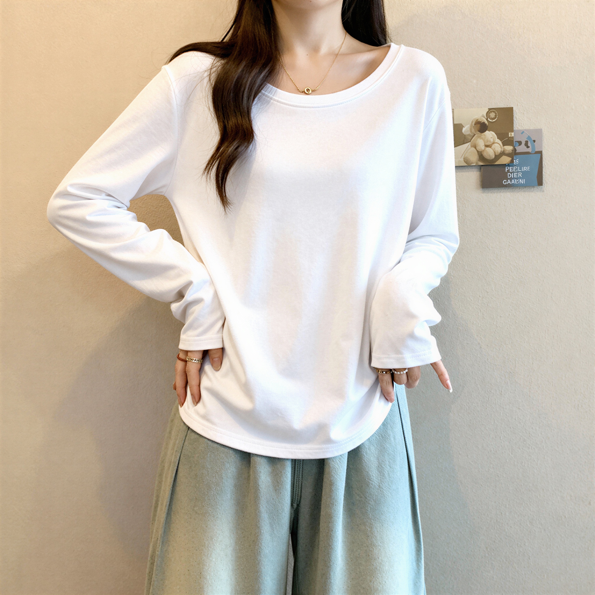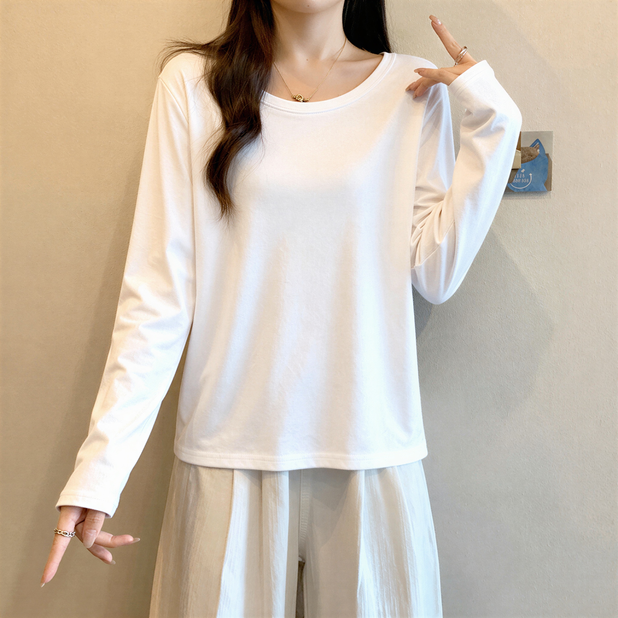 MY16360# 纯棉白色正肩长袖T恤新款大码胖mm打底衫内搭显瘦上衣女裝貨源服裝批發