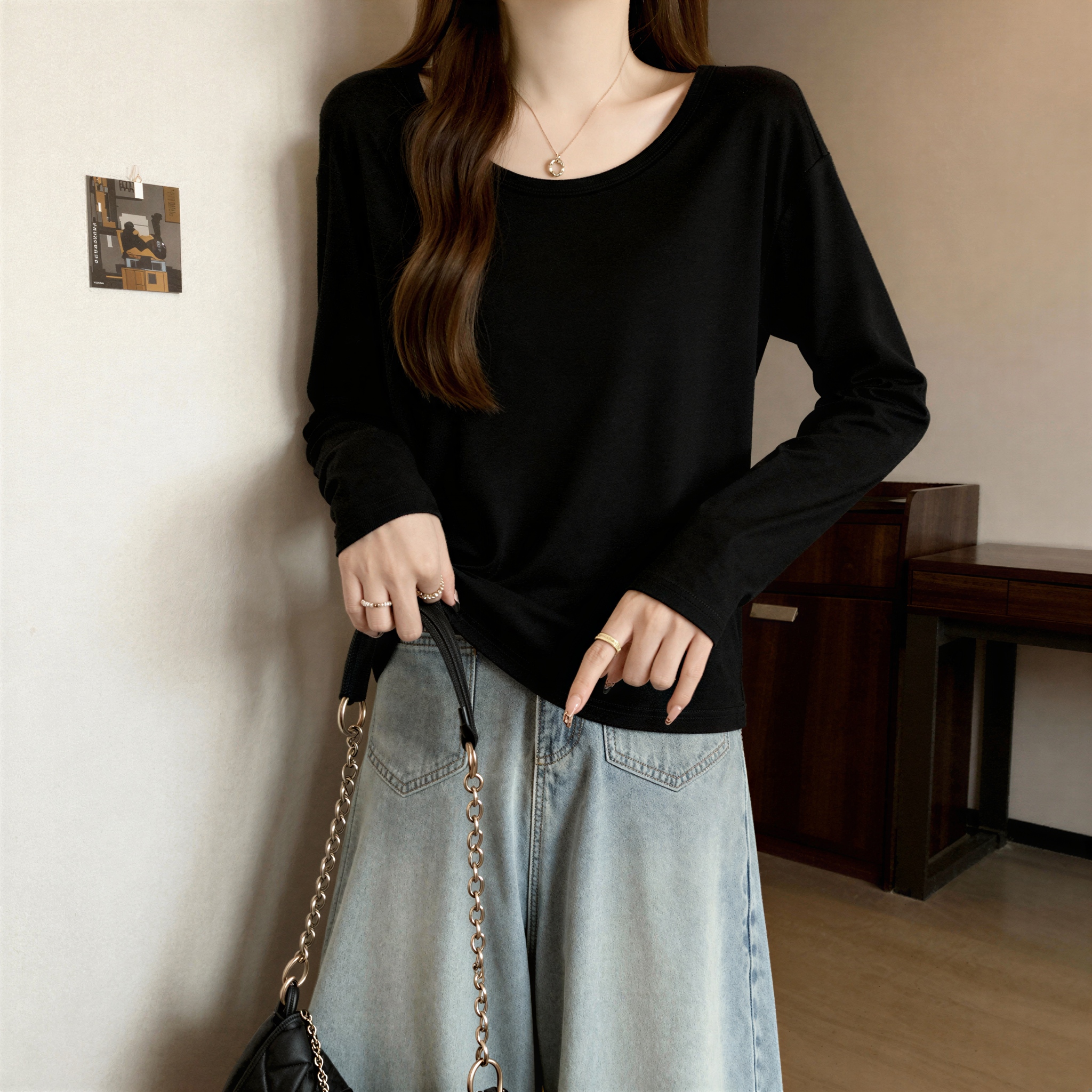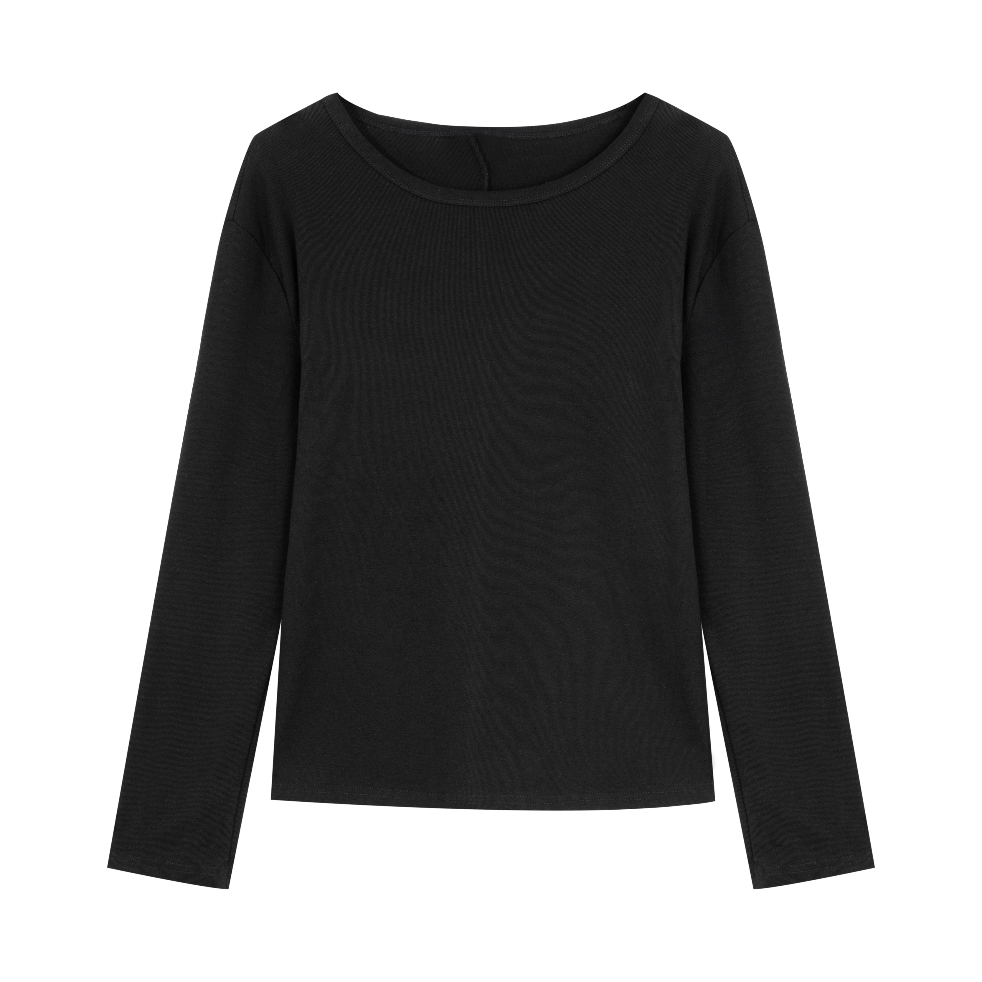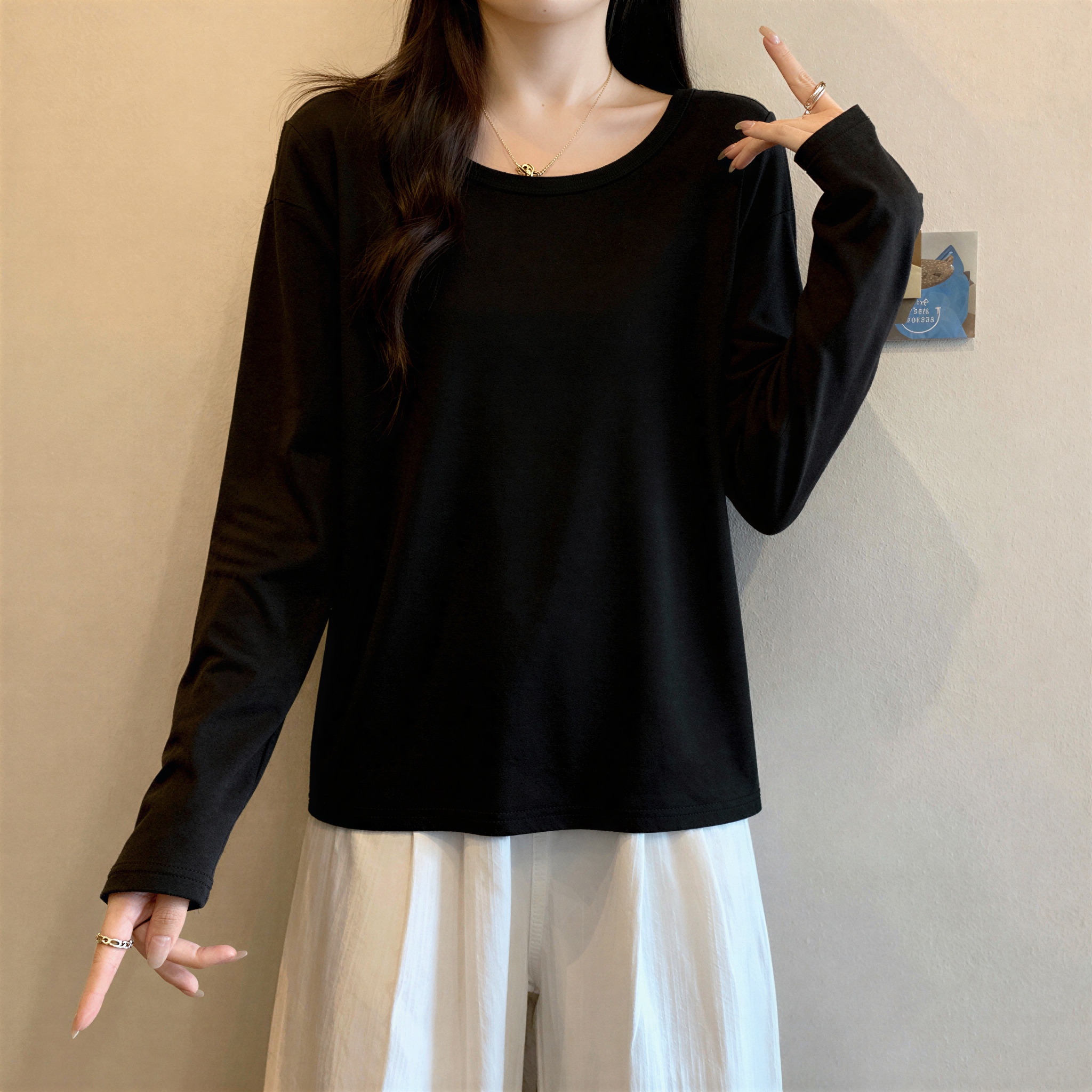 MY16360# 纯棉白色正肩长袖T恤新款大码胖mm打底衫内搭显瘦上衣女裝貨源服裝批發