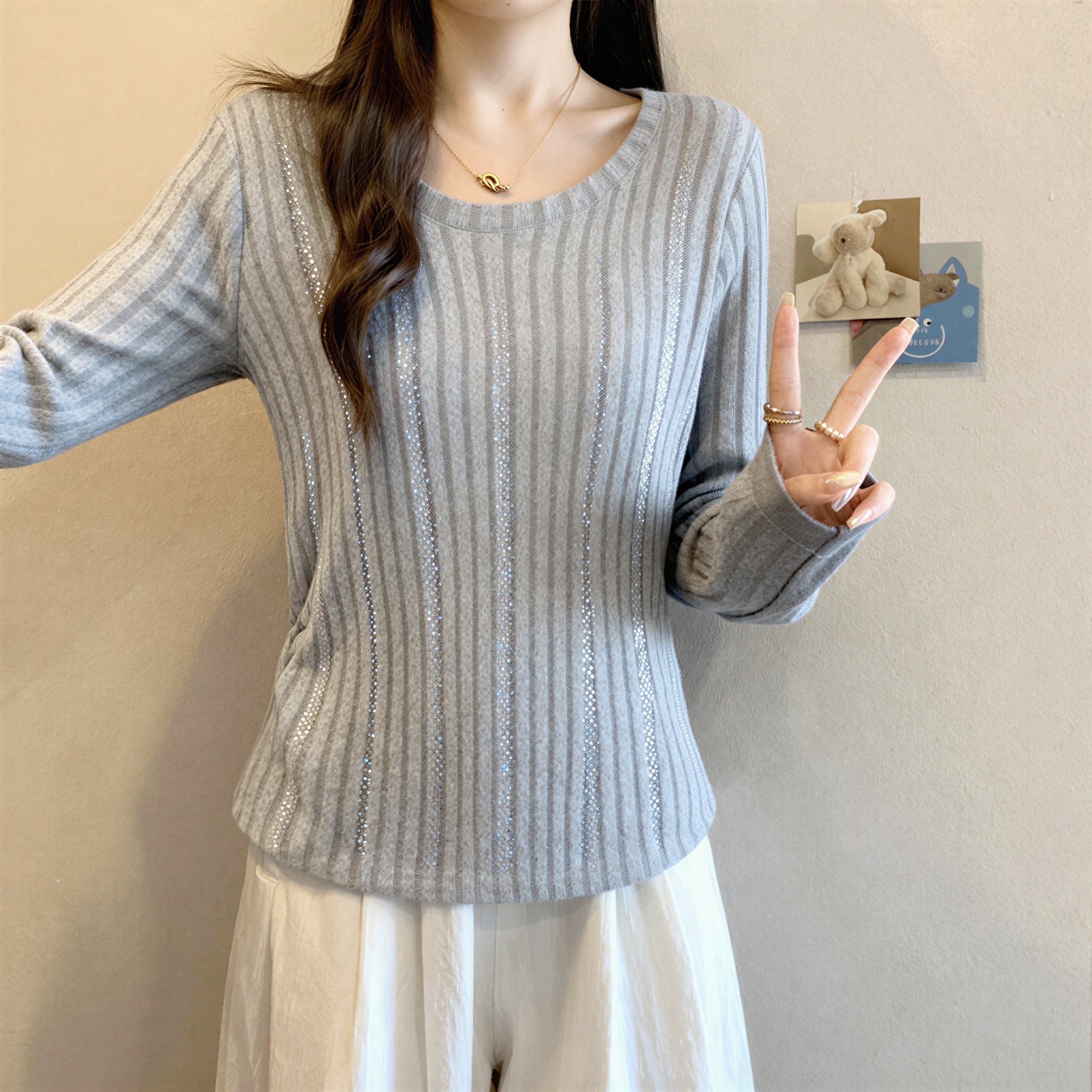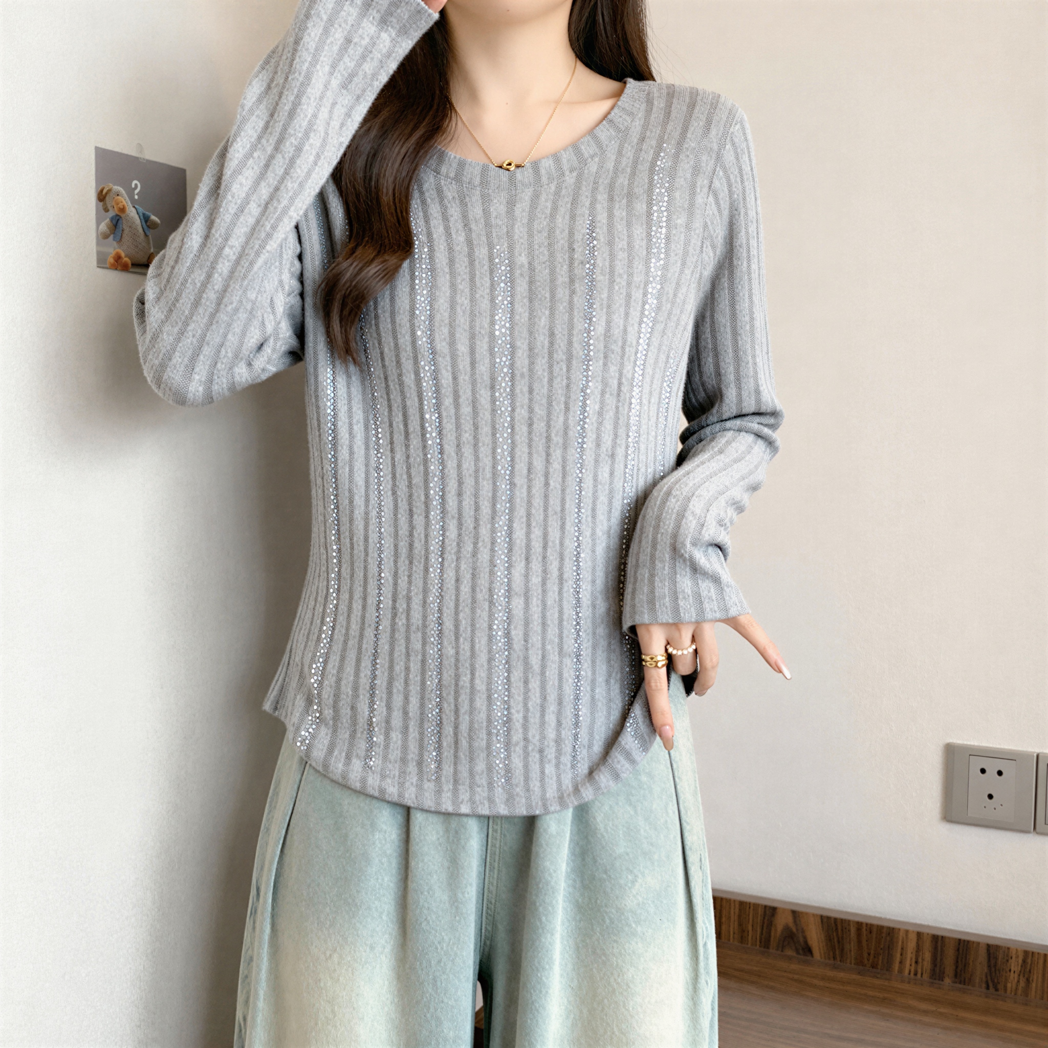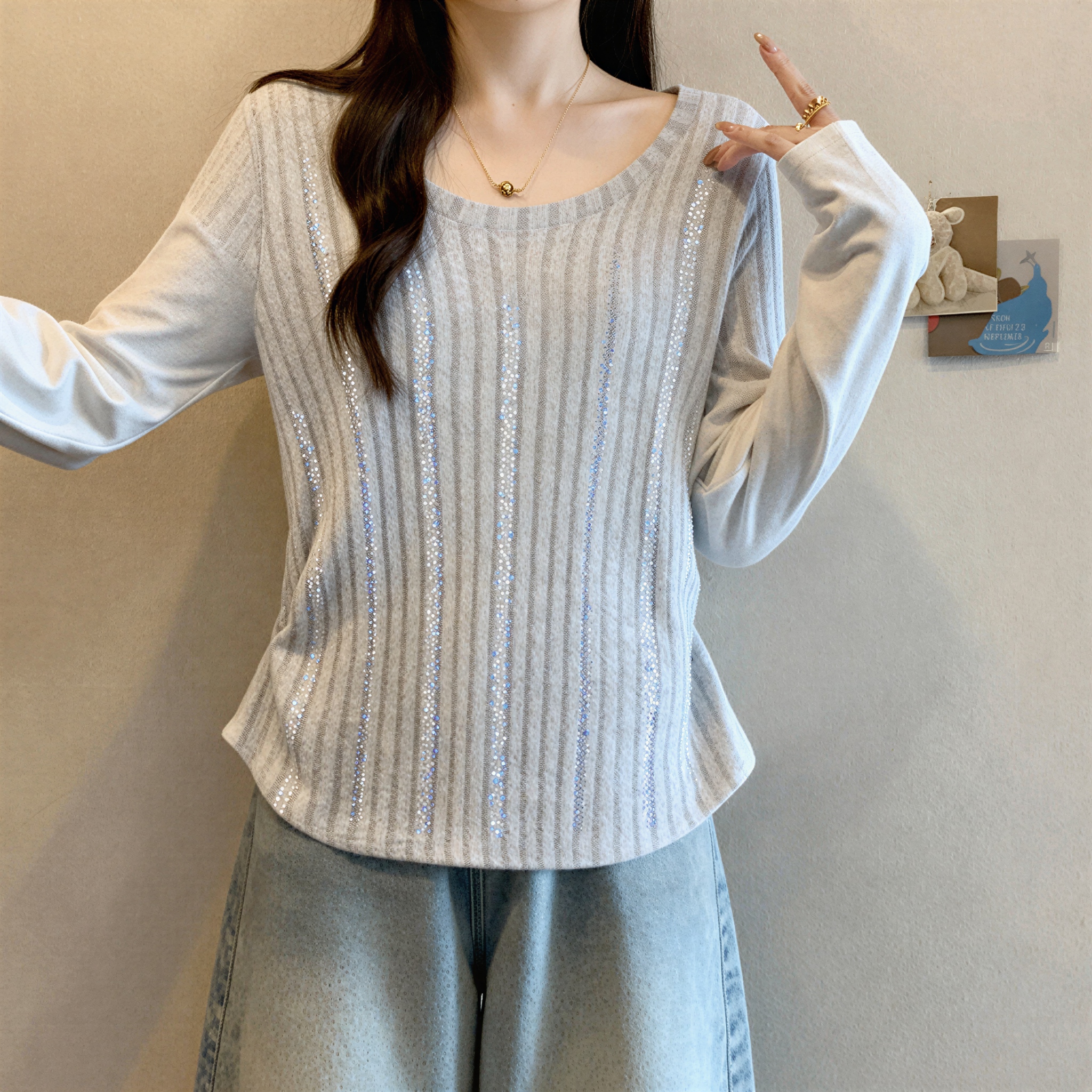 MY16362# 重工烫钻打底衫新款大码胖MM修身显瘦遮肚百搭长袖上衣女裝貨源服裝批發