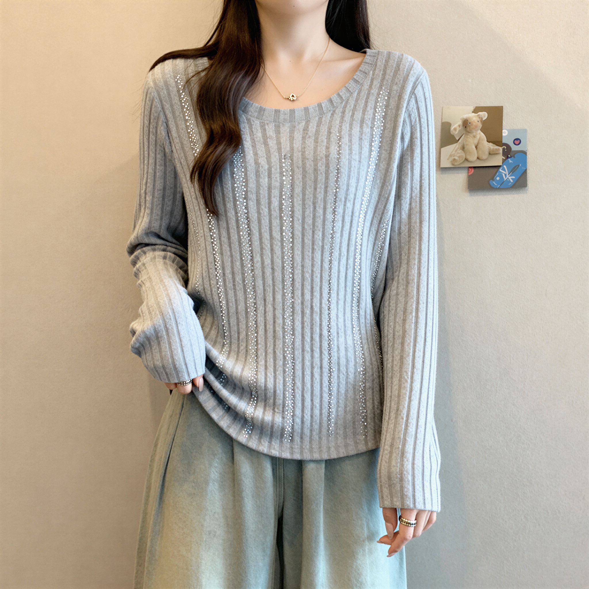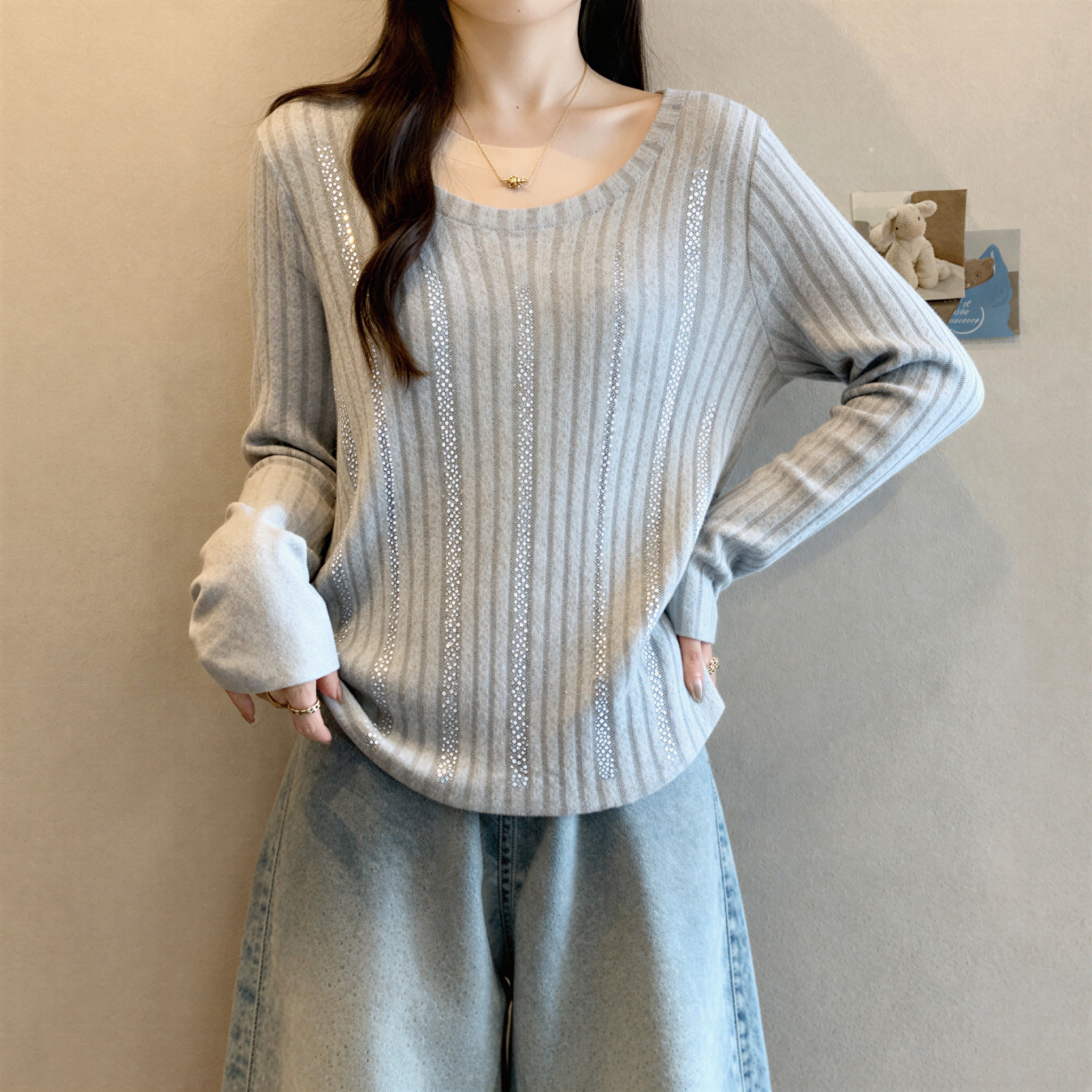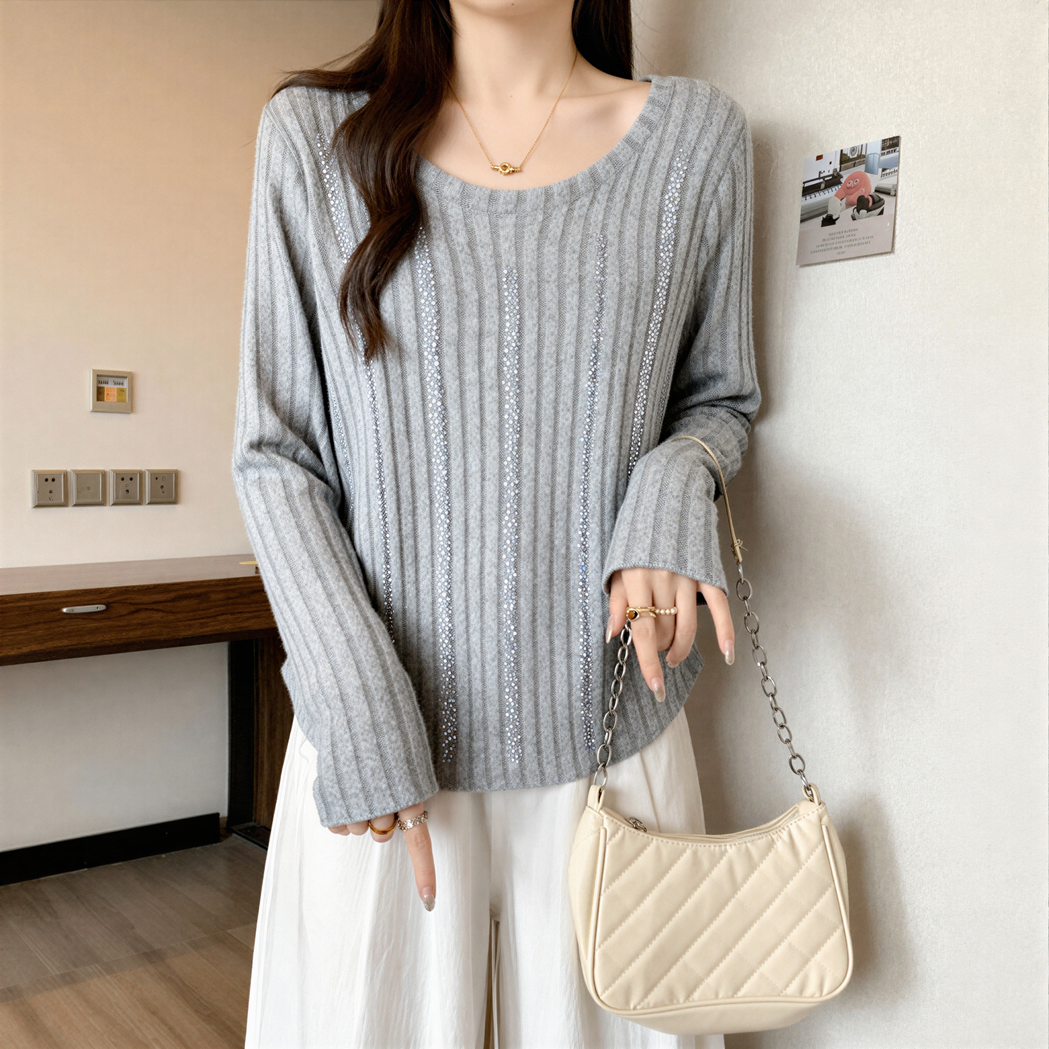 MY16362# 重工烫钻打底衫新款大码胖MM修身显瘦遮肚百搭长袖上衣女裝貨源服裝批發