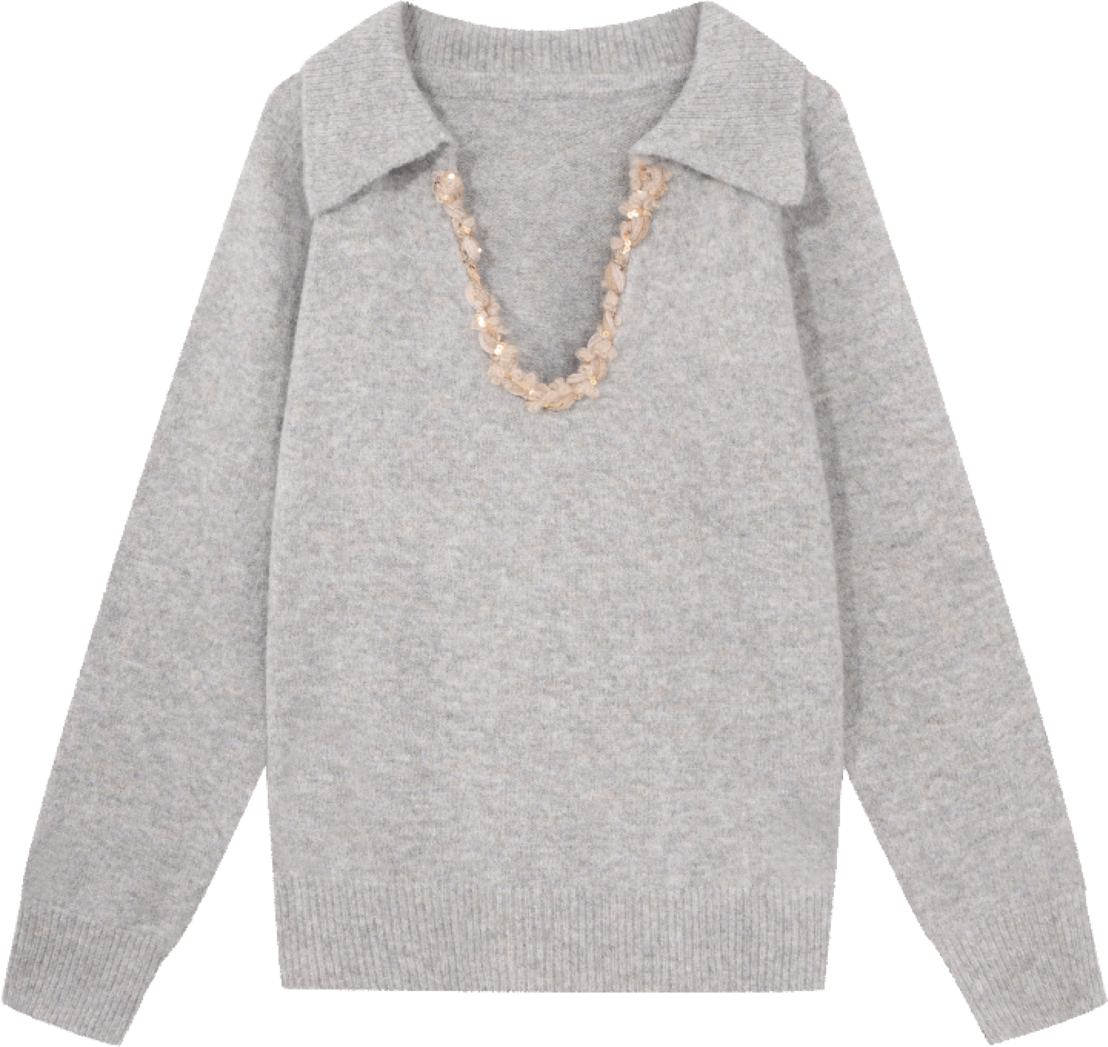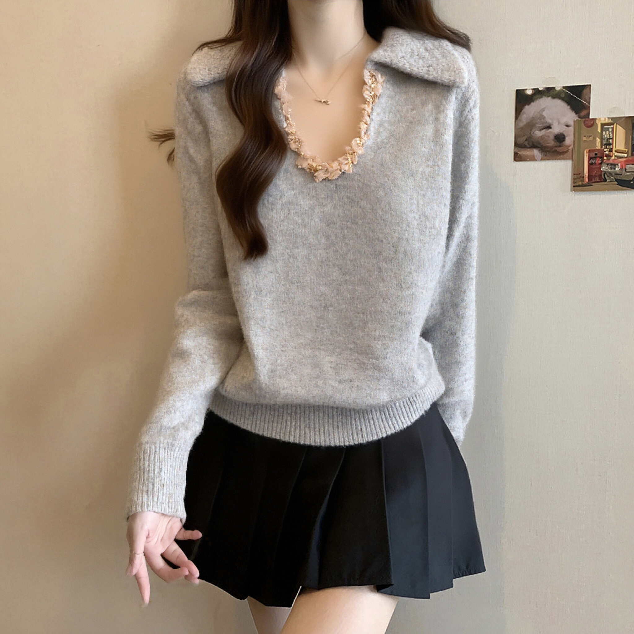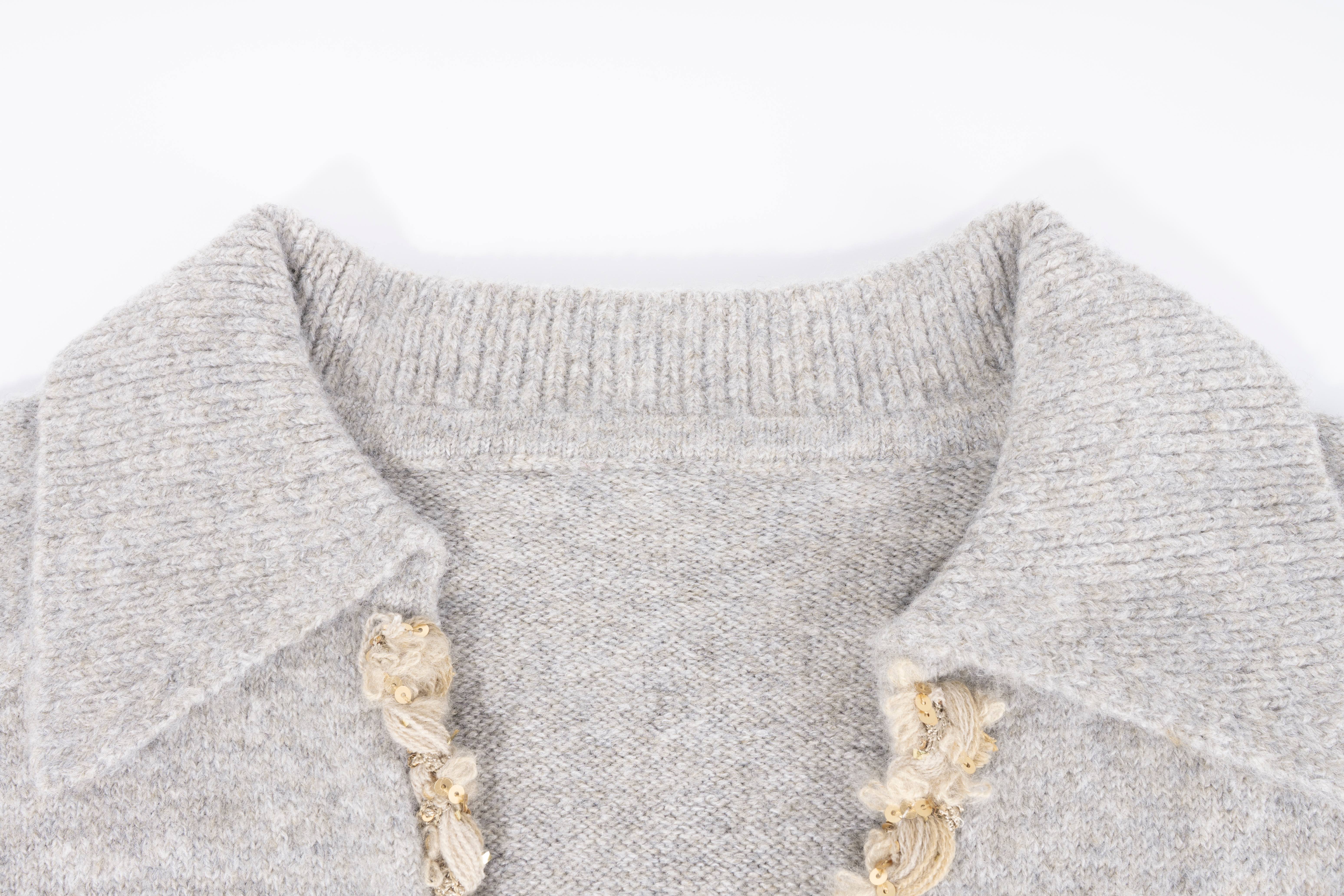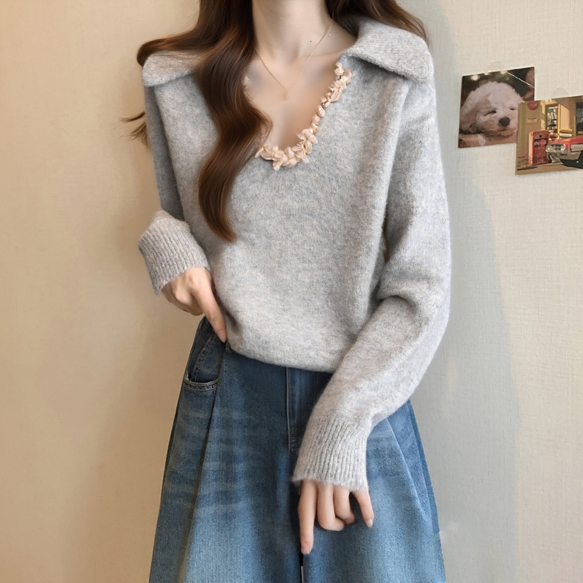 MY16368# 法式复古高级感翻领亮片毛衣大码胖MM慵懒外穿宽松针织上衣女裝貨源服裝批發