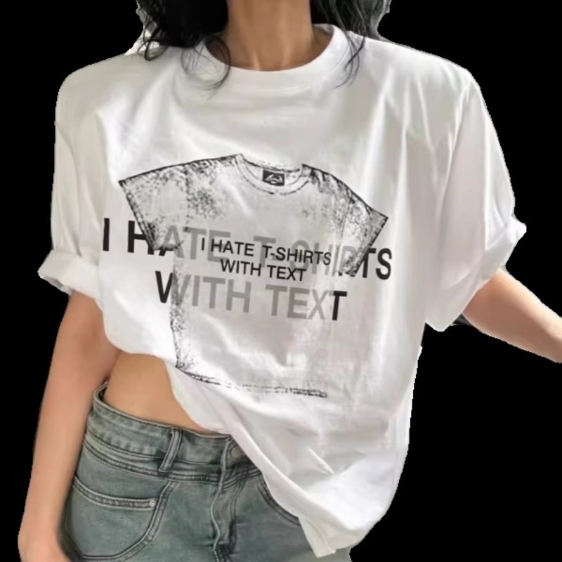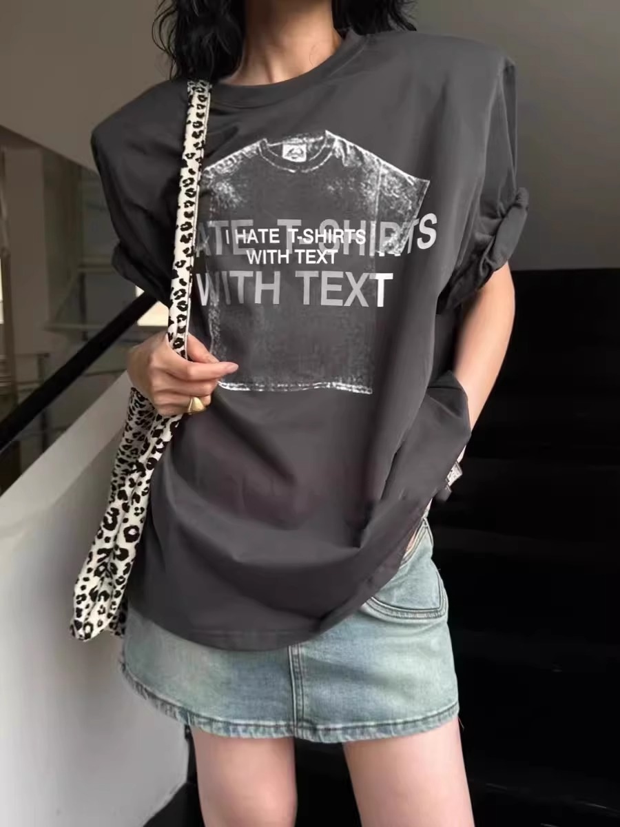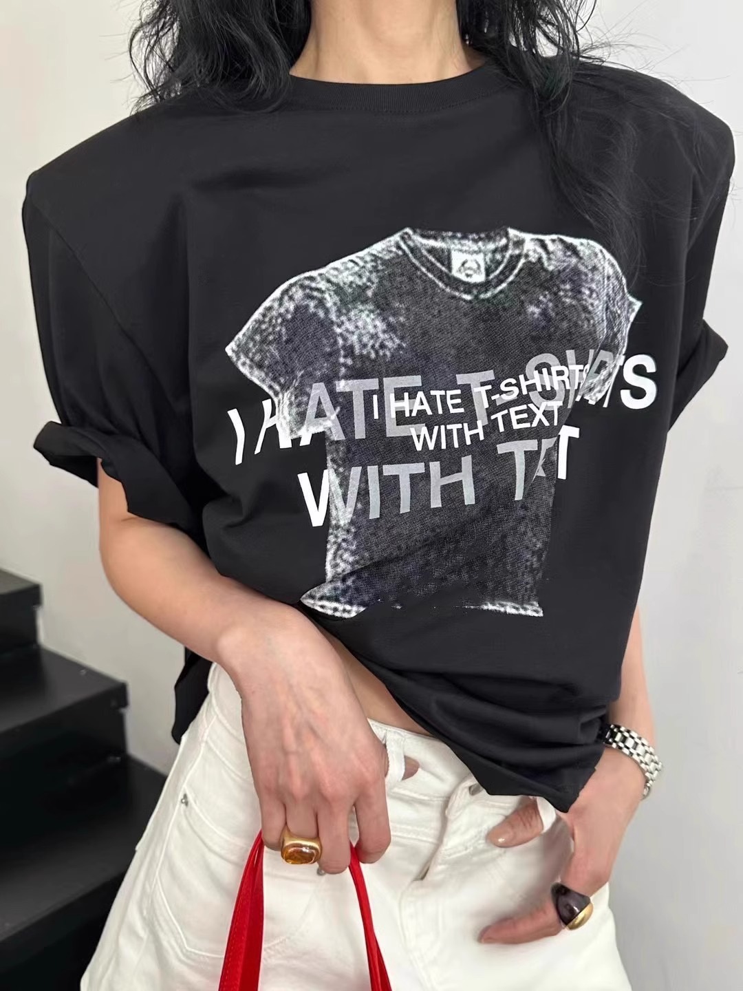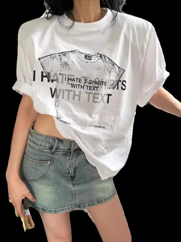 MY16373# 韩国外贸~100%棉韩系短袖T恤女小众设计感复古美式印花上衣潮女裝貨源服裝批發