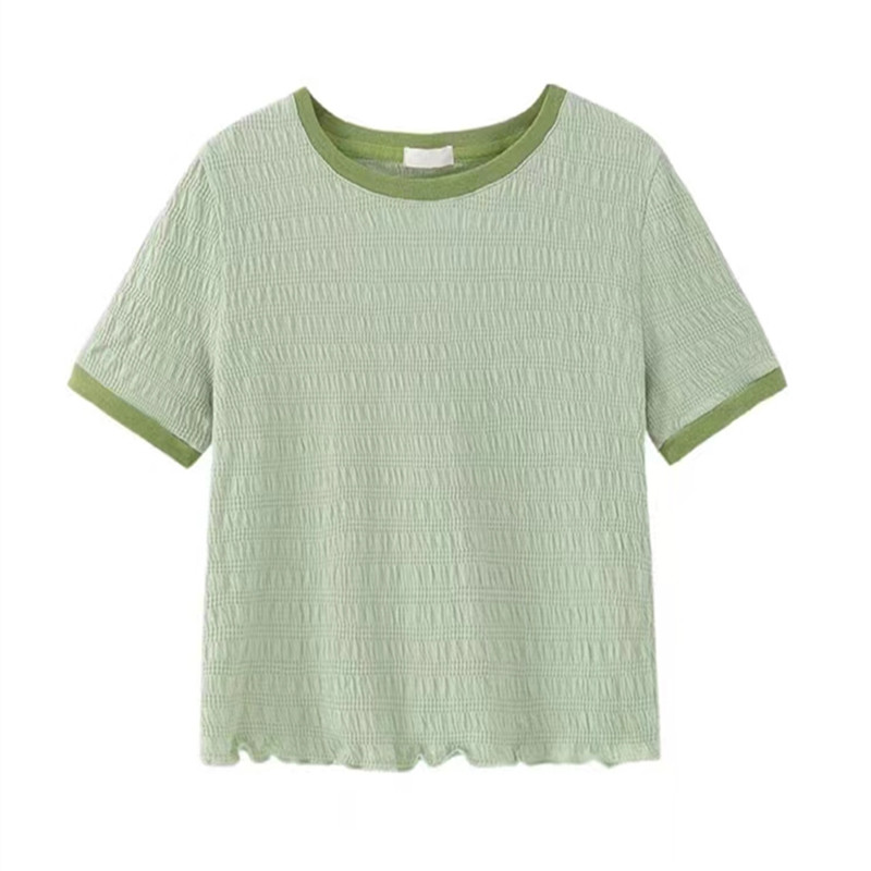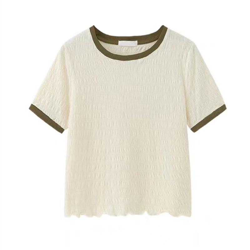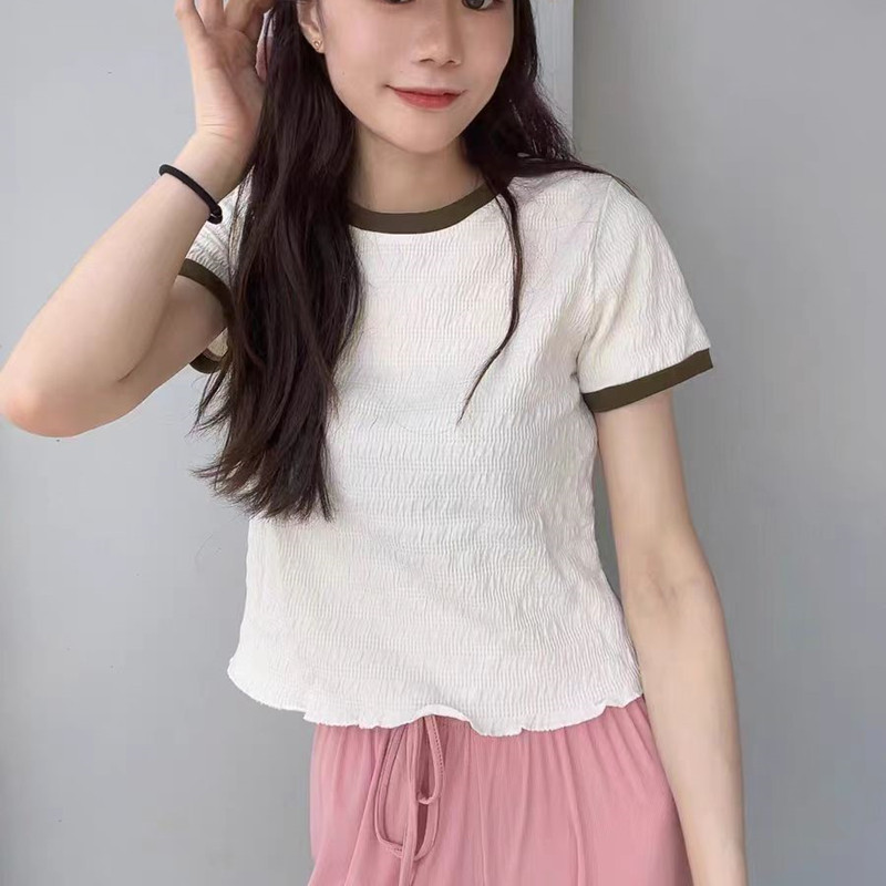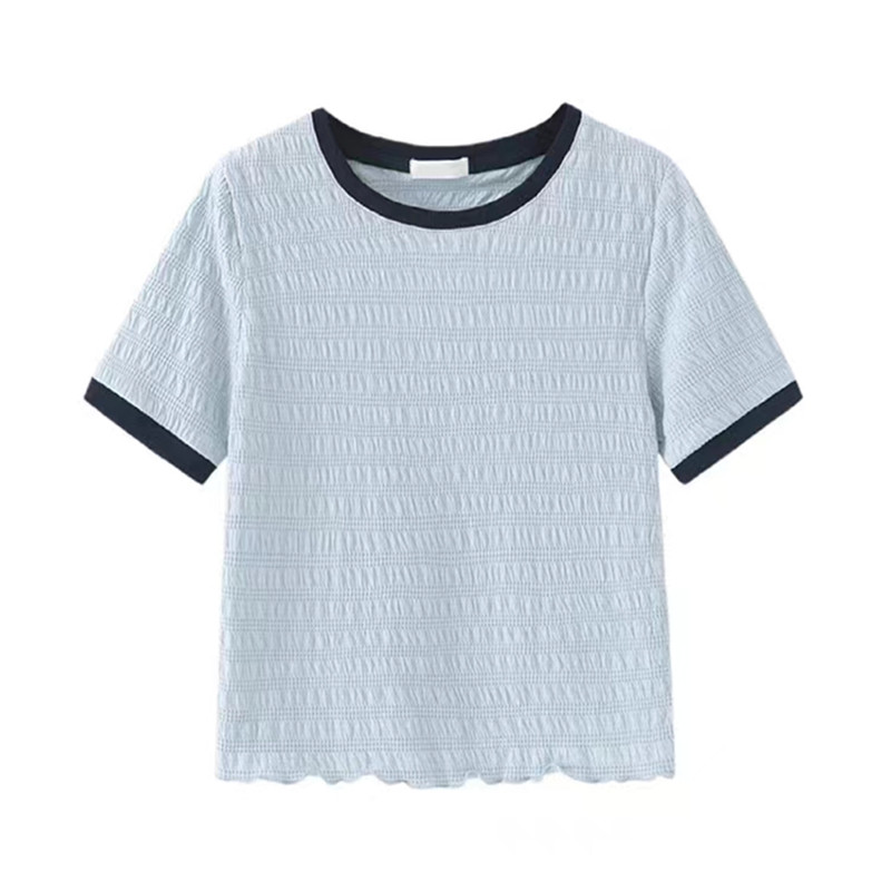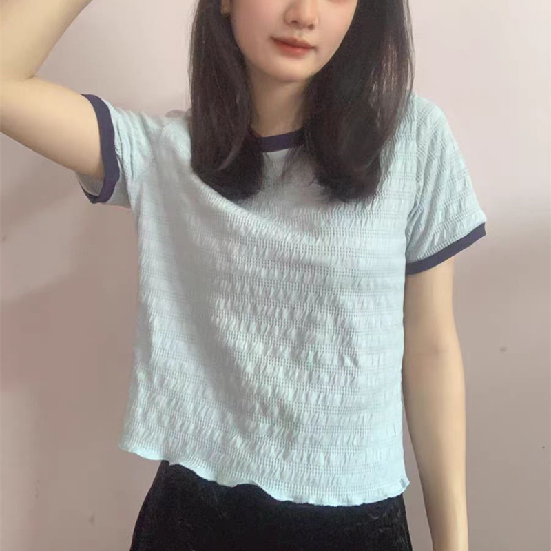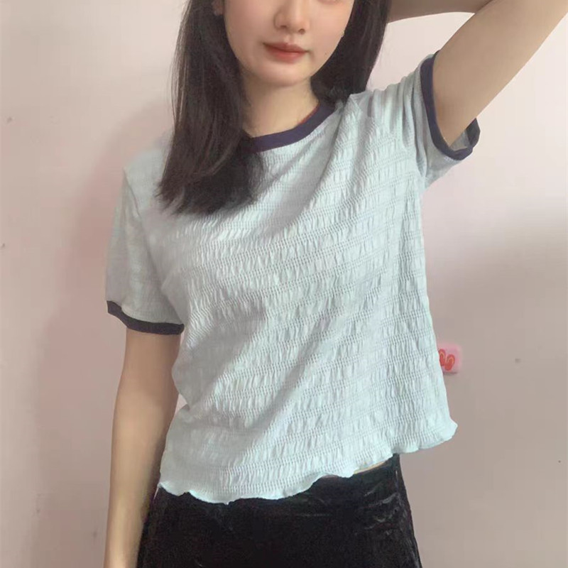 MY16376# 新款短袖t恤女韩版百搭拼接圆领上衣女学生ins半袖体恤打底潮女裝貨源服裝批發